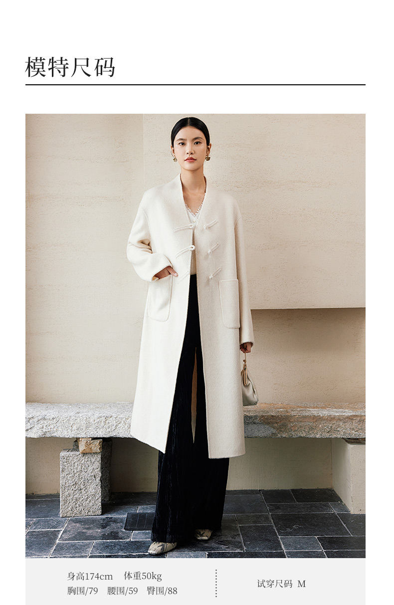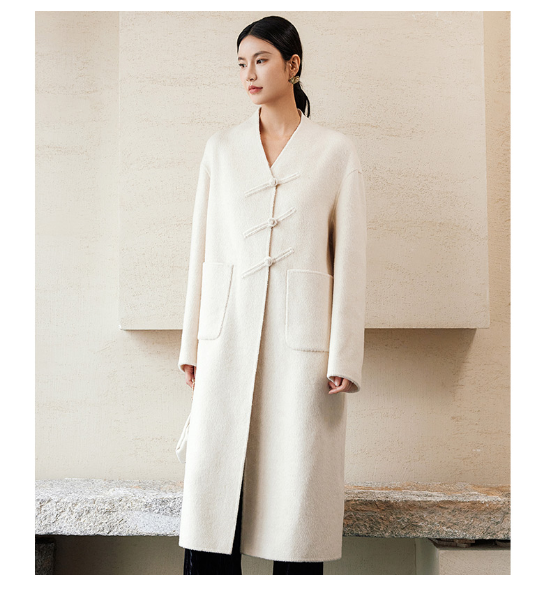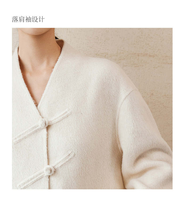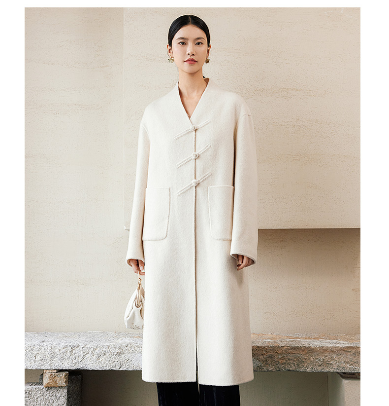 玳莎新中式全羊毛双面呢微淘女士2024年冬季新款盘扣国风V领大衣 ED39302