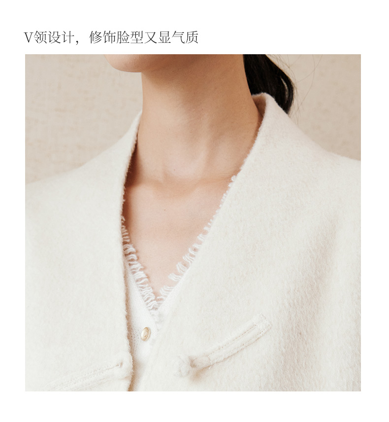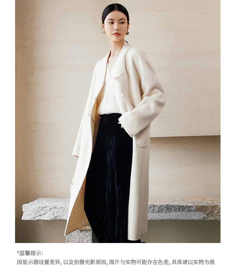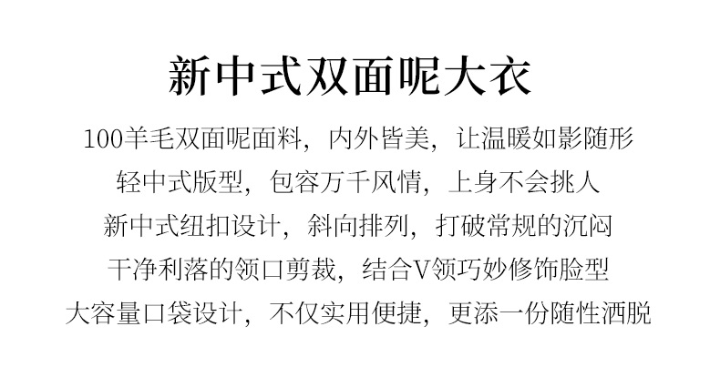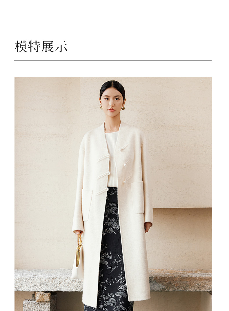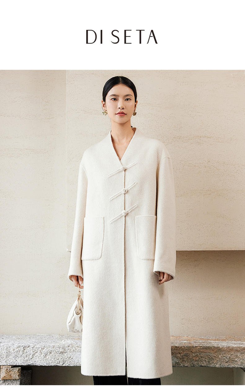 玳莎新中式全羊毛双面呢微淘女士2024年冬季新款盘扣国风V领大衣 ED39302