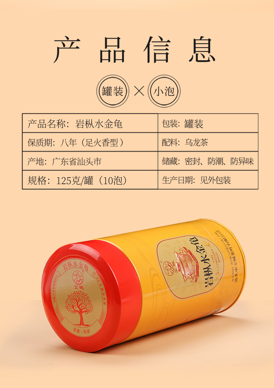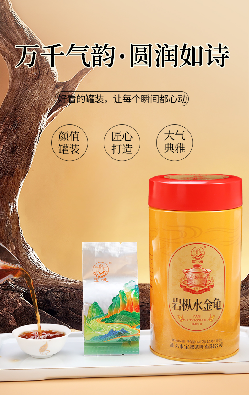 宝城岩枞水金龟茶叶4罐装共500克浓香型乌龙茶岩茶礼盒D418