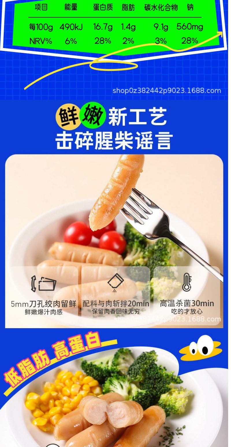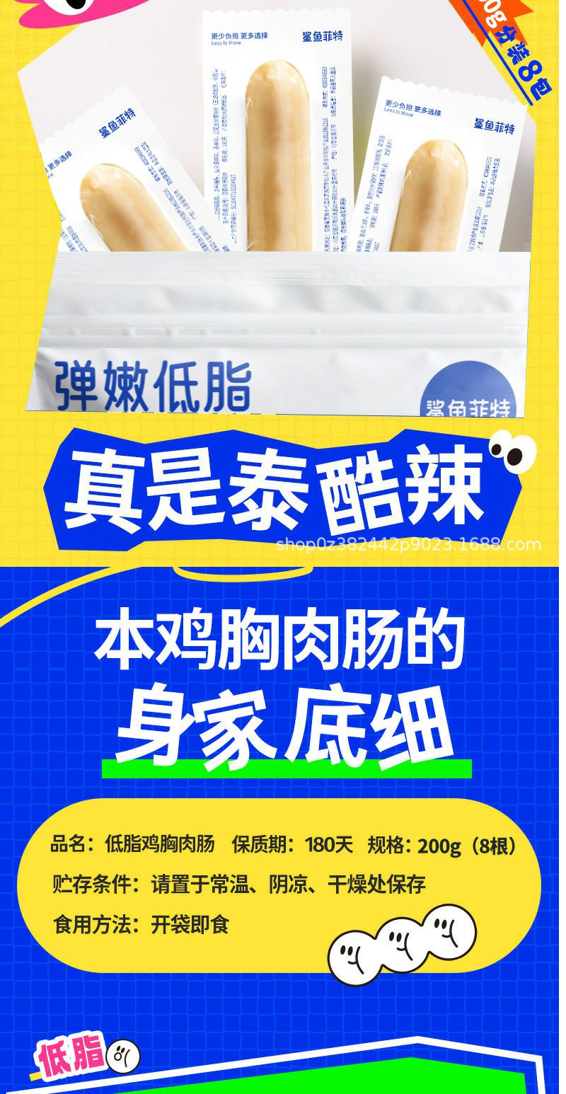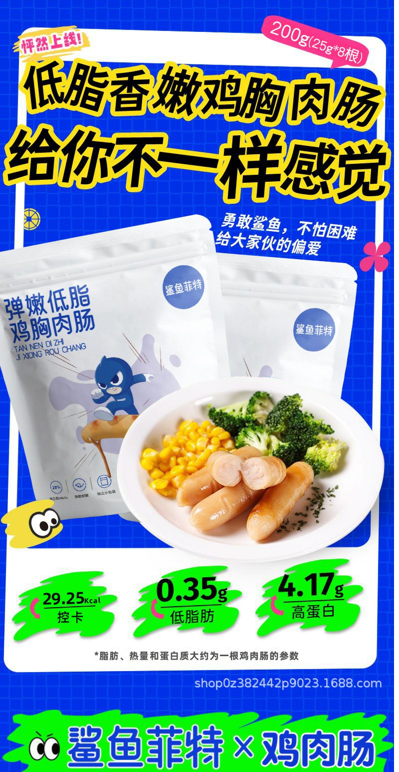 【鲨鱼菲特】鸡胸肉肠健身即食鸡肉肠高蛋白低脂25g/根