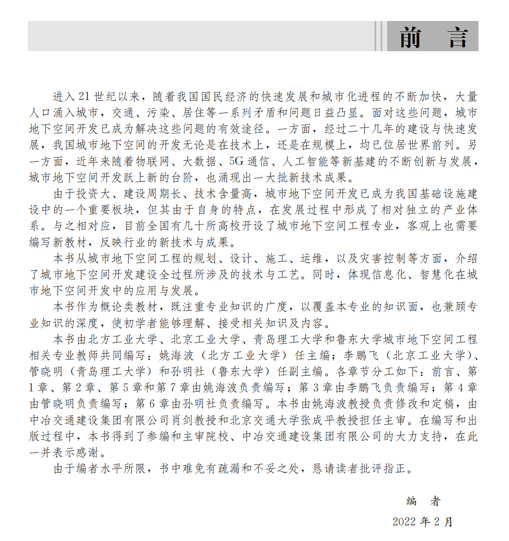 城市地下空间概论 普通高等院校土建类专业“十四五”创新规划教材