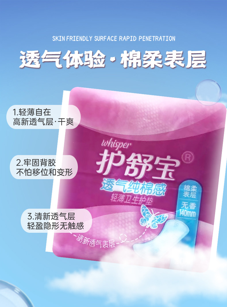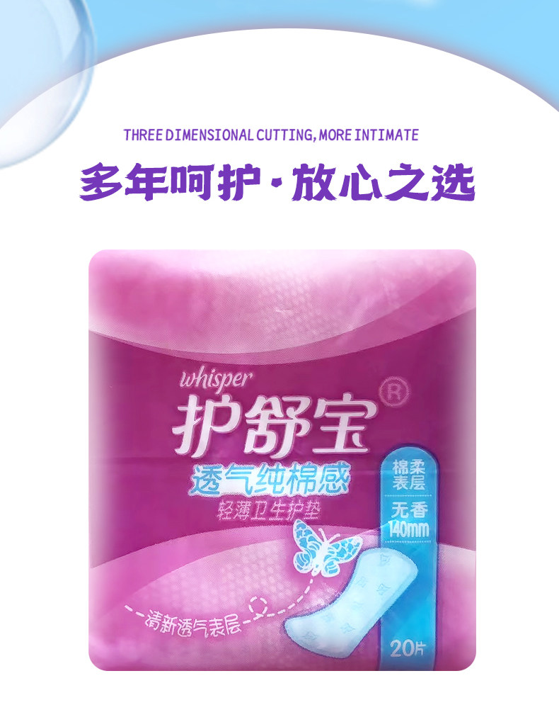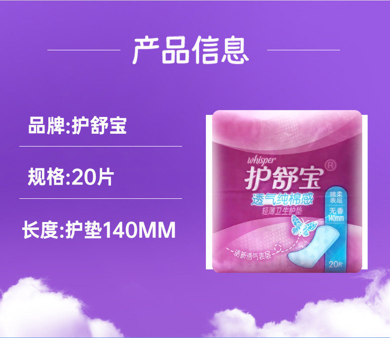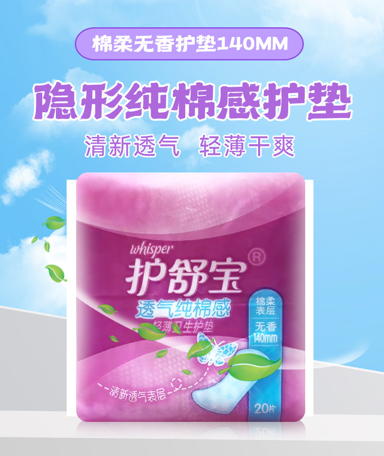 护舒宝护垫140mm20片装纯棉感无香型超薄透气日用卫生巾