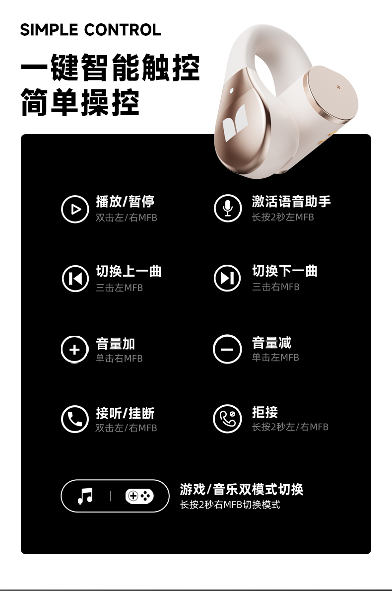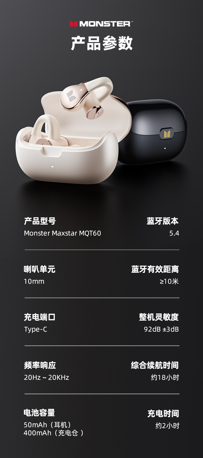 【品名】魔声MQT60耳夹式蓝牙耳机 U型夹耳式 环绕立体音效 舒适佩戴 【规格】黑色、米白色 【产地】国内 【发货包装】独立包装 【发货地】深圳 【发货快递】中通、申通随机发 【不发货区域】新疆、西藏、港澳台 【发货时效】48-72小时,周末节假日顺延 【电子产品质保期】1年 |
