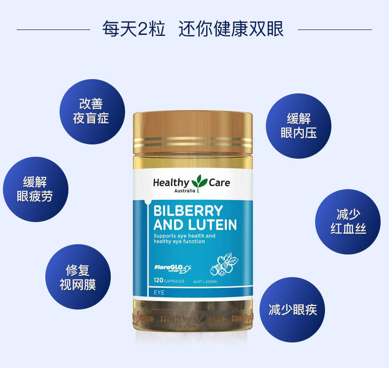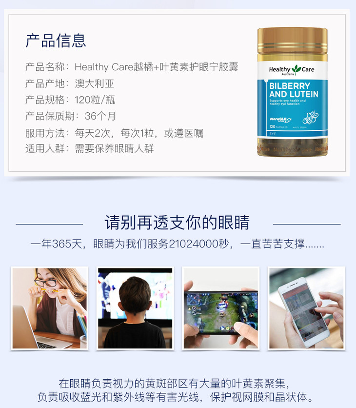 Healthy Care护眼片(蓝莓素+越橘+叶黄素)120粒