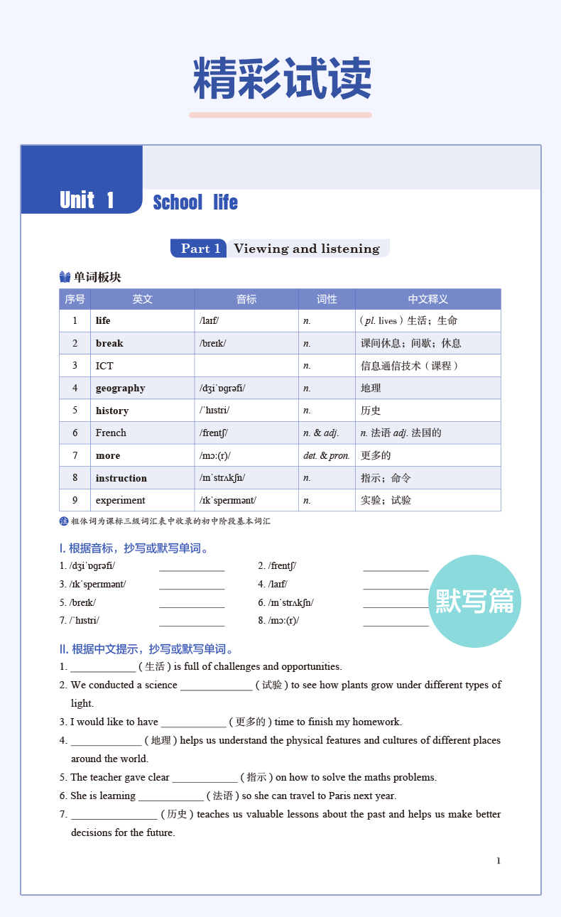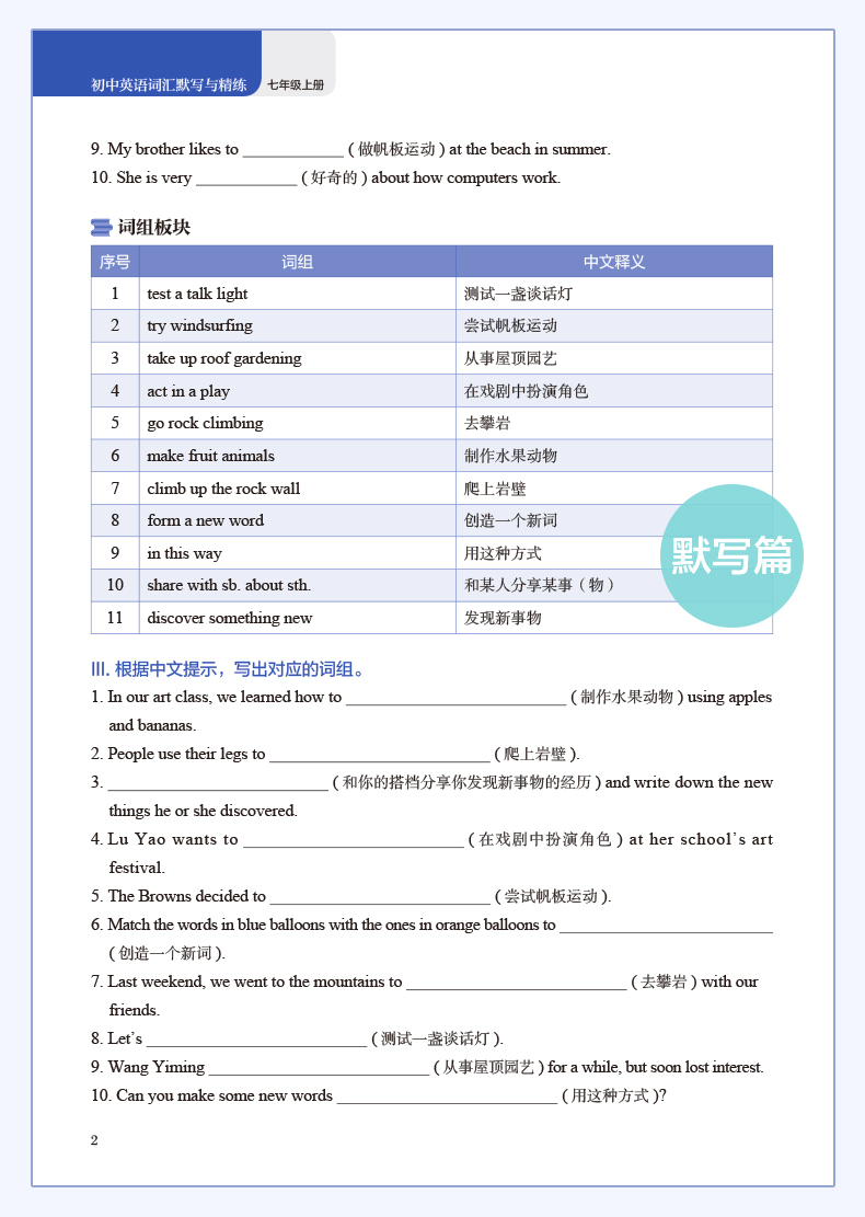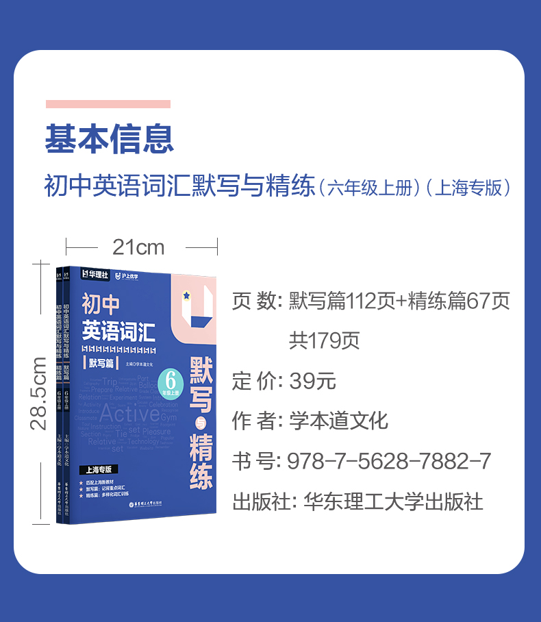 【匹配新教材】沪上优学初中英语词汇默写与精练 六年级上册七年级上册 上海专版 初一初二