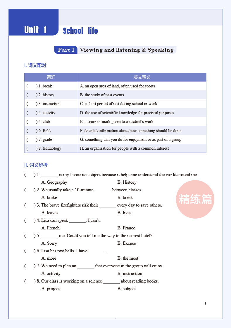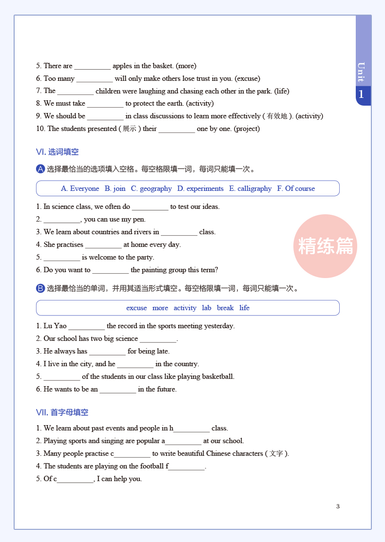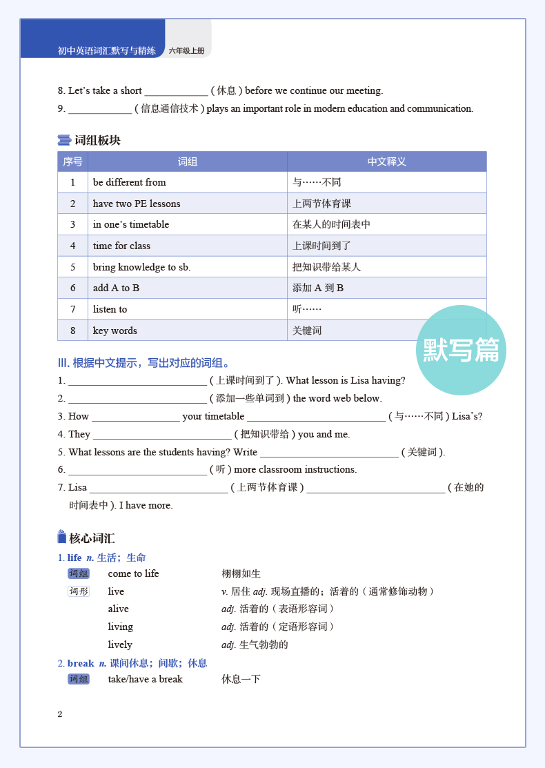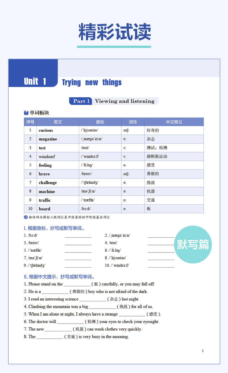 【匹配新教材】沪上优学初中英语词汇默写与精练 六年级上册七年级上册 上海专版 初一初二