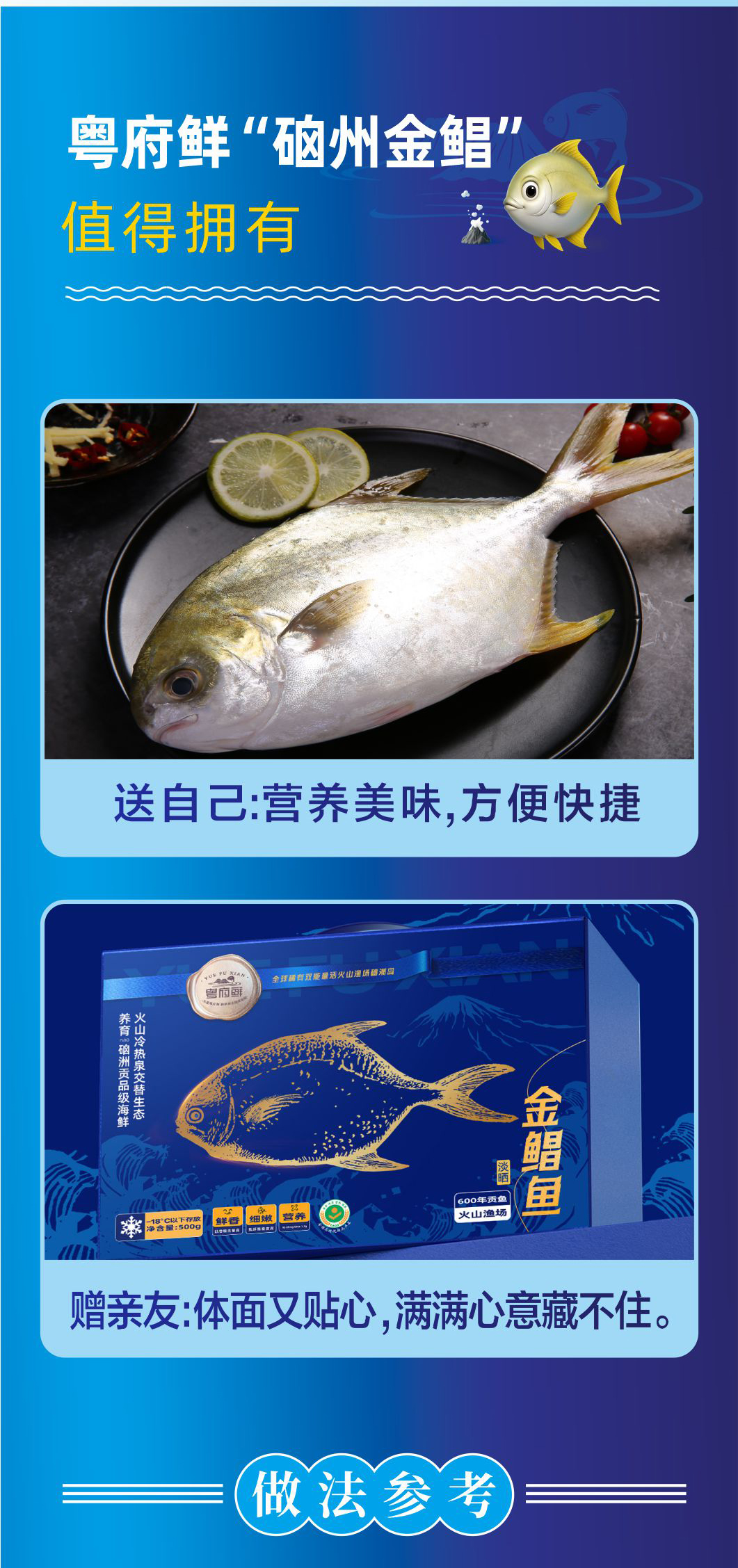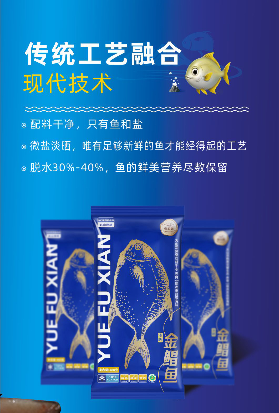 粤府鲜 淡晒金鲳鱼(390-425克装)