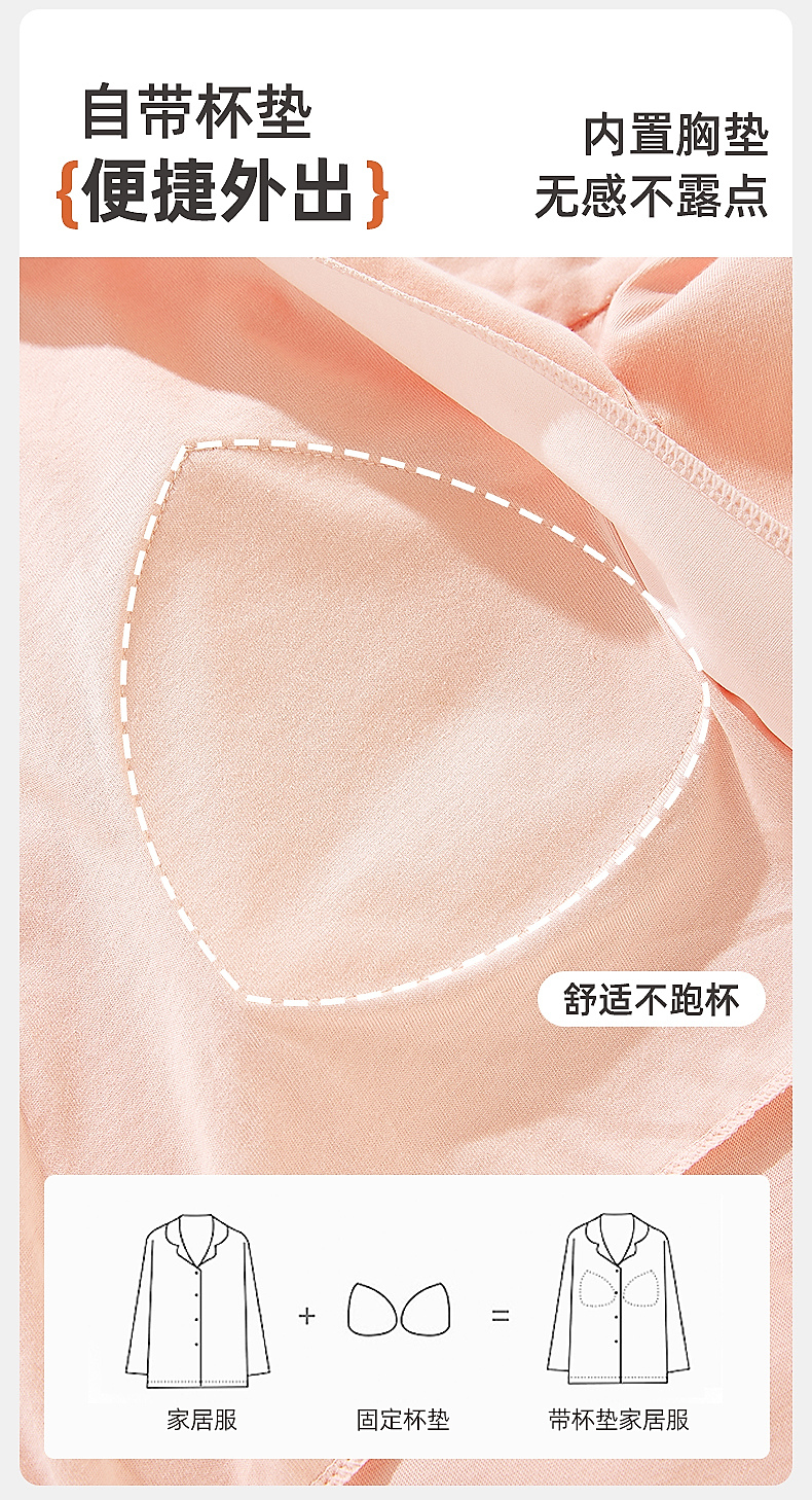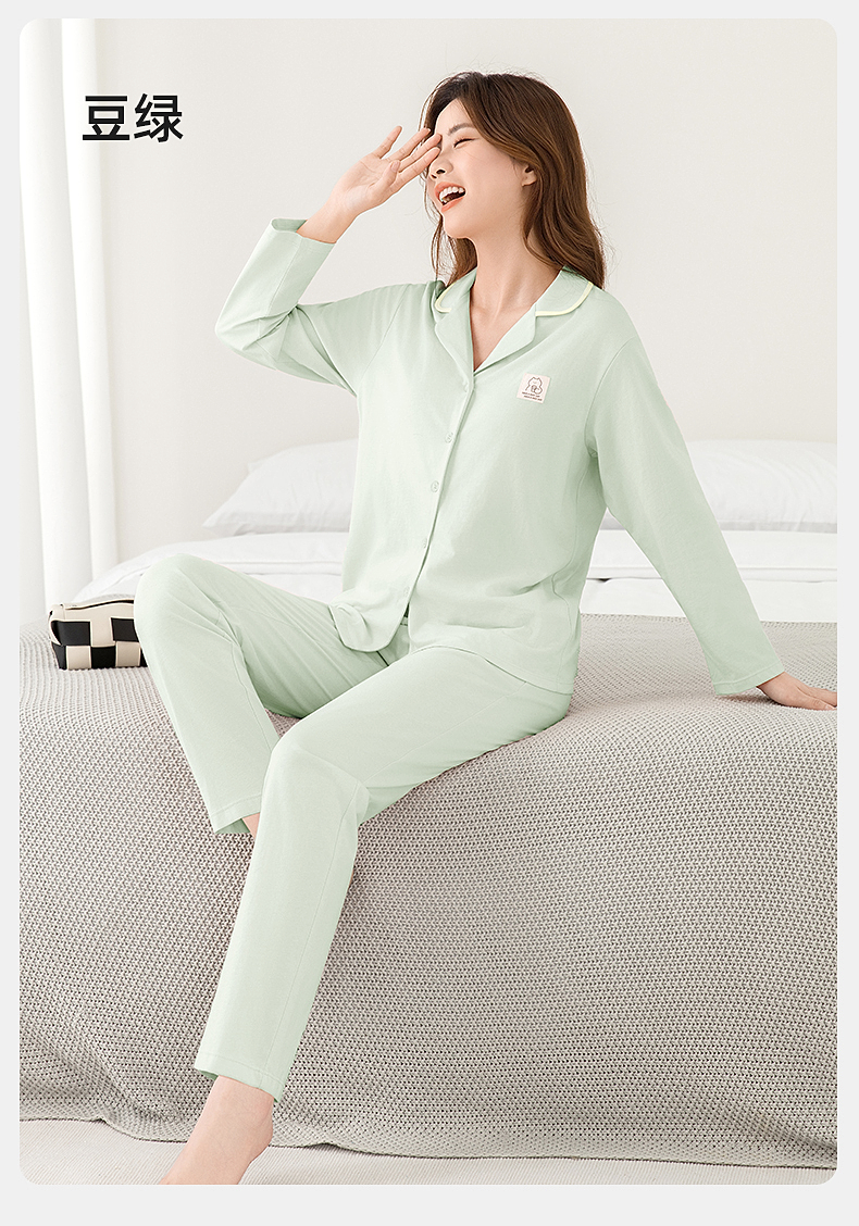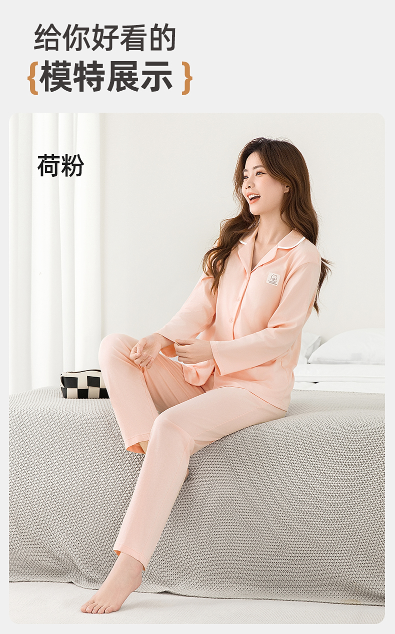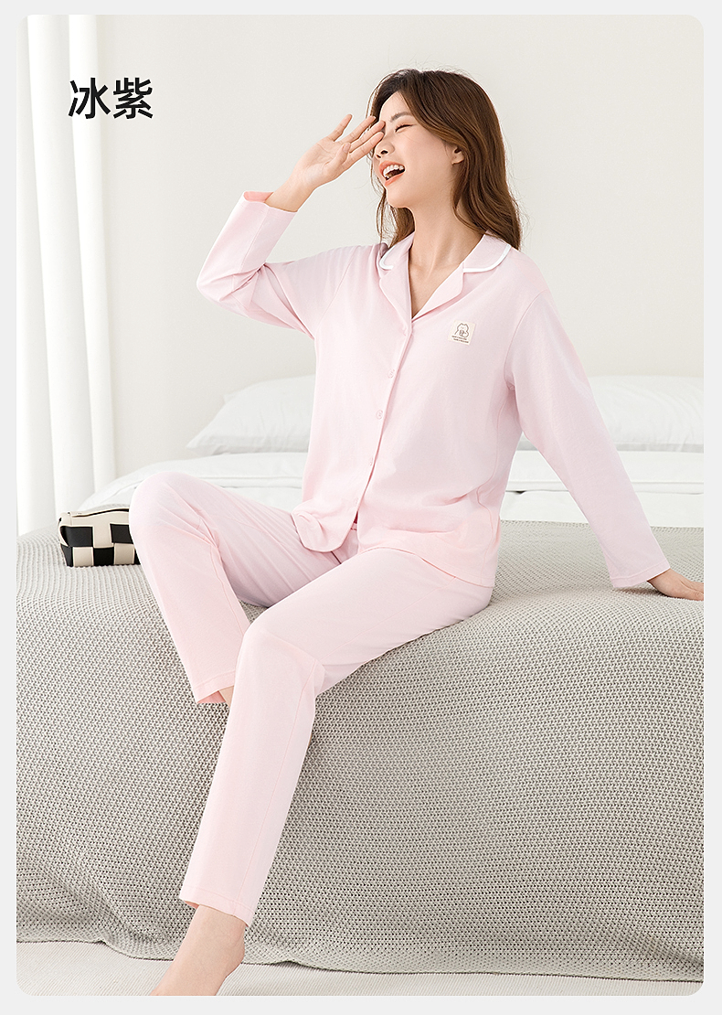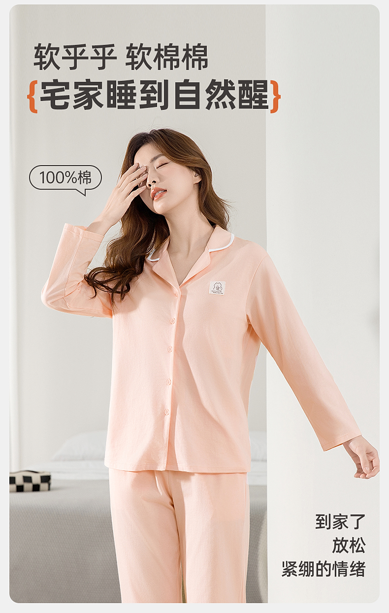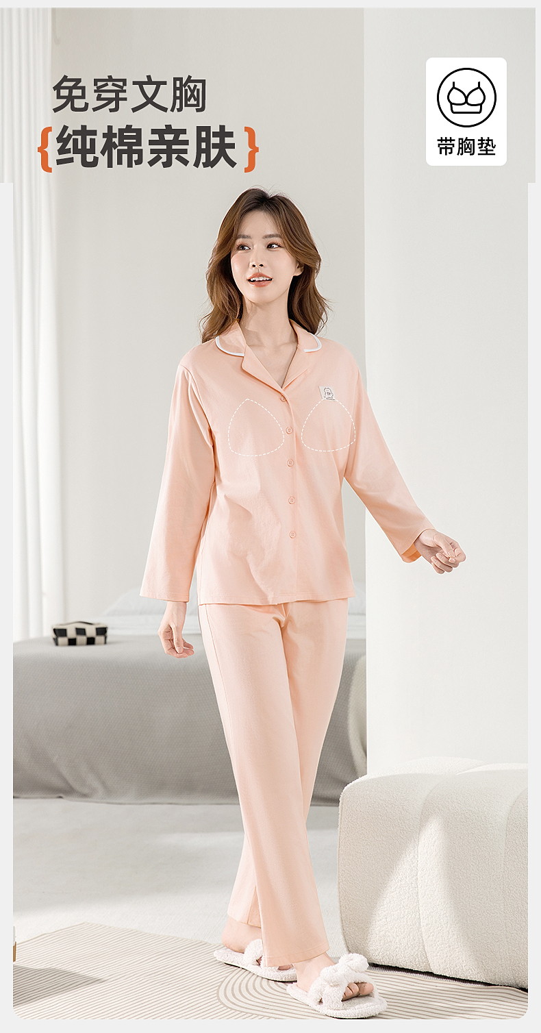 雅黛俪女士家居服套装纯棉舒适透气长袖长裤2026春季新款睡衣带胸垫开衫