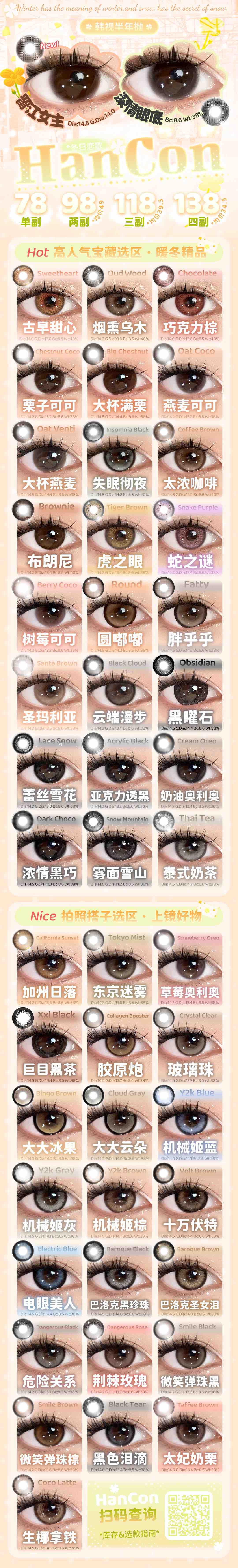 OHCON&HANCON韩视(半年抛) 全系列上新【推荐:黑色眼泪、太妃奶栗、微笑弹珠棕/黑、奶油/草莓奥利奥、树莓/燕麦可可等美瞳】