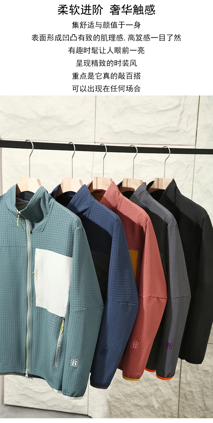 8塔风 立体方格绒 防风防水 轻盈透气!男女情侣款 立领软壳外套 撞色口袋户外休闲夹克!
