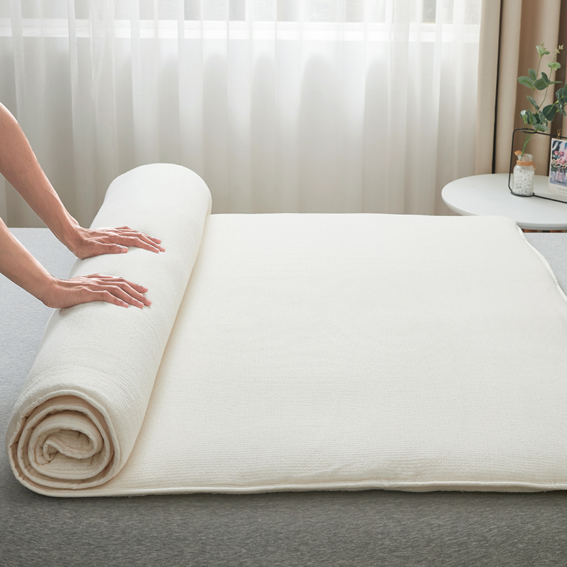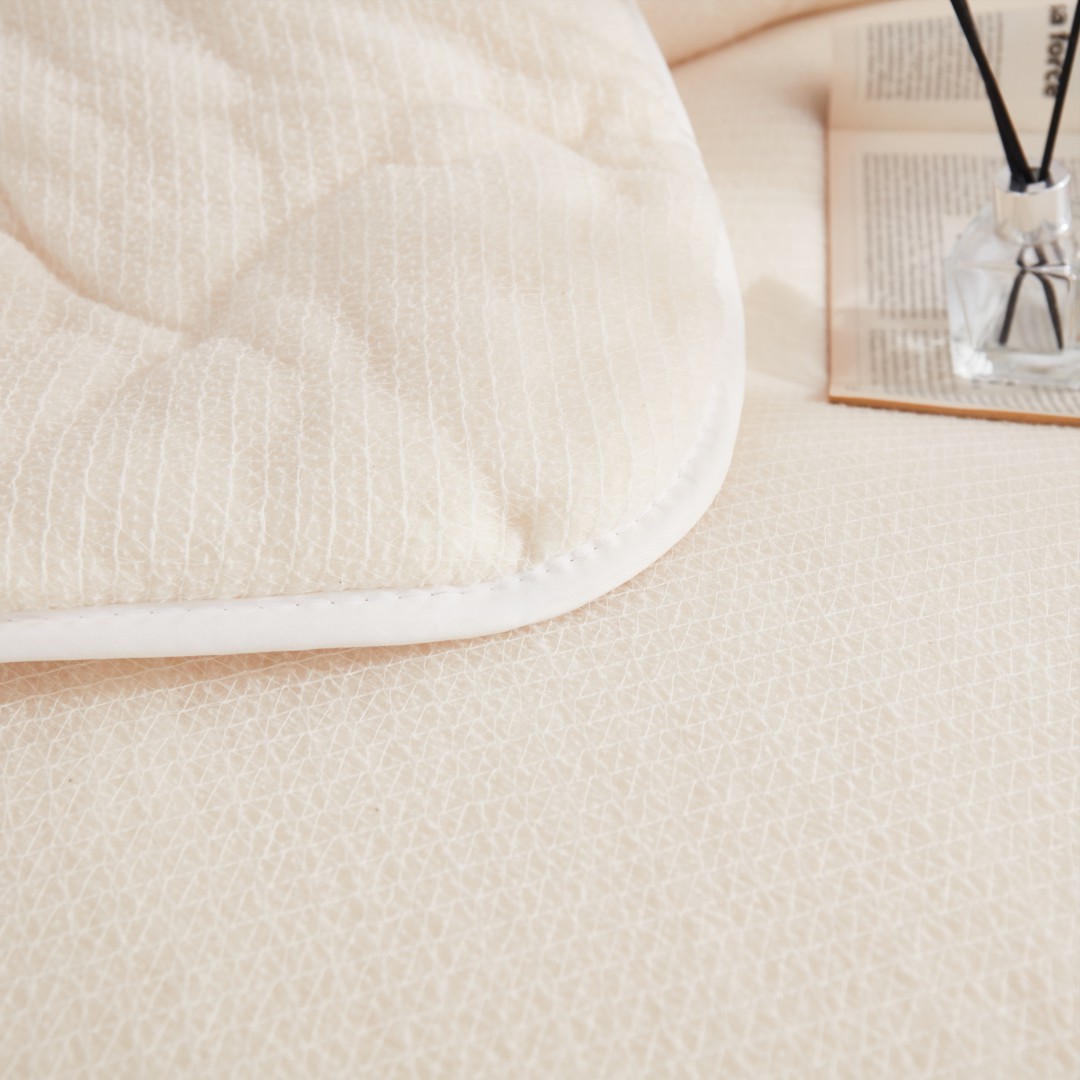 2、新棉被是全新棉花制作的会比较蓬松,先当做垫被压几天,使棉胎和网纱结合更紧实,装被套时不要太大力拉扯,另外注意拉能等尖锐物品不要挂住网纱。