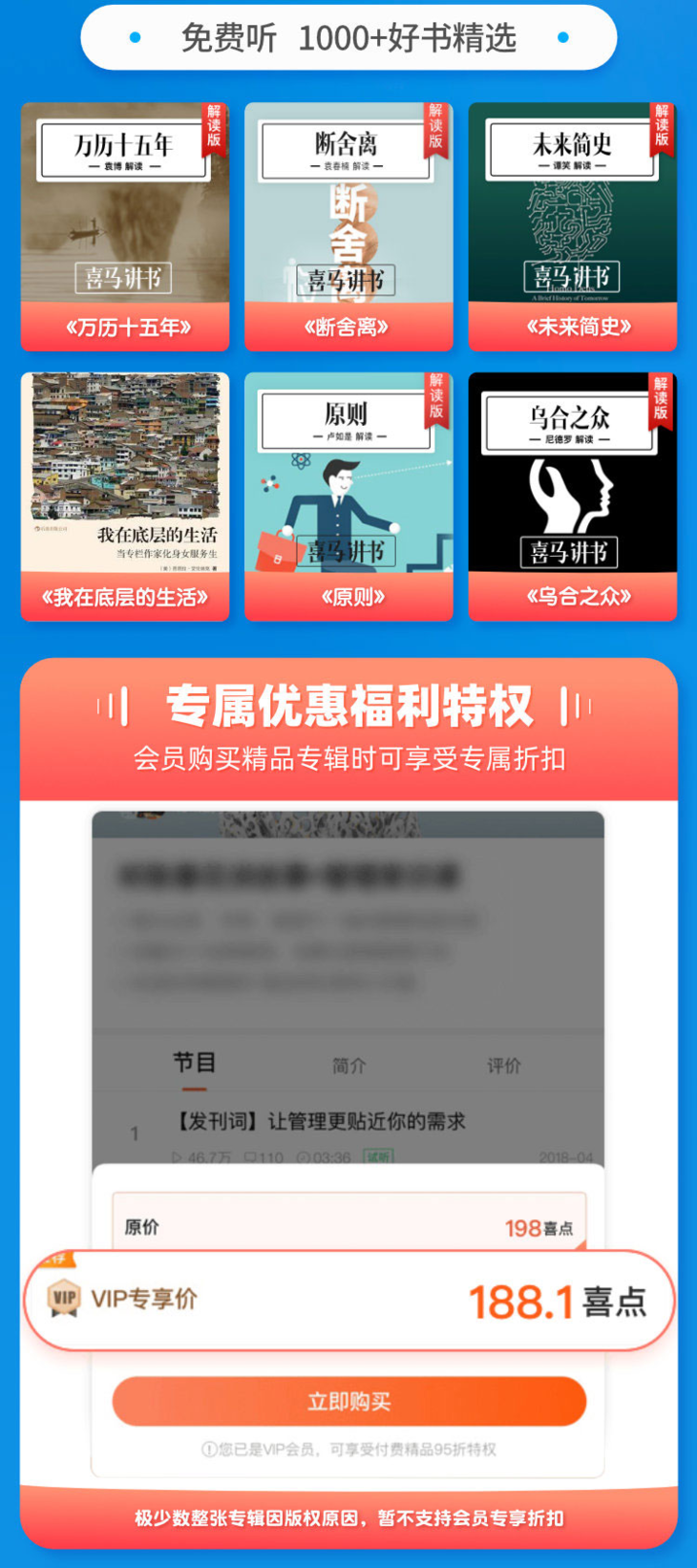 购买须知: ★ 下单前请您务必仔细阅读产品中各项说明,然后在下单订购 ★ 下单购买后,则视为您已仔细阅读本产品中的各项说明,并认同此声明以及产品规则,否则责任自负,不在售后服务之内 产品说明: 支持端口:手机、Pad、电脑【不支持电视端】 充值账号:请填写喜马拉雅登录绑定的手机号,不支持在备注填写充值号码,仅支持下单默认的充值手机号,请不要填错 充值时间:本产品为快速直充,下单后5-60分钟左右到账 购买限制:每笔订单限购1单,多次购买请分开下单 到账核实:下单后60分钟未到账,请先登录自己的账号查看,退出重新登录查看,如确实未到账,请及时联系客服 开票说明:本产品价格不包含发票,如需发票请联系客服咨询具体情况 注意事项: 顾客下单后自动充值,发货状态并不会立刻变成已发货,已经充值成功无法退换 虚拟充值产品不适用于七日无理由退货条款,一经购买,不退不改 因个人原因造成充值错误,责任自负,不予退款 如遇市场断货问题,平台将无条件为客户进行退款 |