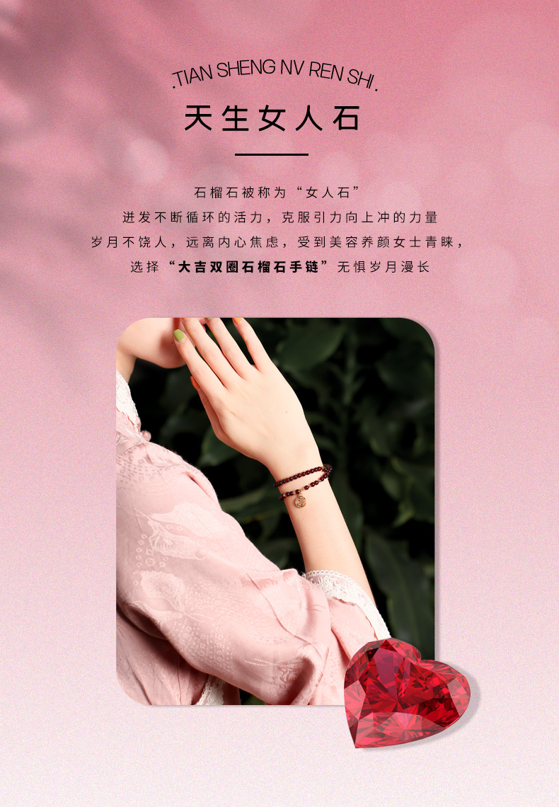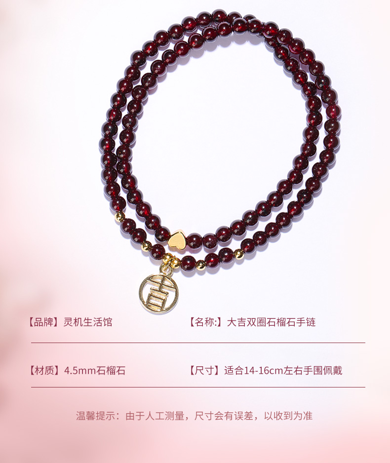 【女性之石】灵机吉品 大吉双圈石榴石手链 幸福来源