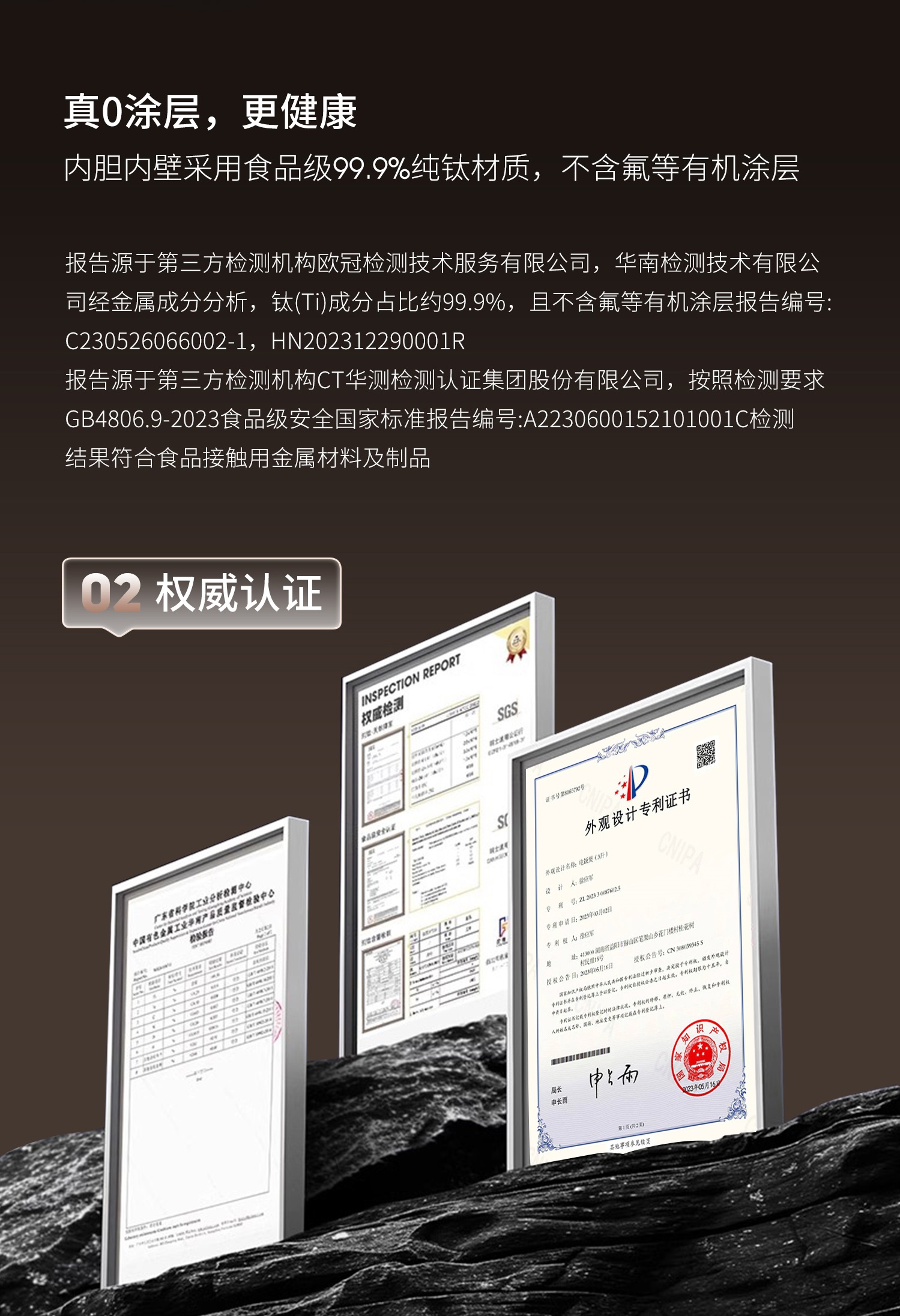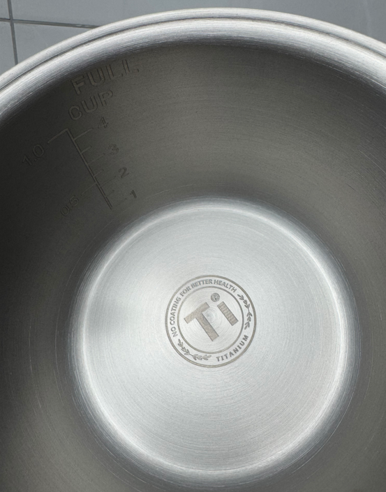 1、钛内胆,这款锅一大特点就是0涂层,内胆的内壁是纯钛的,也就是和食物接触的都是钛材质,不但健康,而且煮的饭菜也会更加原汁原味哦,也更加的耐用。