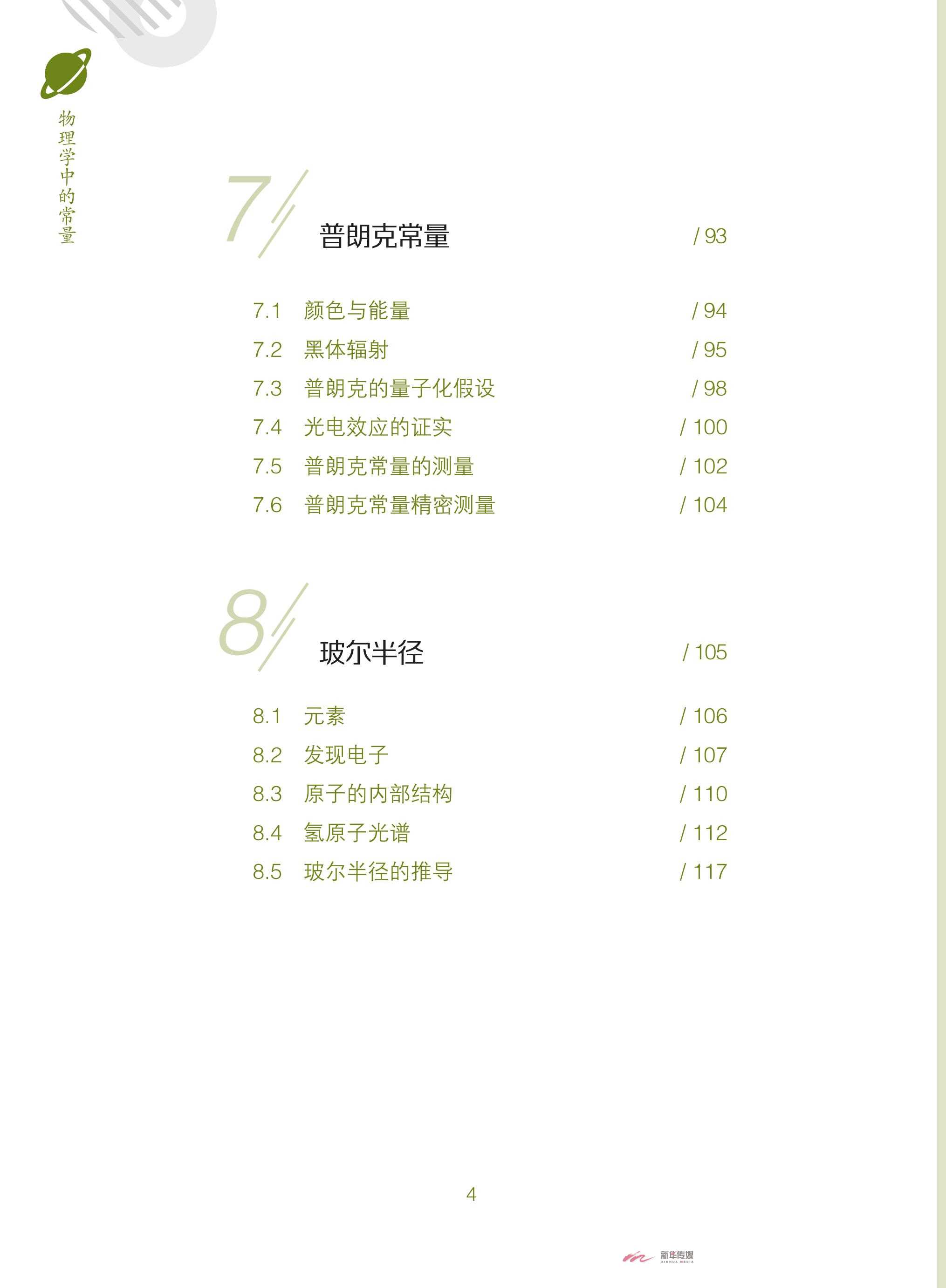 《物理学中的常量》从物理学26个基本物理常量中整理出相对重要的8个常量作为写作对象,如真空中的光速、引力常量、阿伏加德罗常数、元电荷等,按照它们在中学物理课本中出现的先后顺序展开写作。写作内容包括:呈现物理常量出现前物理学各理论的对冲矛盾,介绍物理学家在解决现实和实验问题过程中的理论推演,叙述物理学家在科学研究中发生的逸闻趣事和展现的人性光辉,展现基本物理常量推导的简要过程和测定方法、结果并做对比,审视世界观建立的哲学演变和物理学发展史,评价基本物理常量存在的价值和意义。