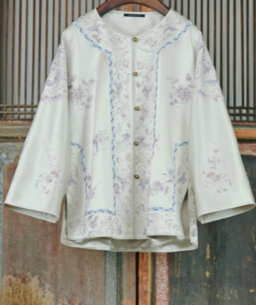 盛唐牡丹 | 粉色蝶恋花/紫色喜鹊缠枝真丝提花褶皱上衣