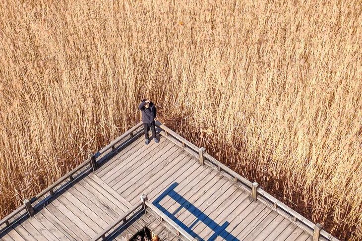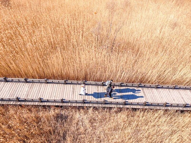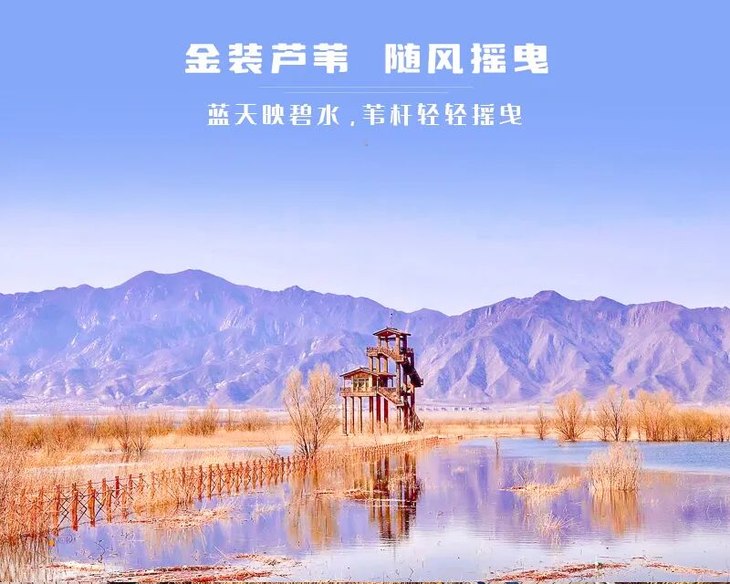 这里也是华北地区最大的湿地公园。水草芦苇丰茂,风吹过的时候,非常漂亮,公园沿途有亲水木站台,鸟岛,湿地观景台,望湖楼,西保护站,观鹤台,湿地百草原等特色景点。