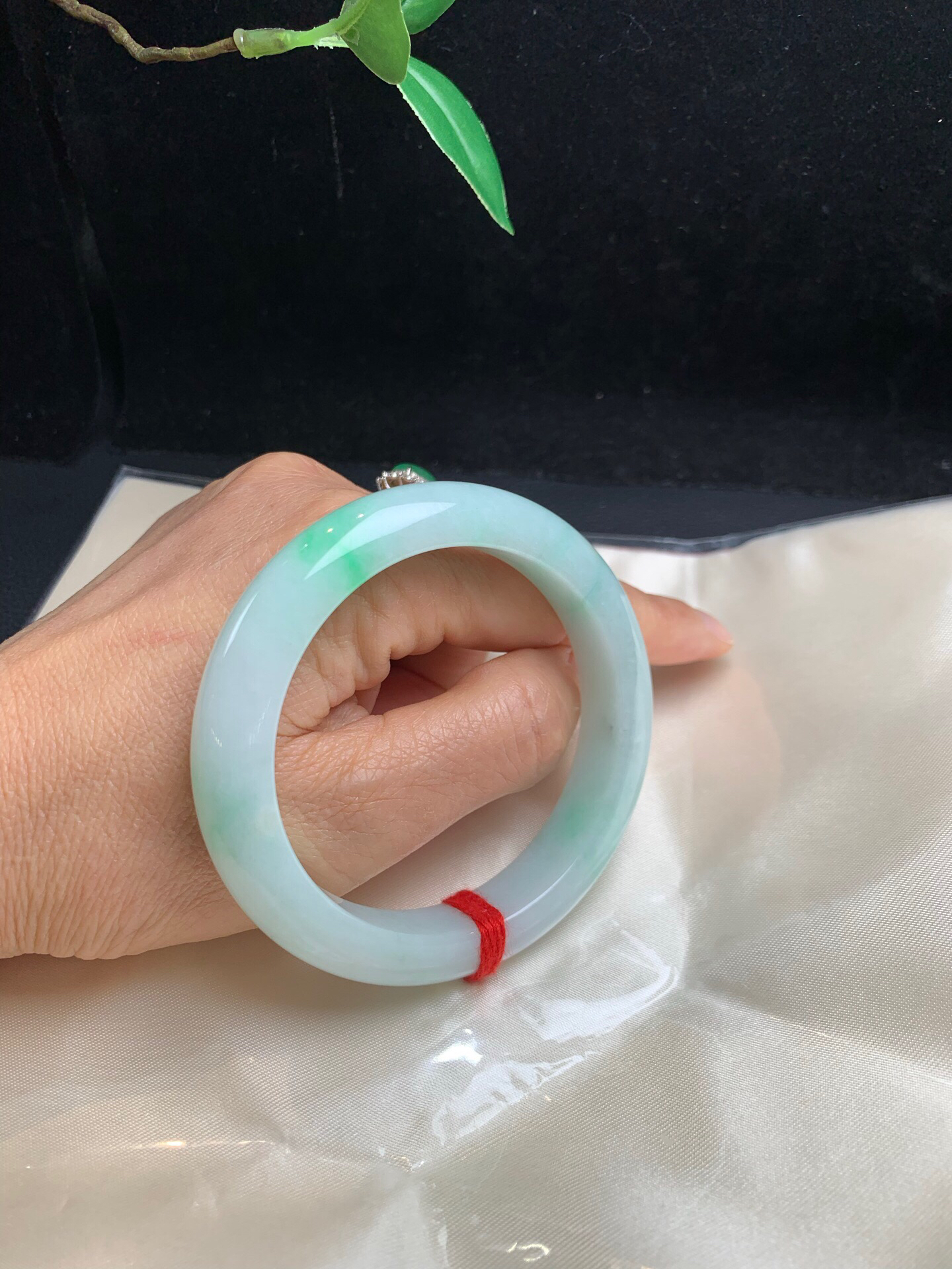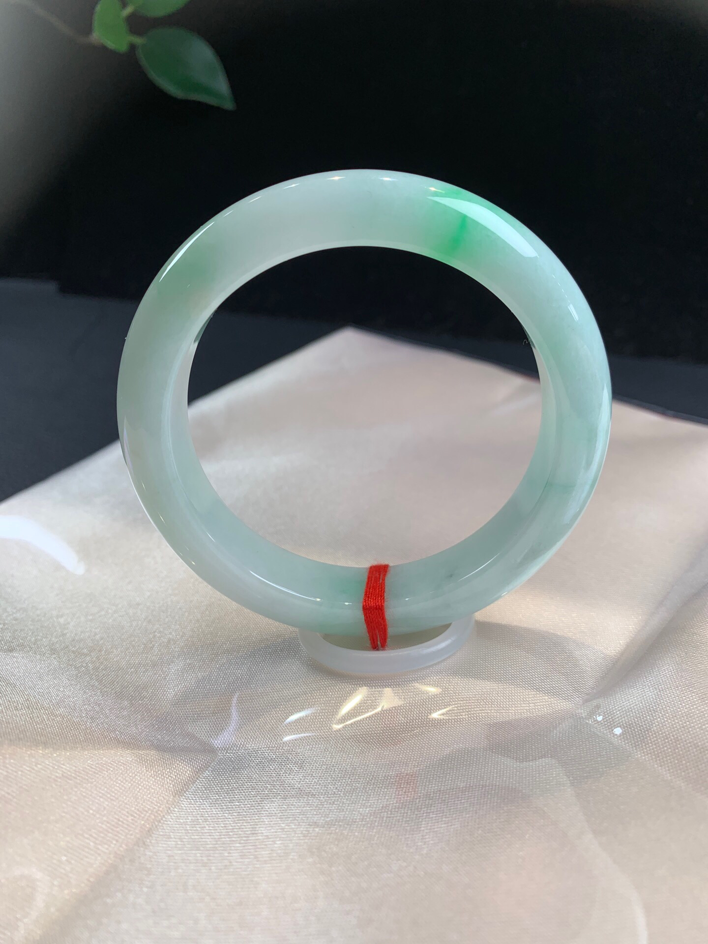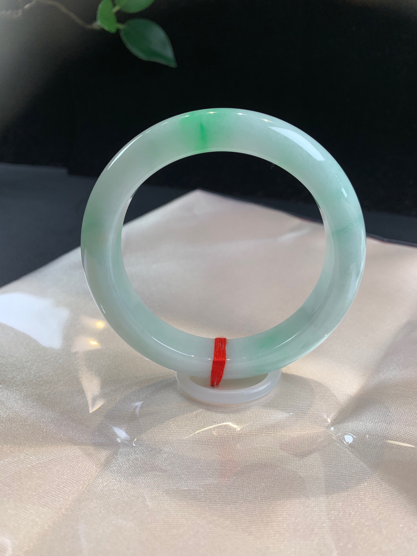 620726,56.3飘绿圆条手镯。12.5mm,条形好,整条带浅绿底,干净清爽,完美的