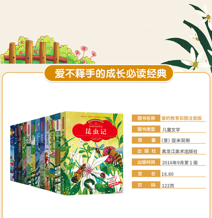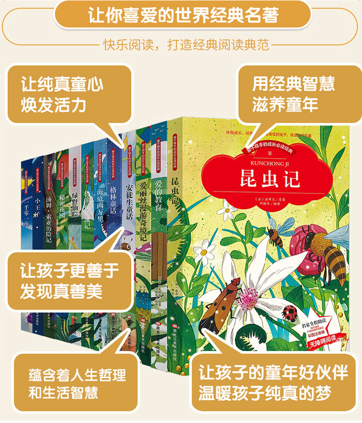 正版书籍 12册彩图注音版昆虫记海底两万里爱的教育安徒生童话格林童话爱丽丝漫游奇境记小学生一二三年级课外阅读儿童名著