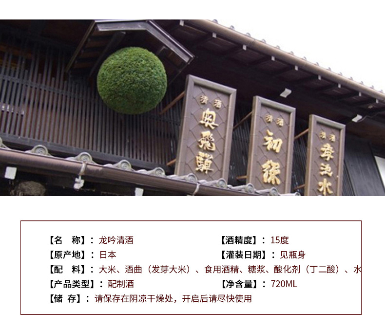 日本清酒龙吟奥龙飞弹配制酒 720ml
