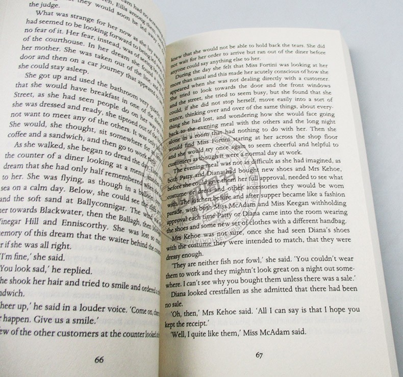 托宾讲述了一个非常饱满的故事,用节制、简洁而有力度的文笔,令细小的心理颤动都能感动人心。透过女主人公艾丽丝小心翼翼的眼睛,即便布鲁克林老套的日常活动都带上一种微妙的陌生感。在这部以漂泊他乡为主题的小说中,托宾摒弃夸耀与感伤的情绪,让我们重新领悟到:漂泊他乡,就会在故土与他乡都成为异乡人。——《纽约客》