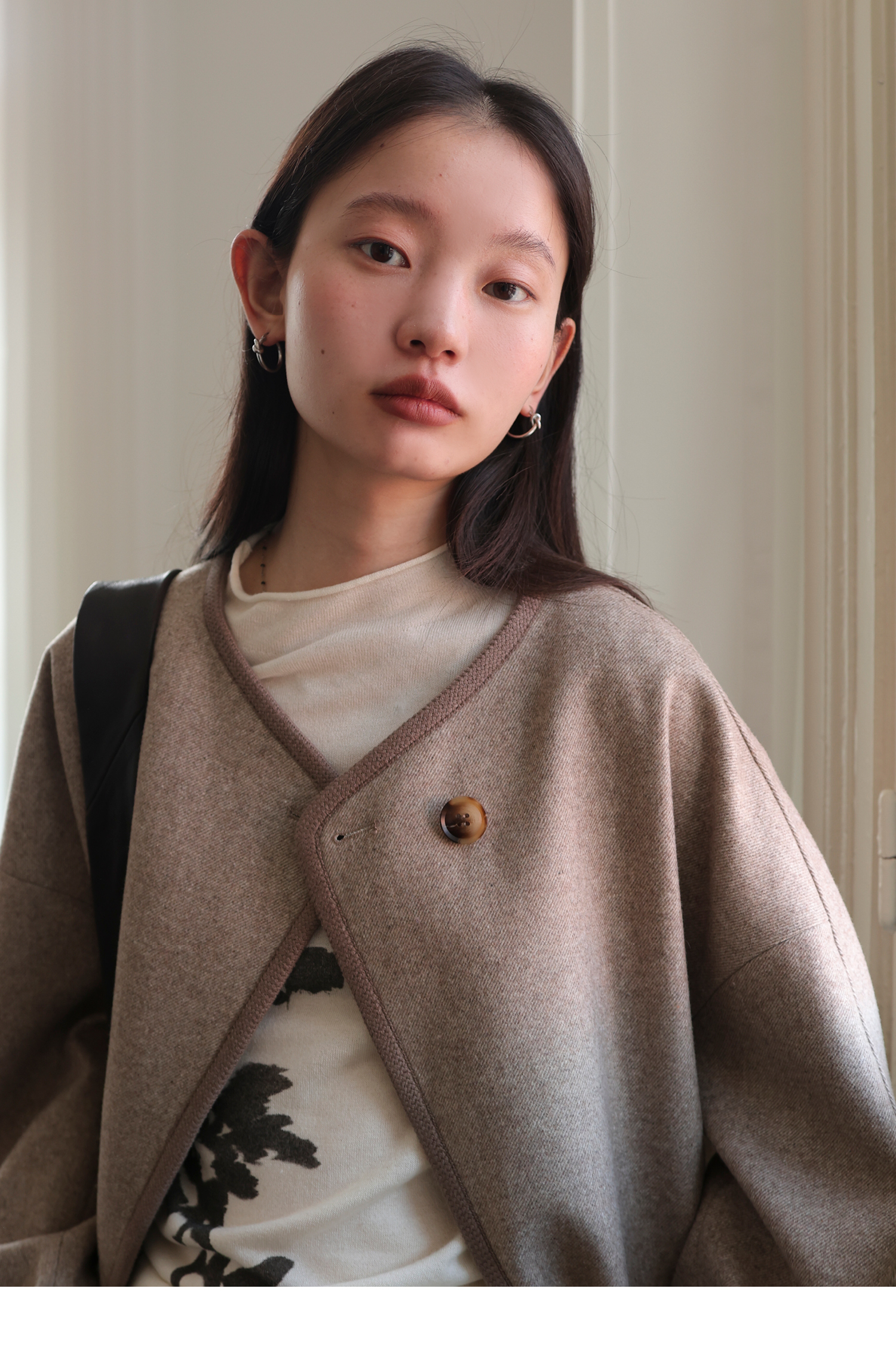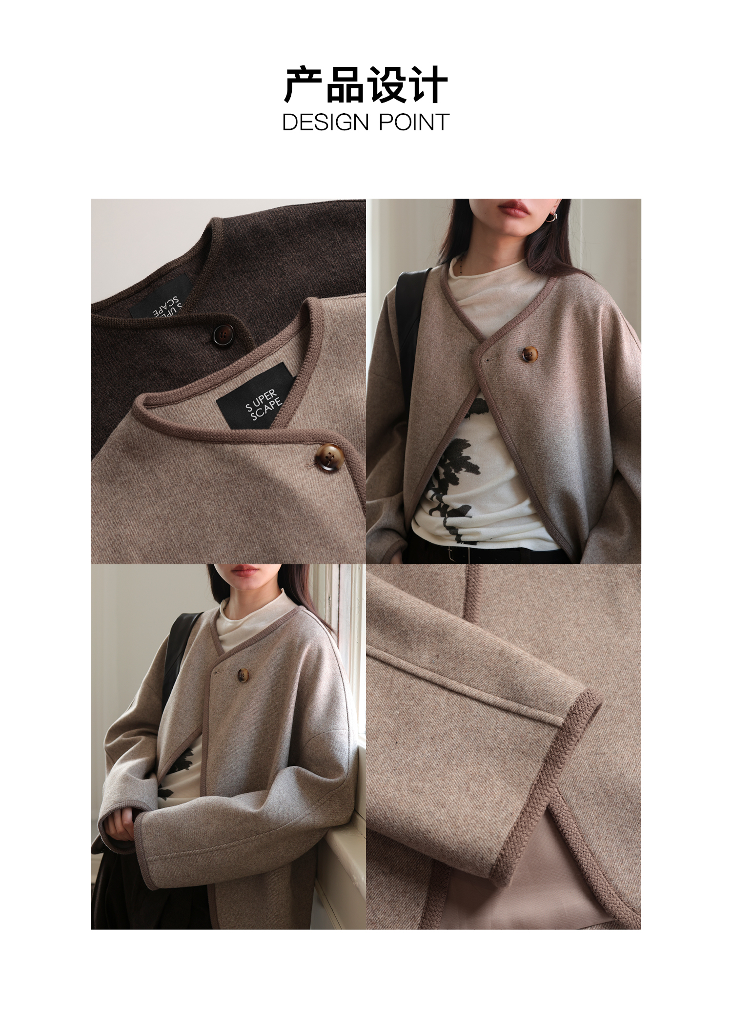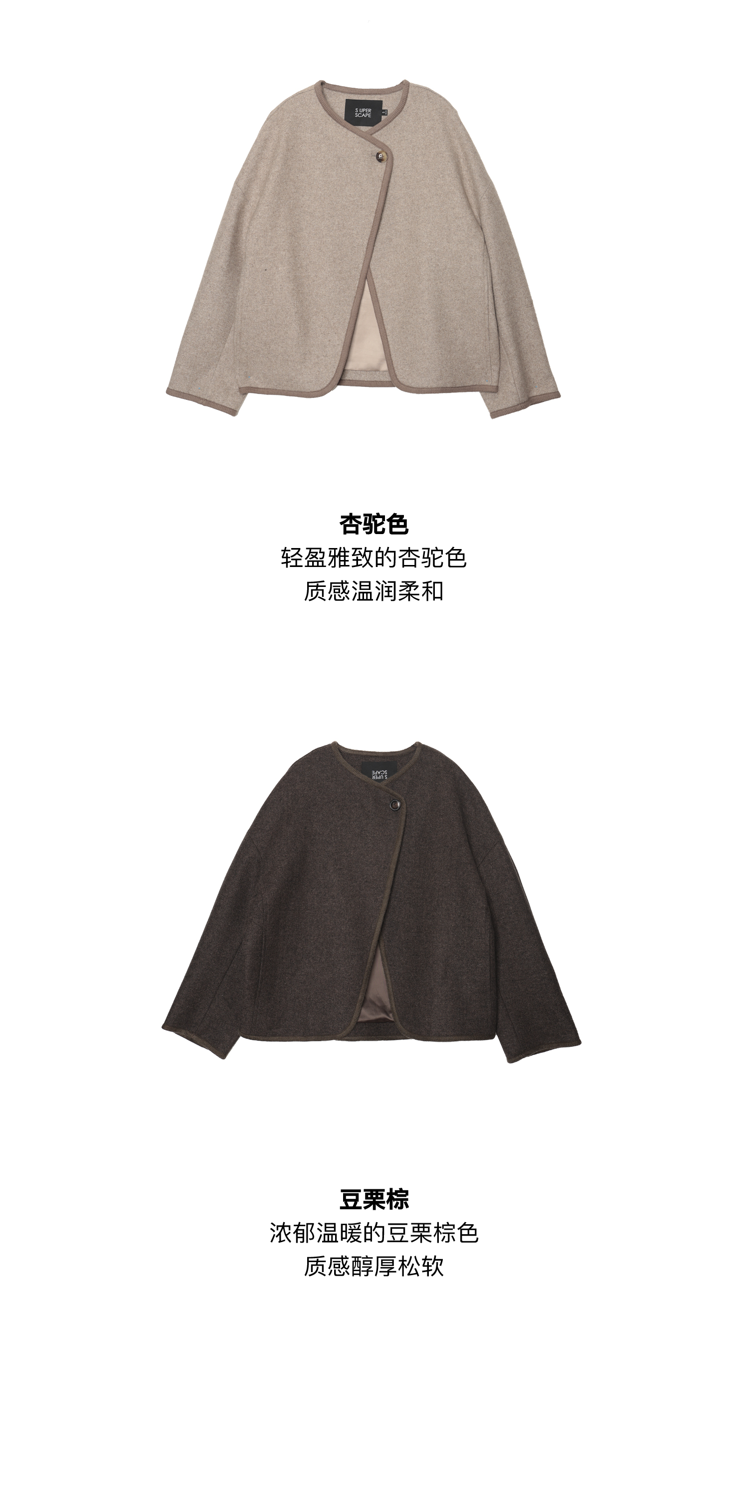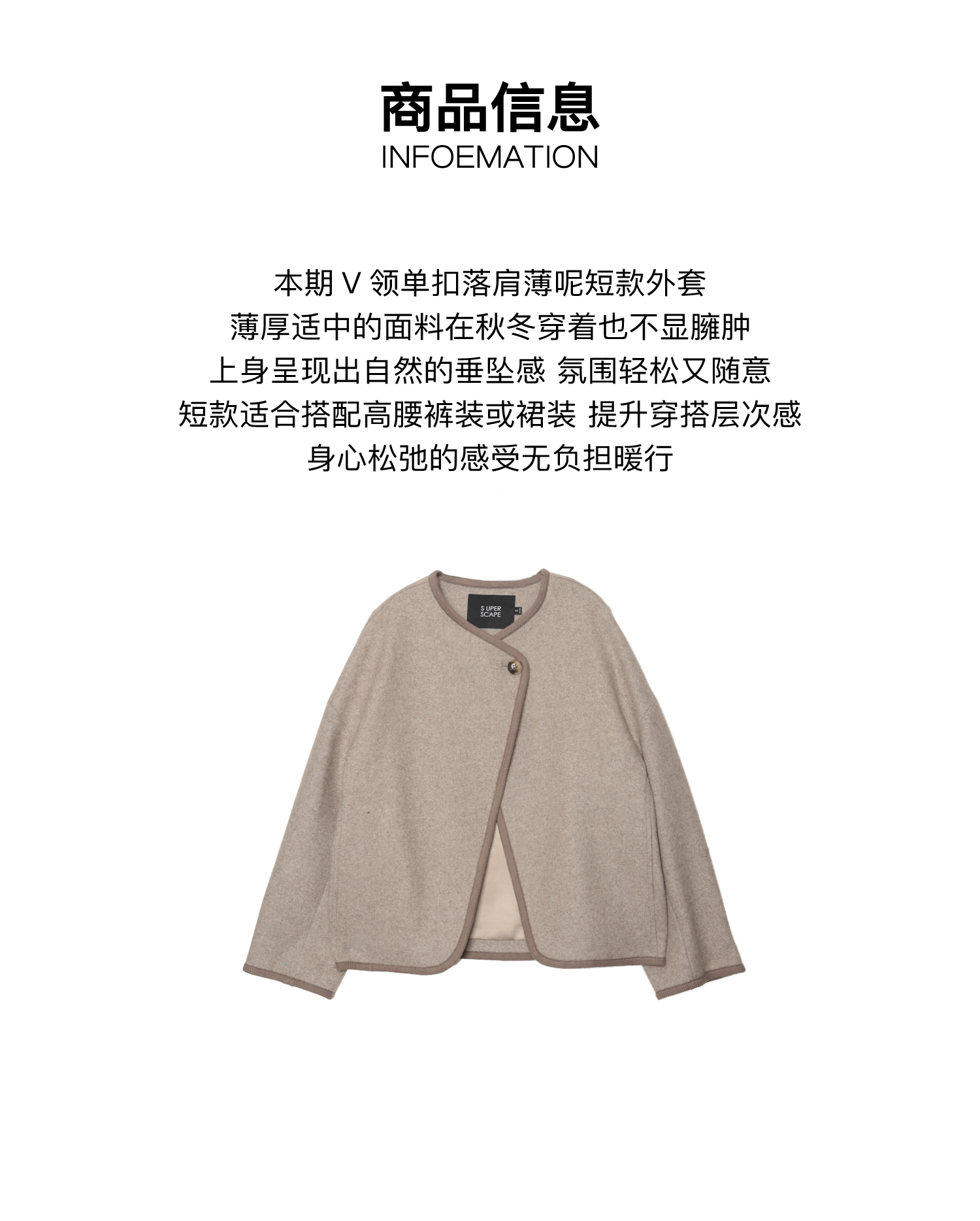 【5折不退换 买六免一】SUPERSCAPE素舶 设计感秋冬V领单扣落肩薄呢宽松休闲短款大衣