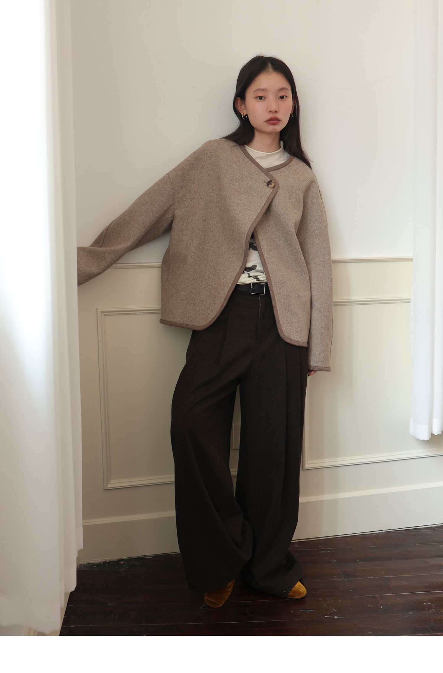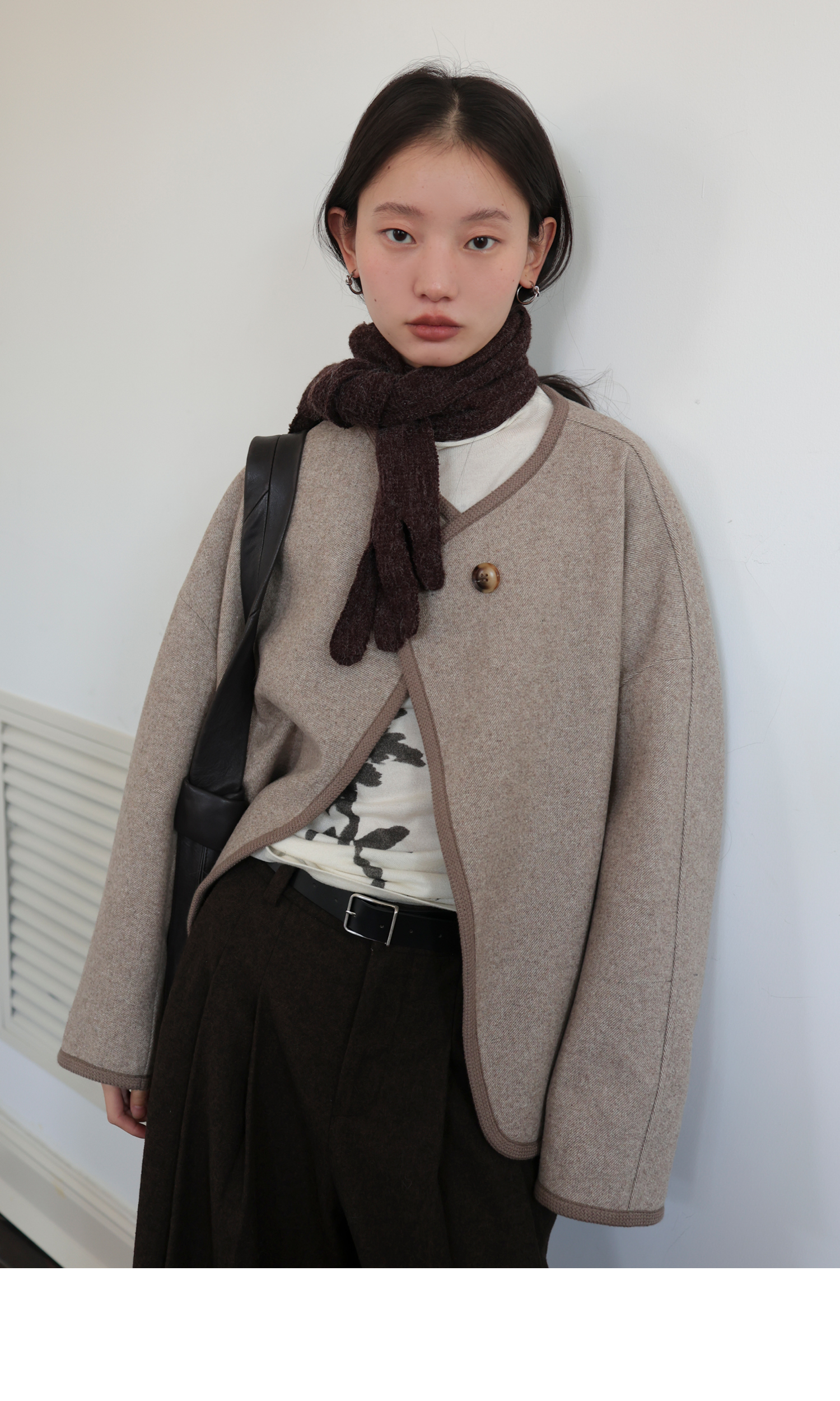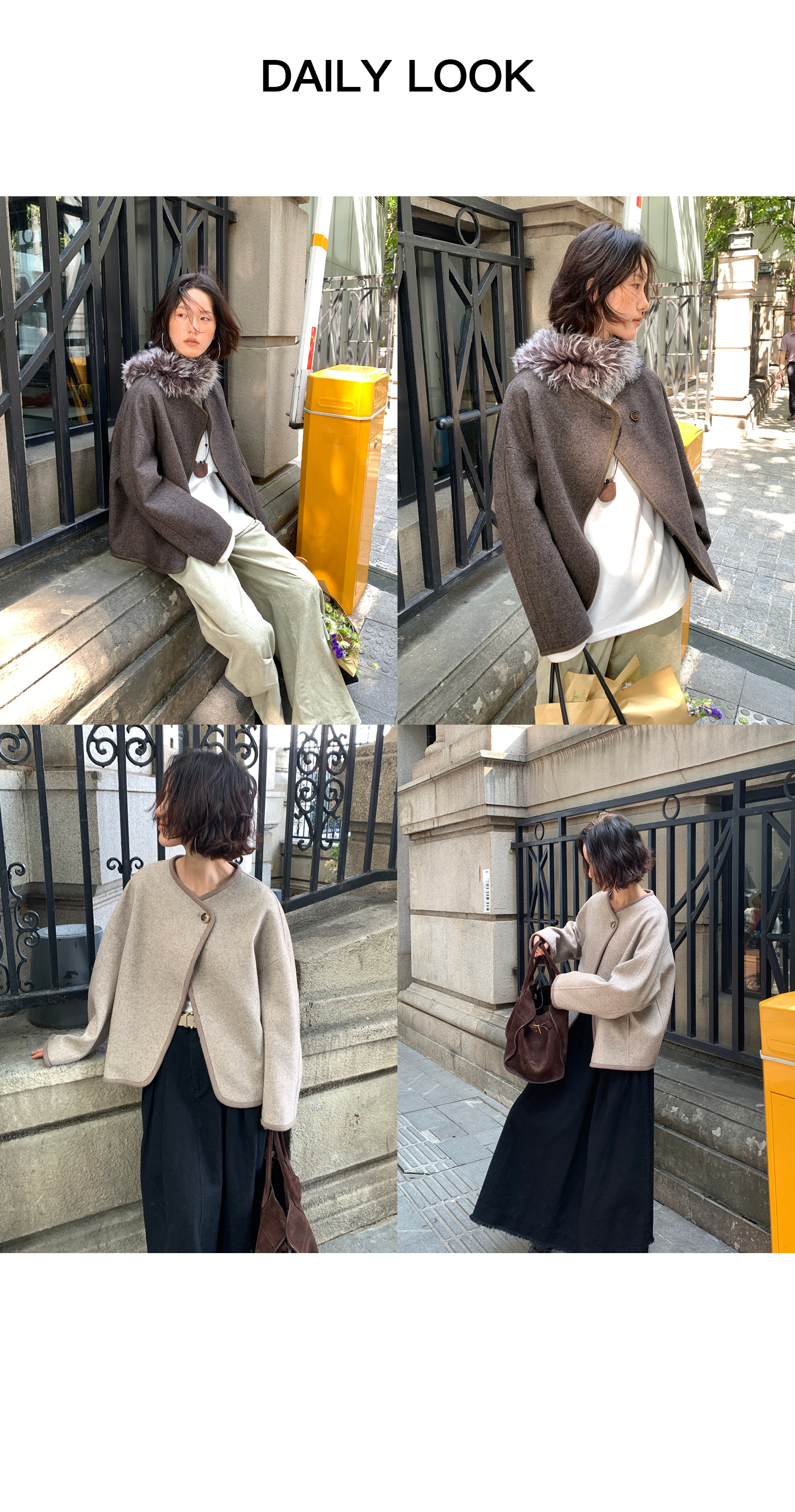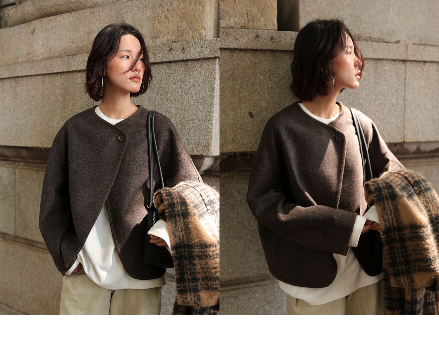 【5折不退换 买六免一】SUPERSCAPE素舶 设计感秋冬V领单扣落肩薄呢宽松休闲短款大衣