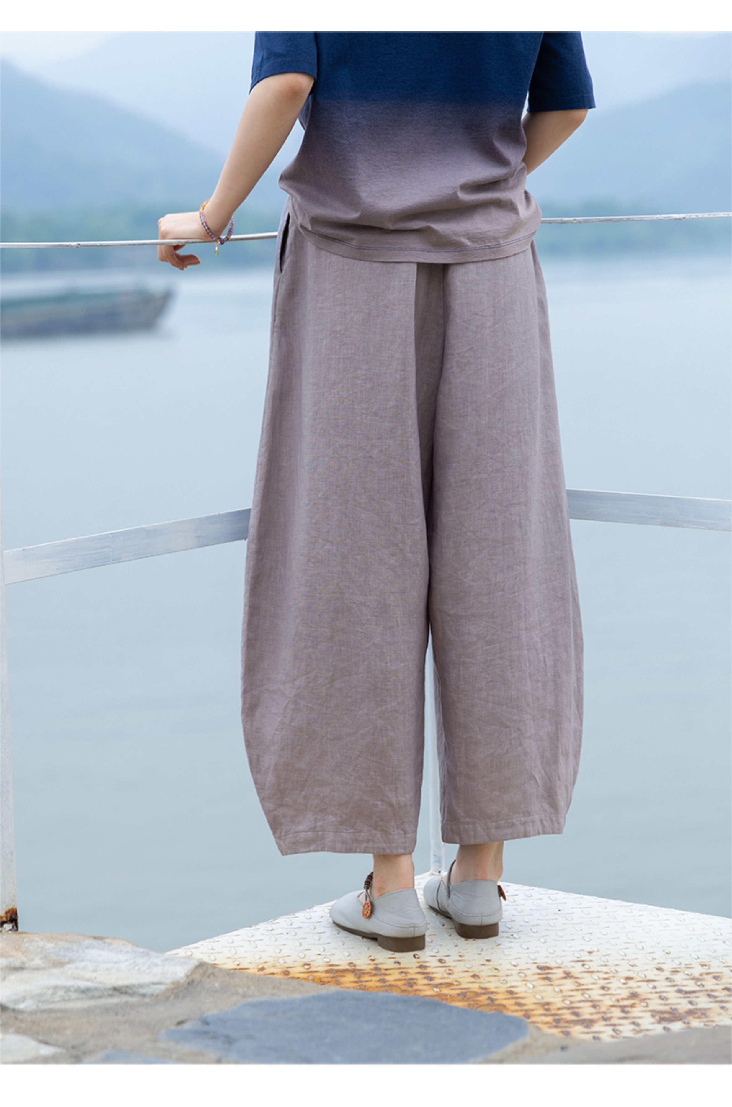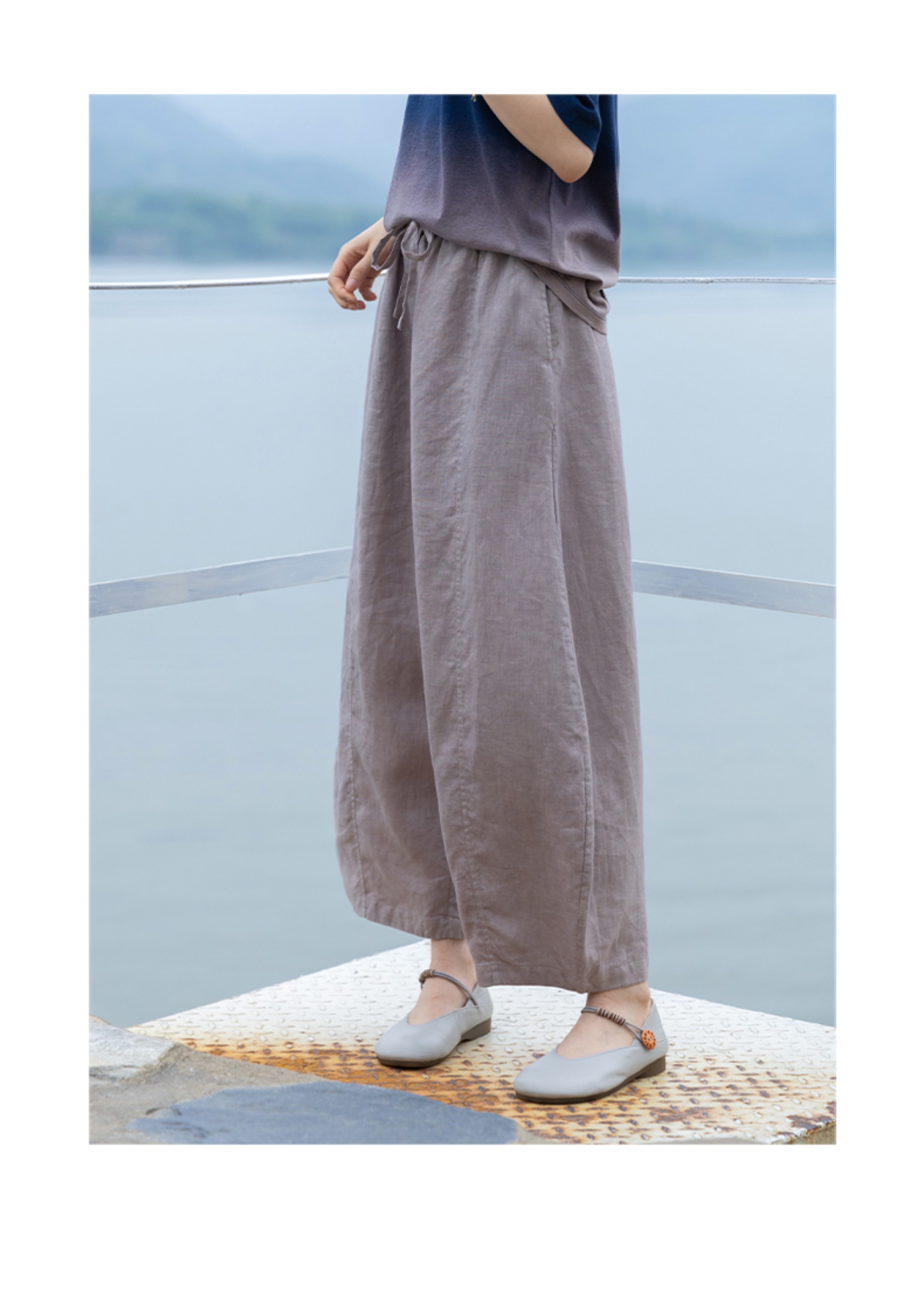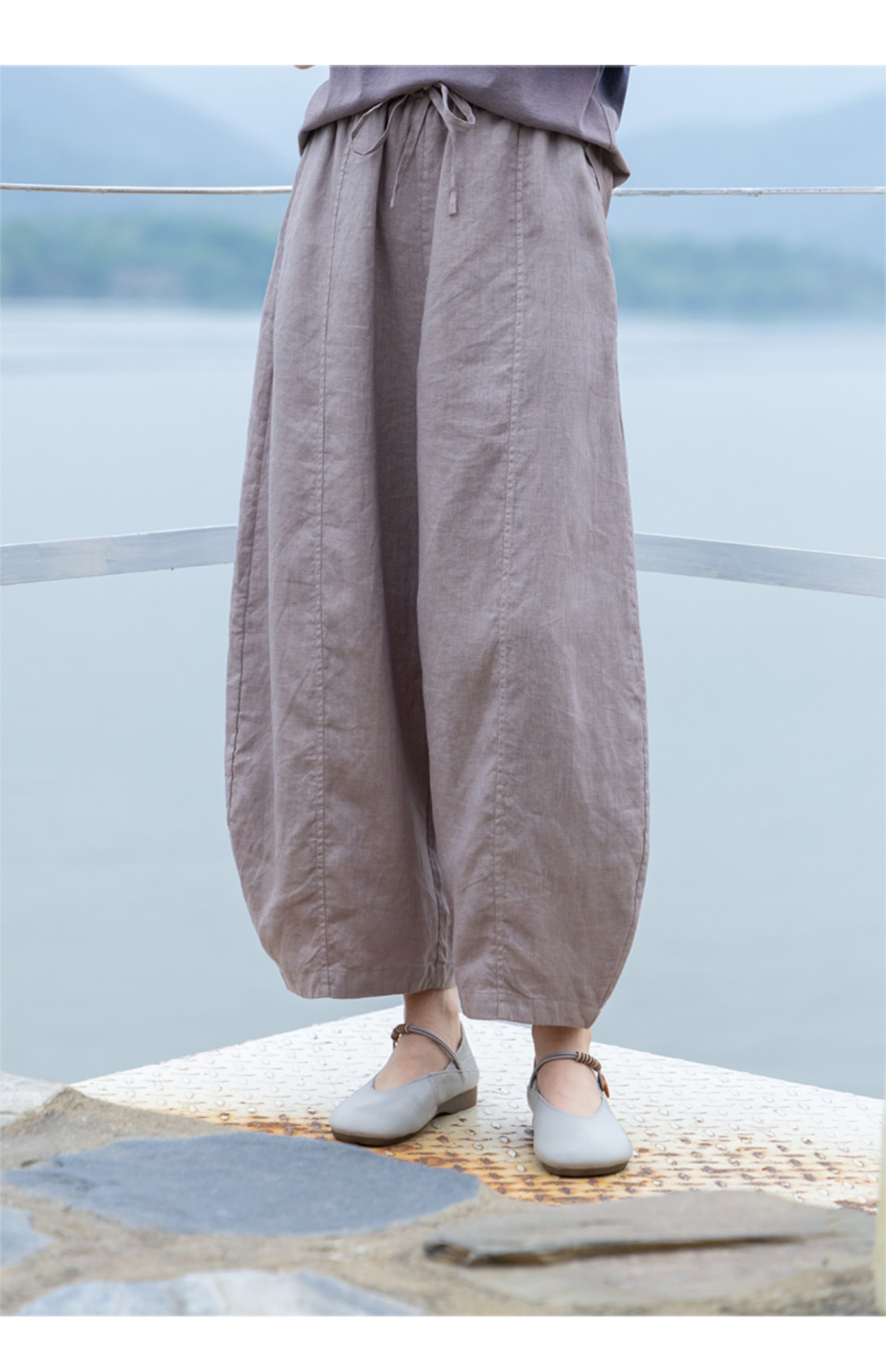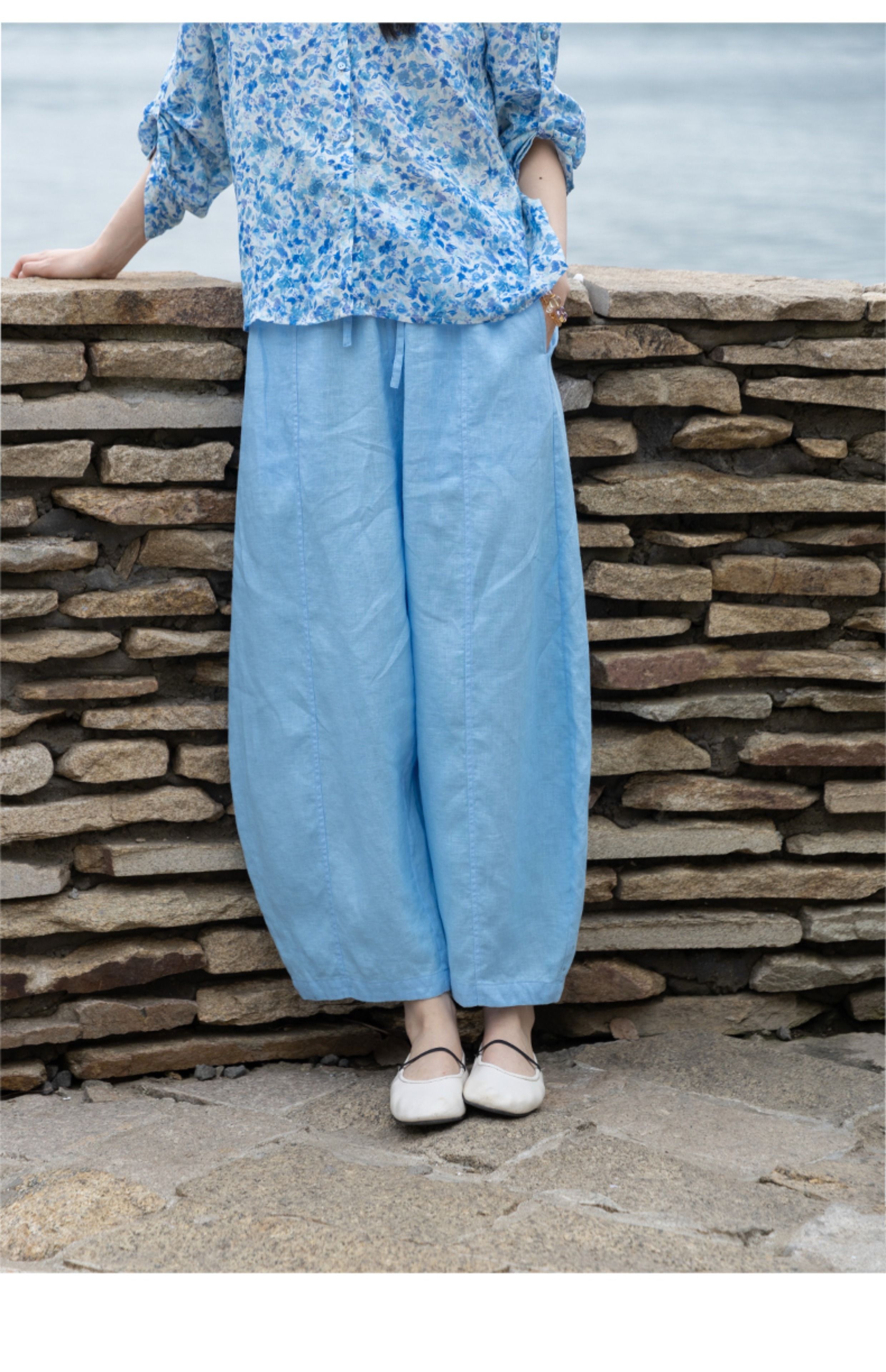绽放324朵/【海街日记·小弯刀】长纤亚麻成染松紧腰弯刀九分裤女
