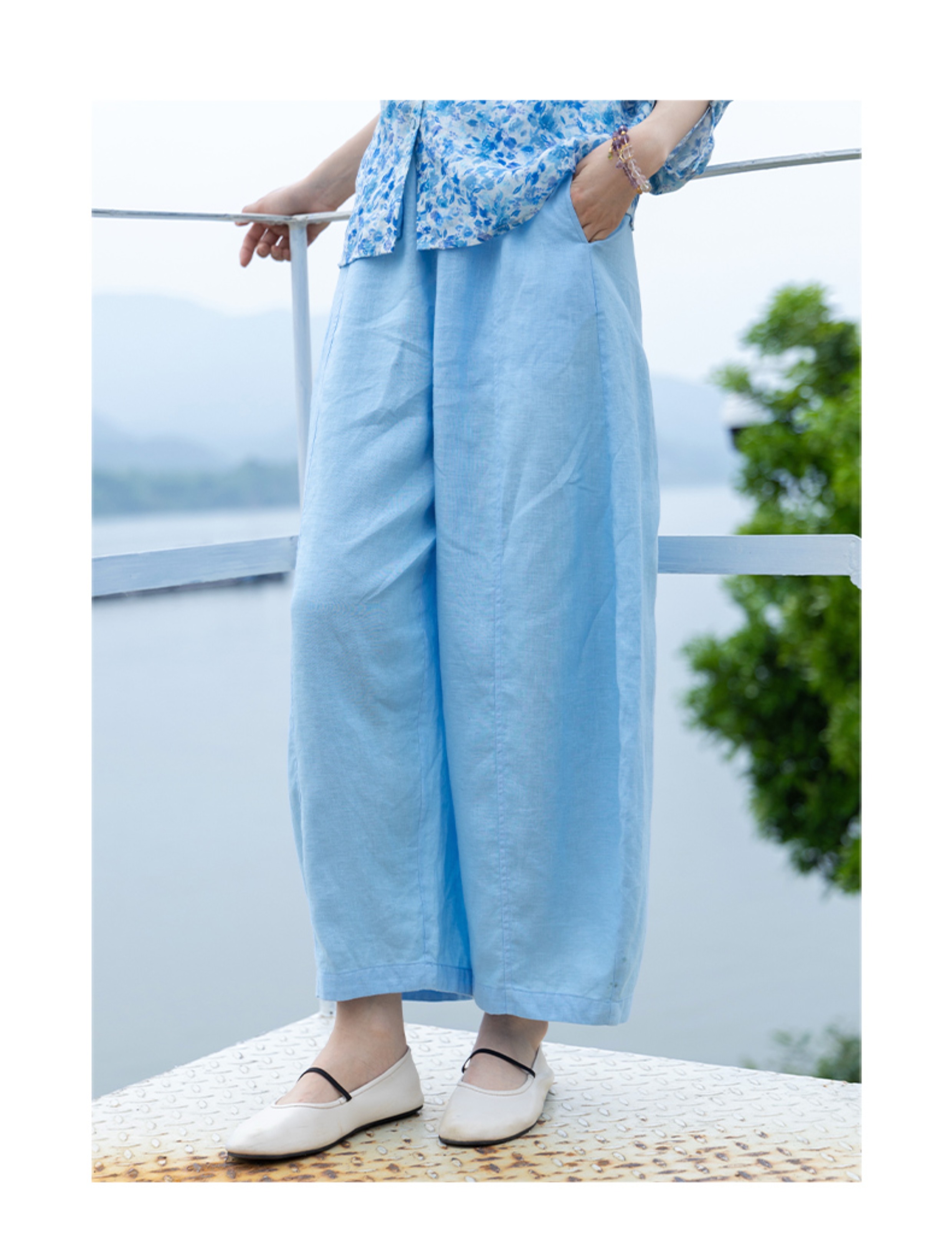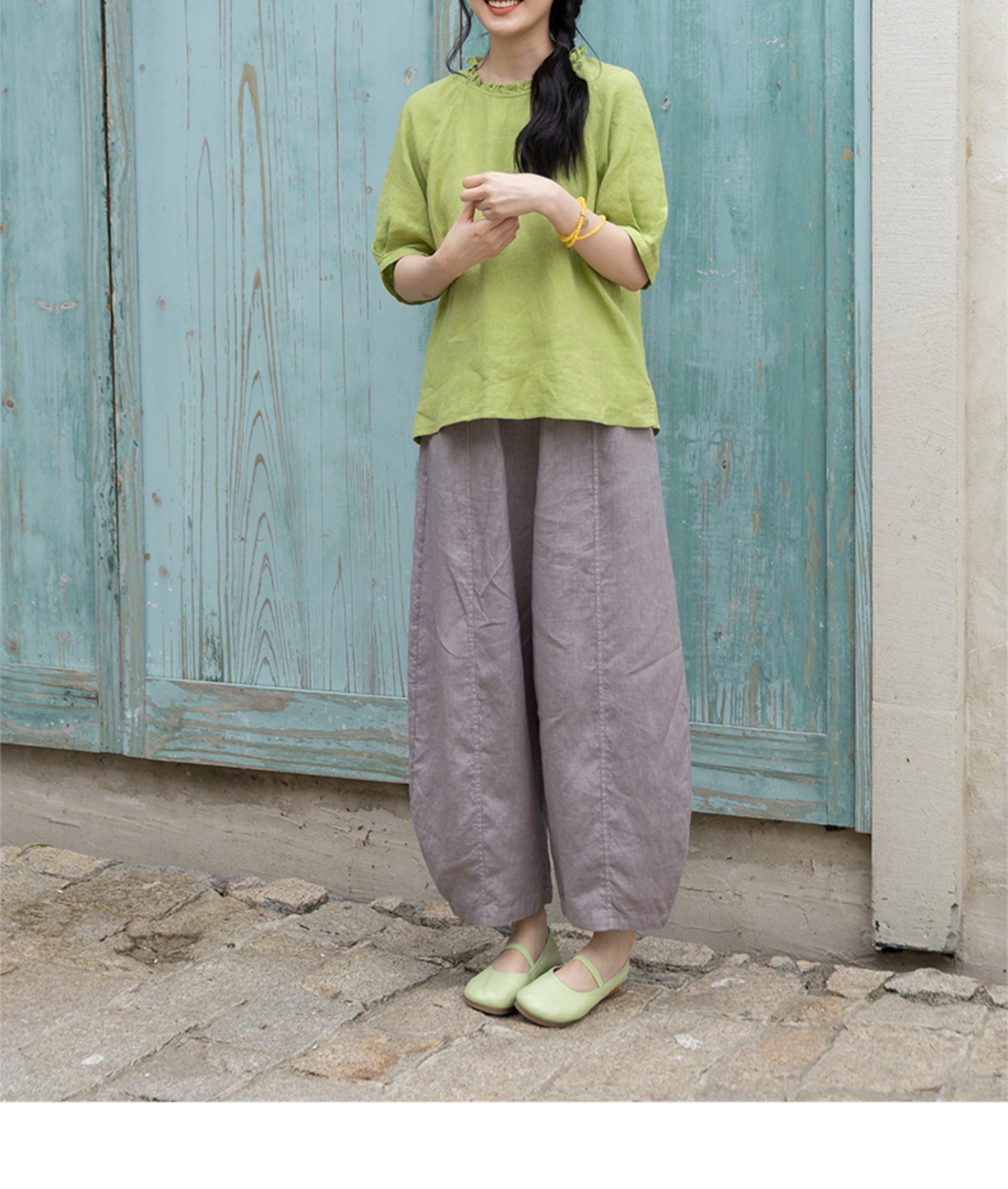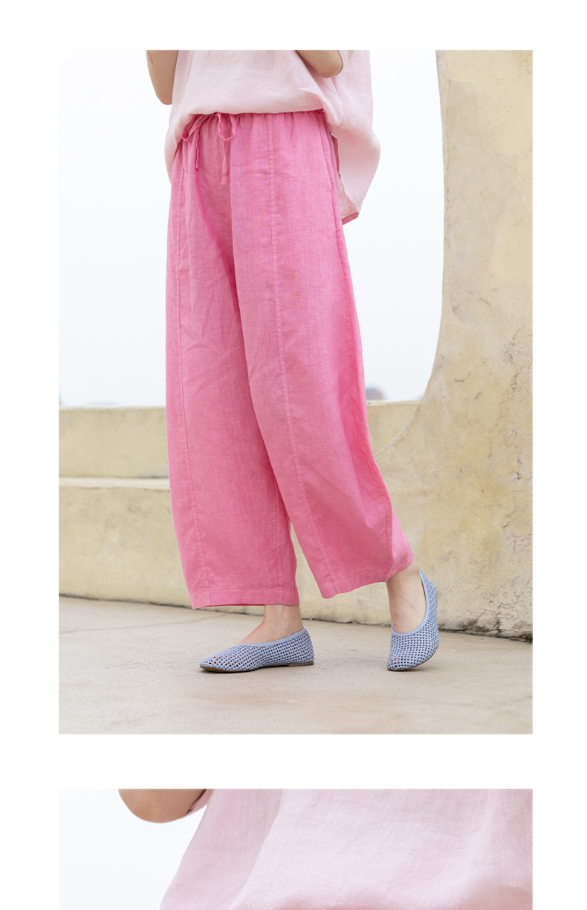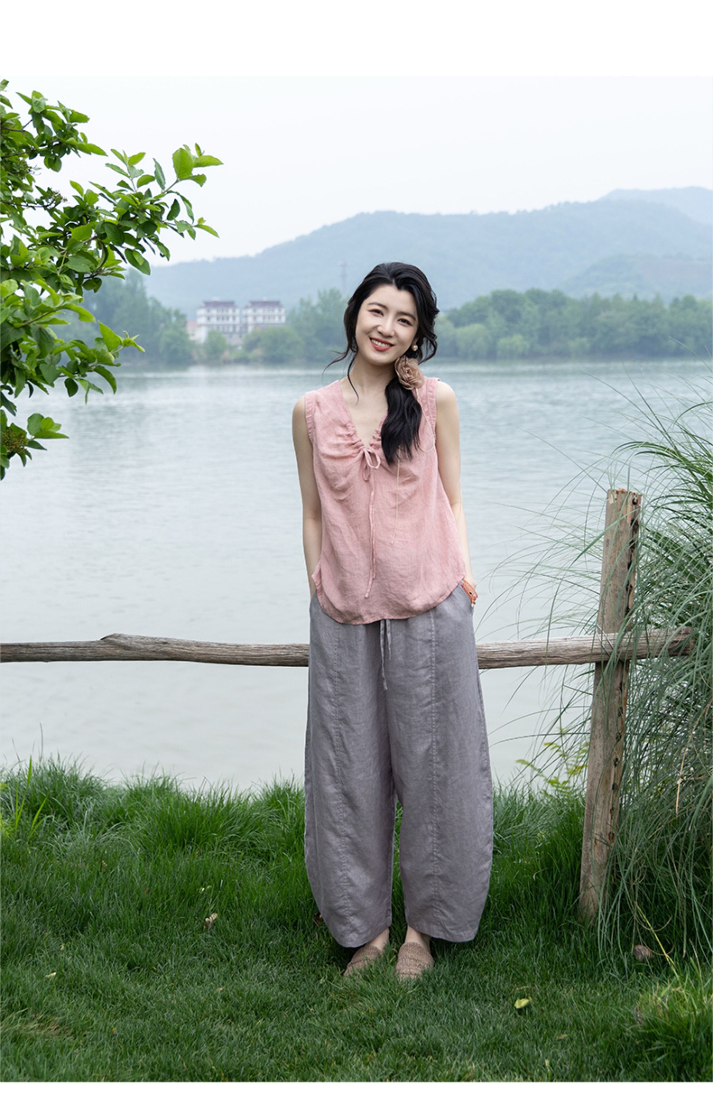 绽放324朵/【海街日记·小弯刀】长纤亚麻成染松紧腰弯刀九分裤女