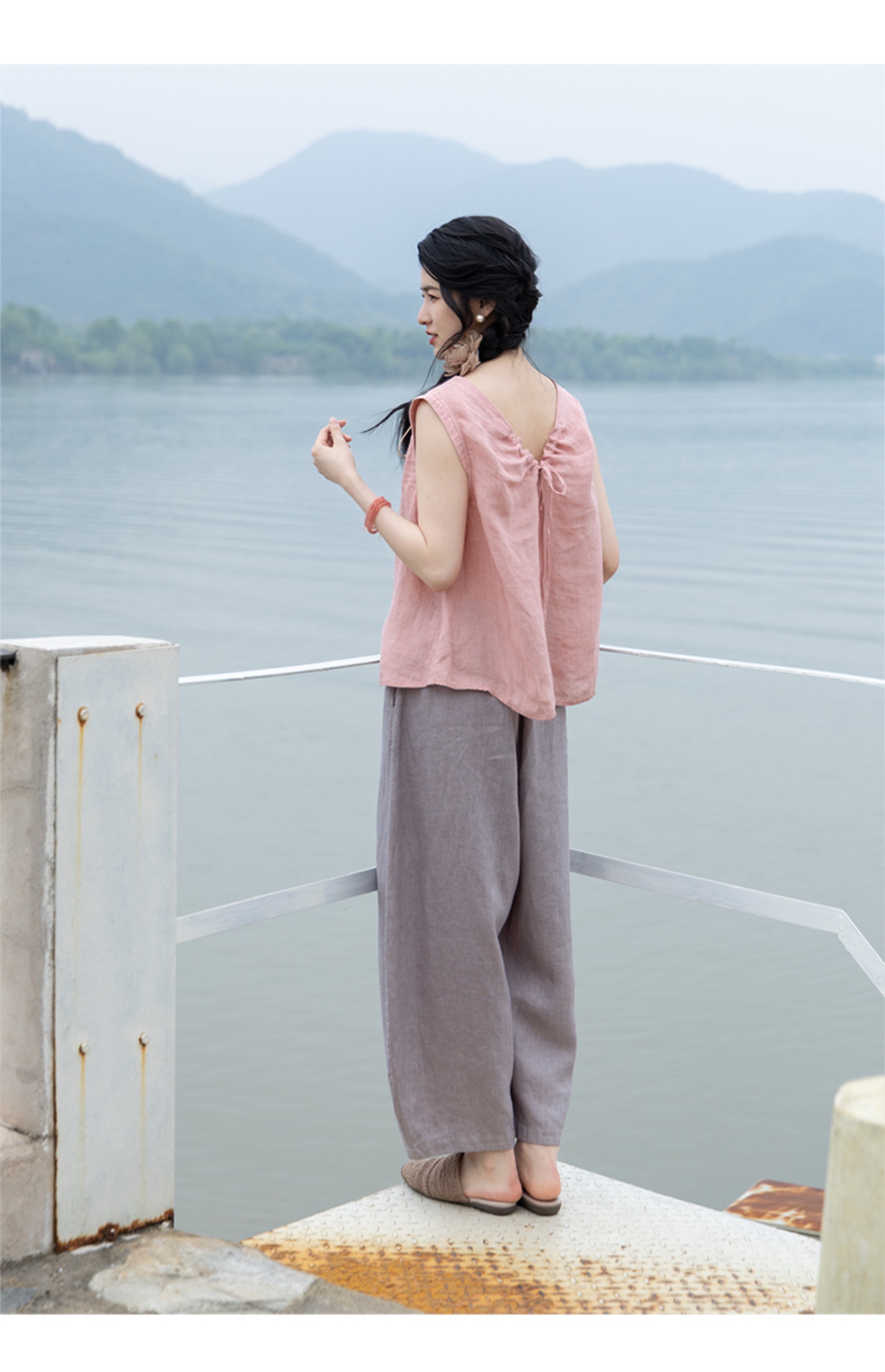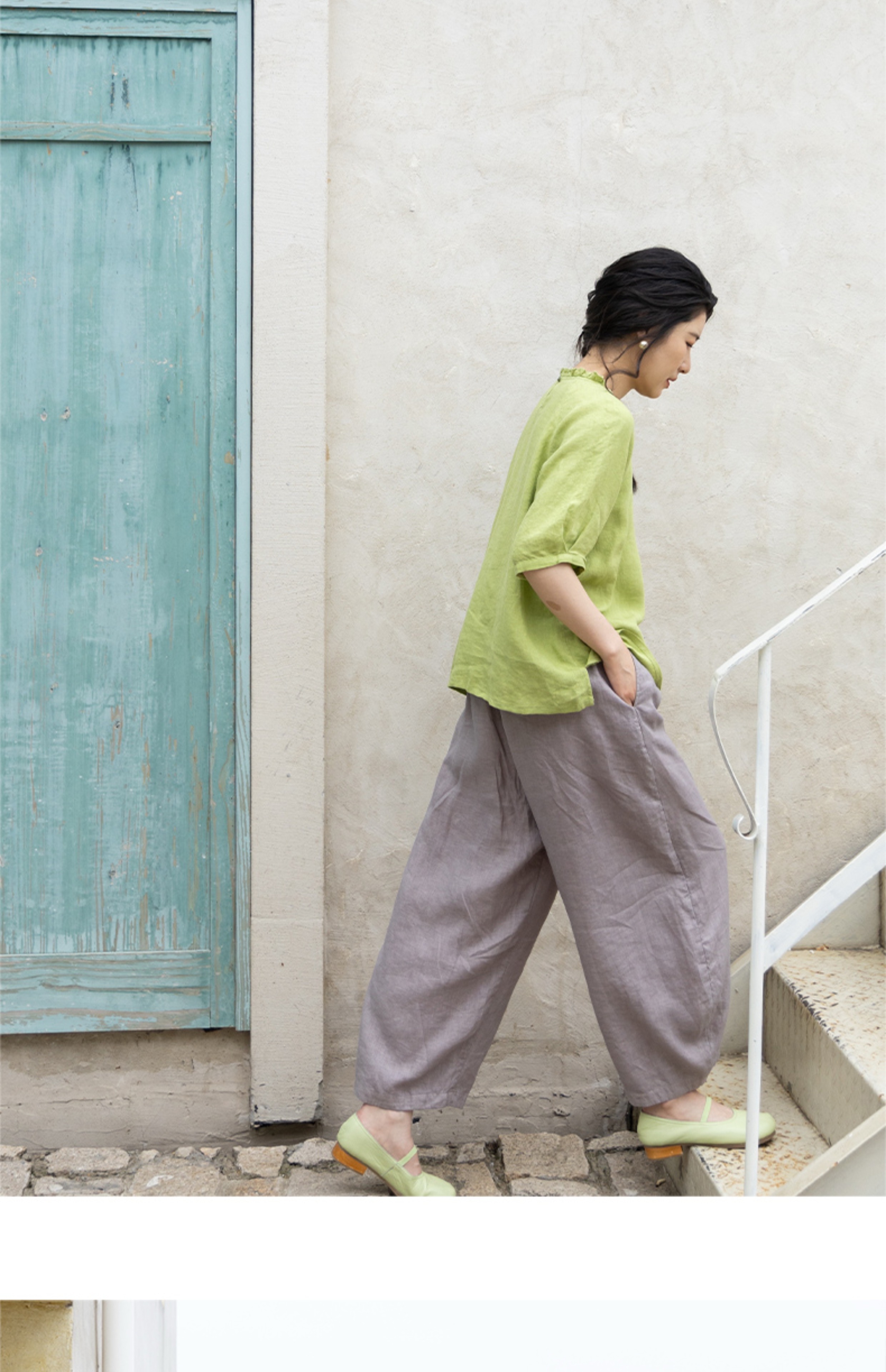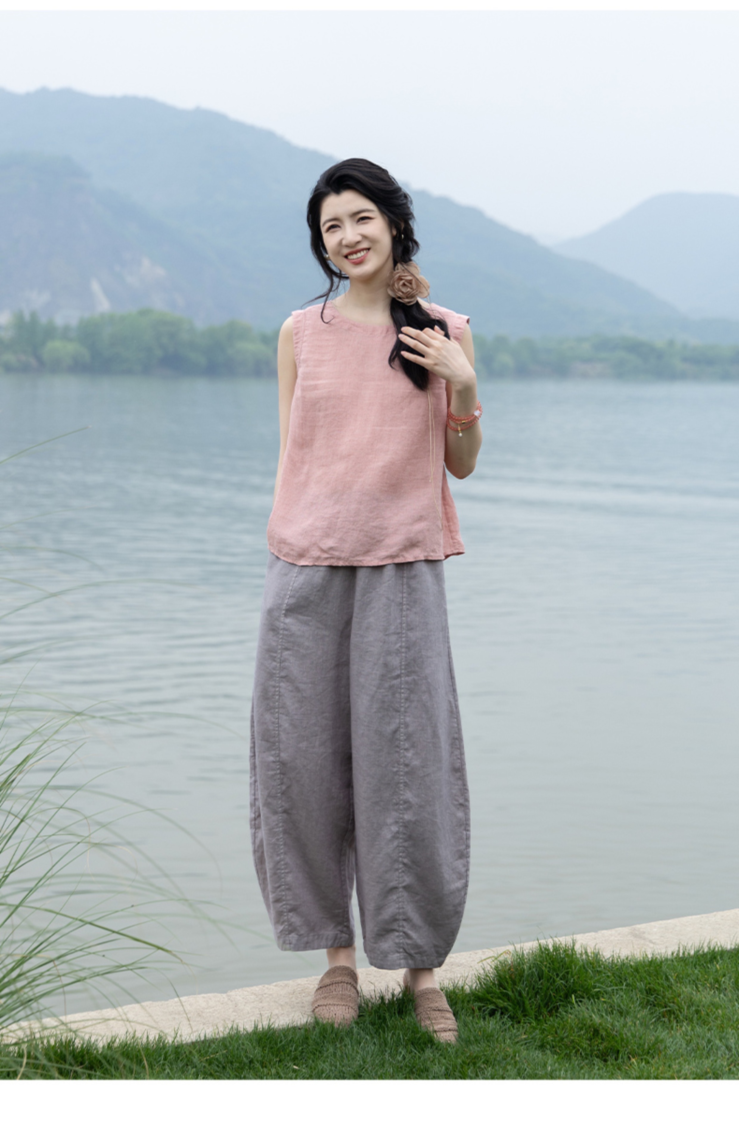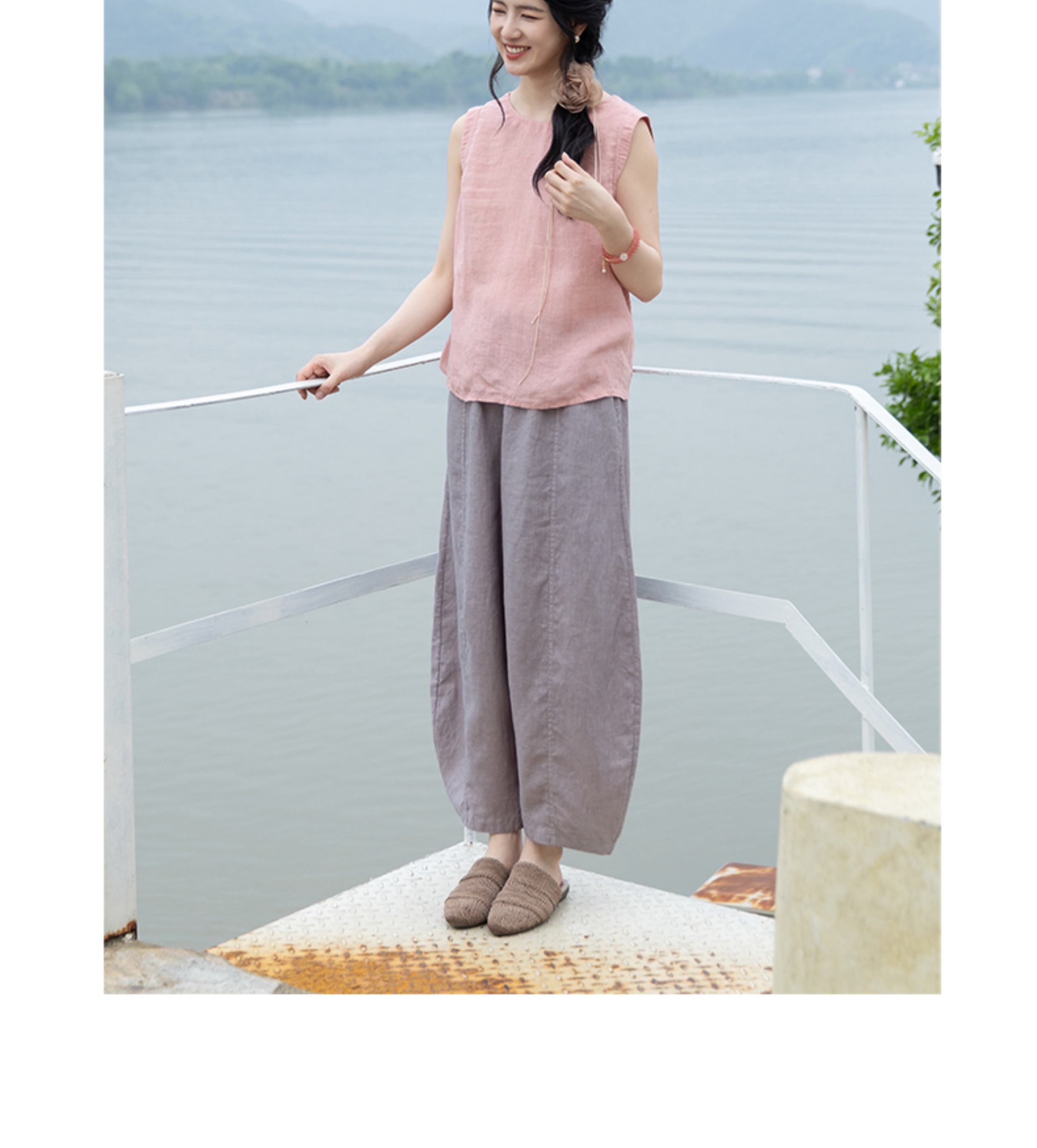 绽放324朵/【海街日记·小弯刀】长纤亚麻成染松紧腰弯刀九分裤女