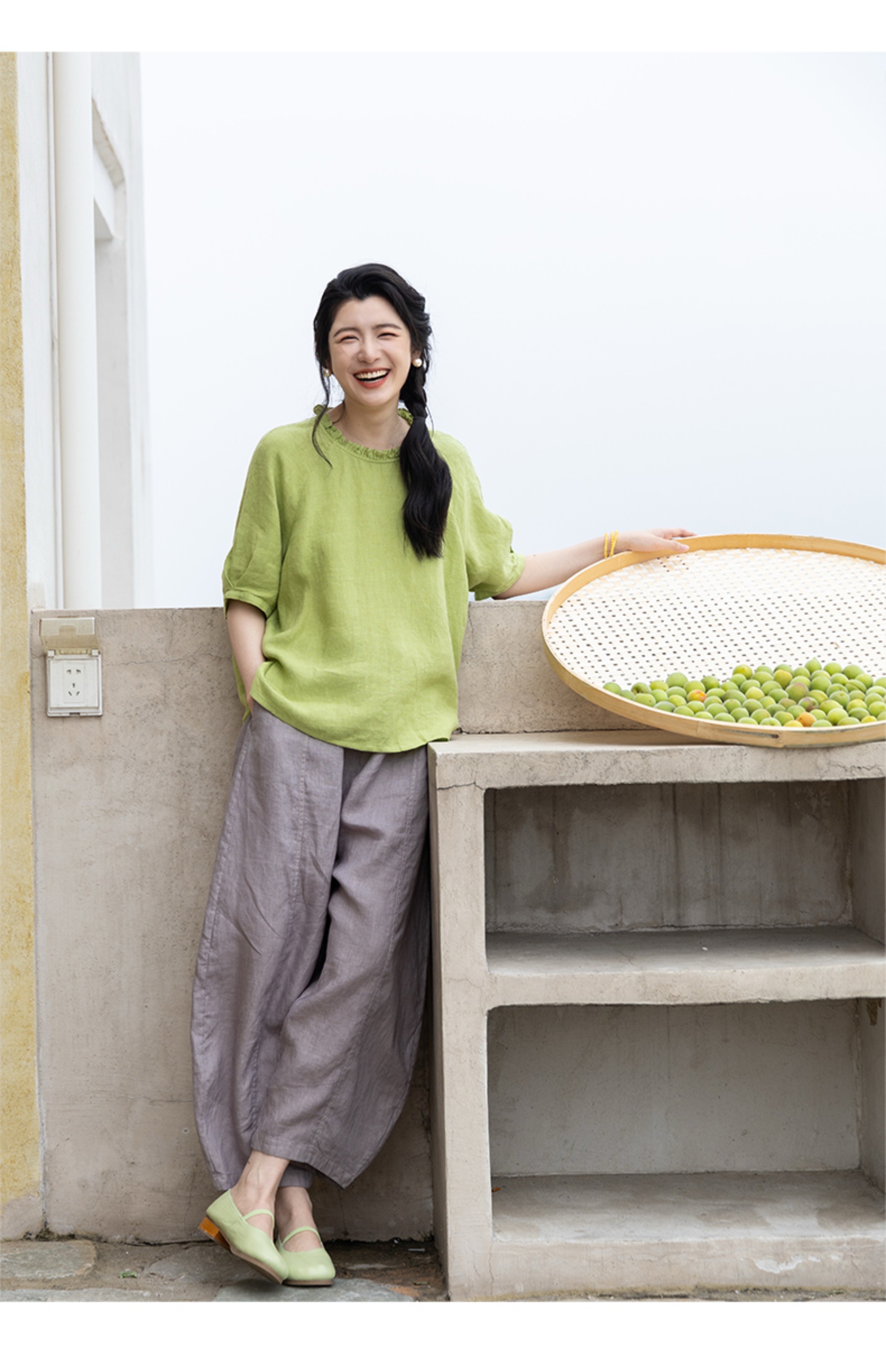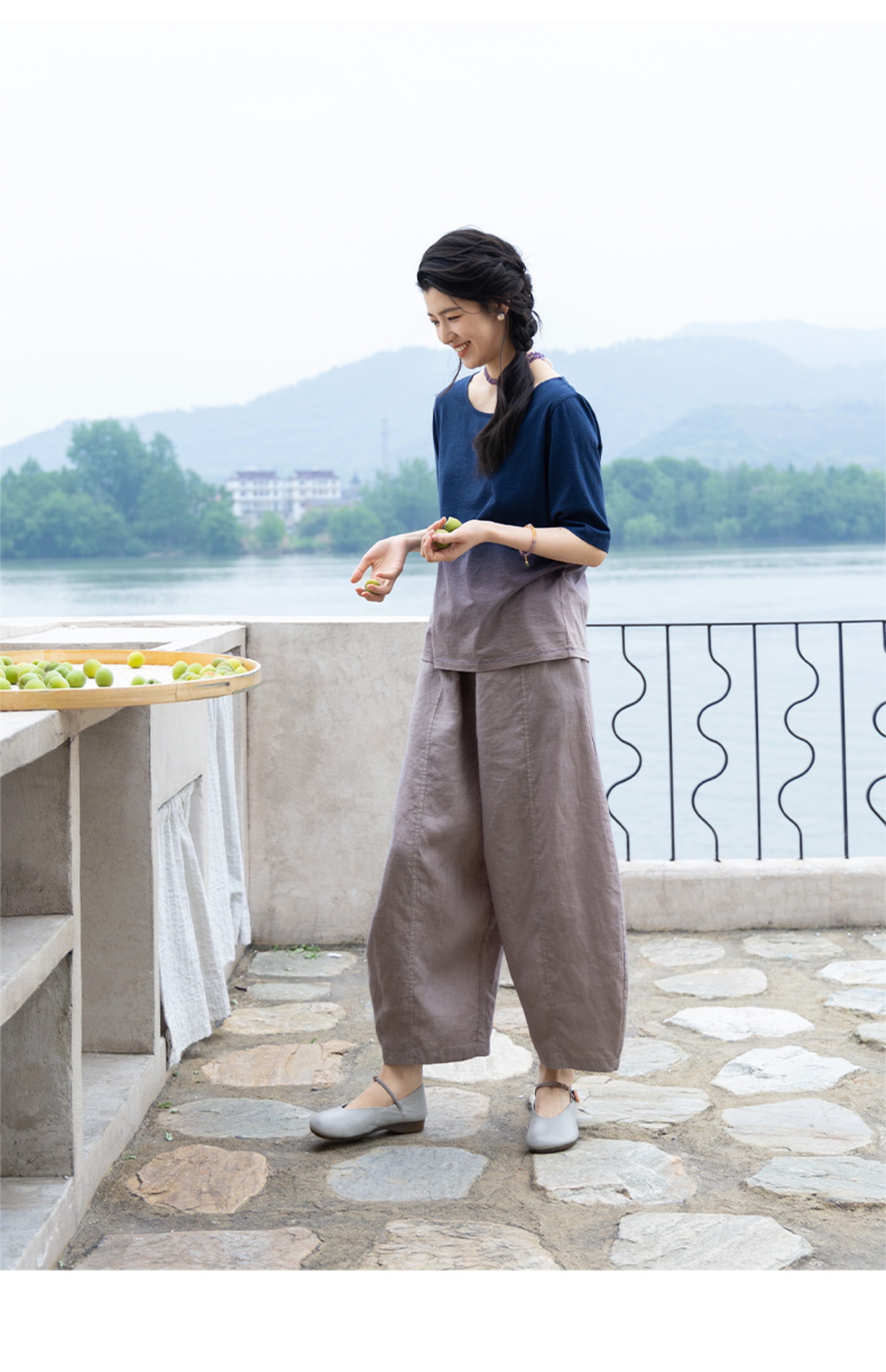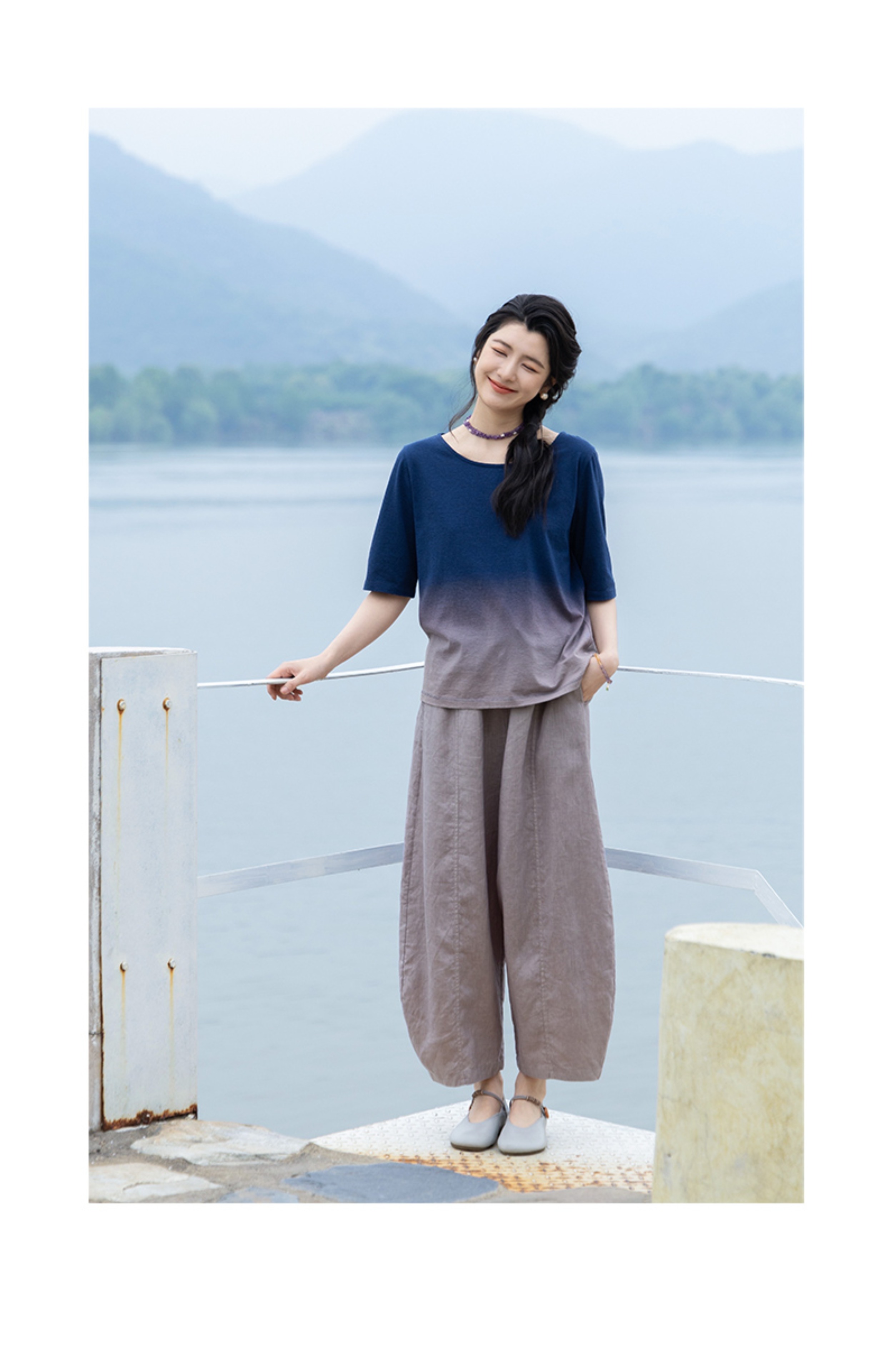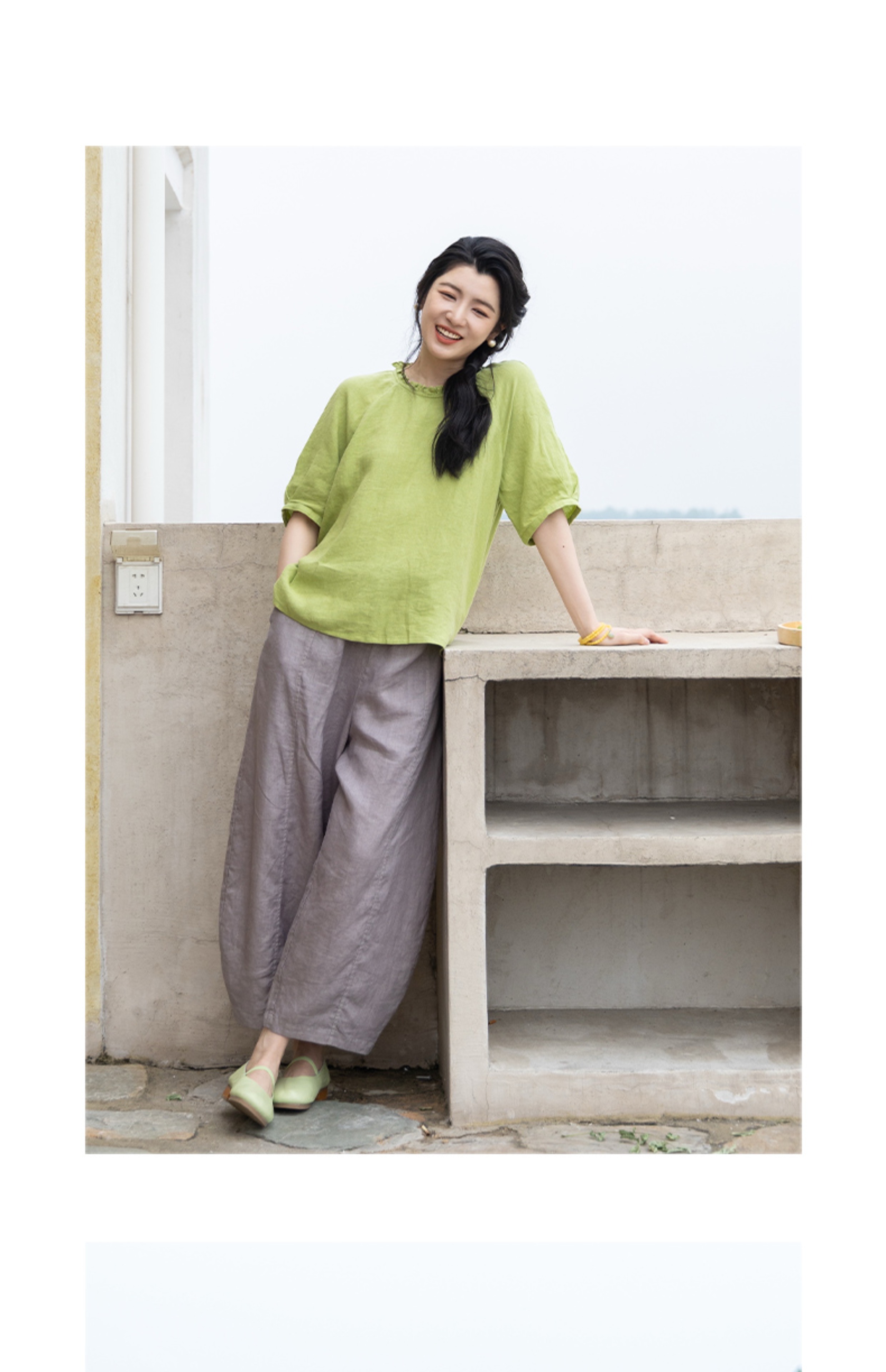 绽放324朵/【海街日记·小弯刀】长纤亚麻成染松紧腰弯刀九分裤女