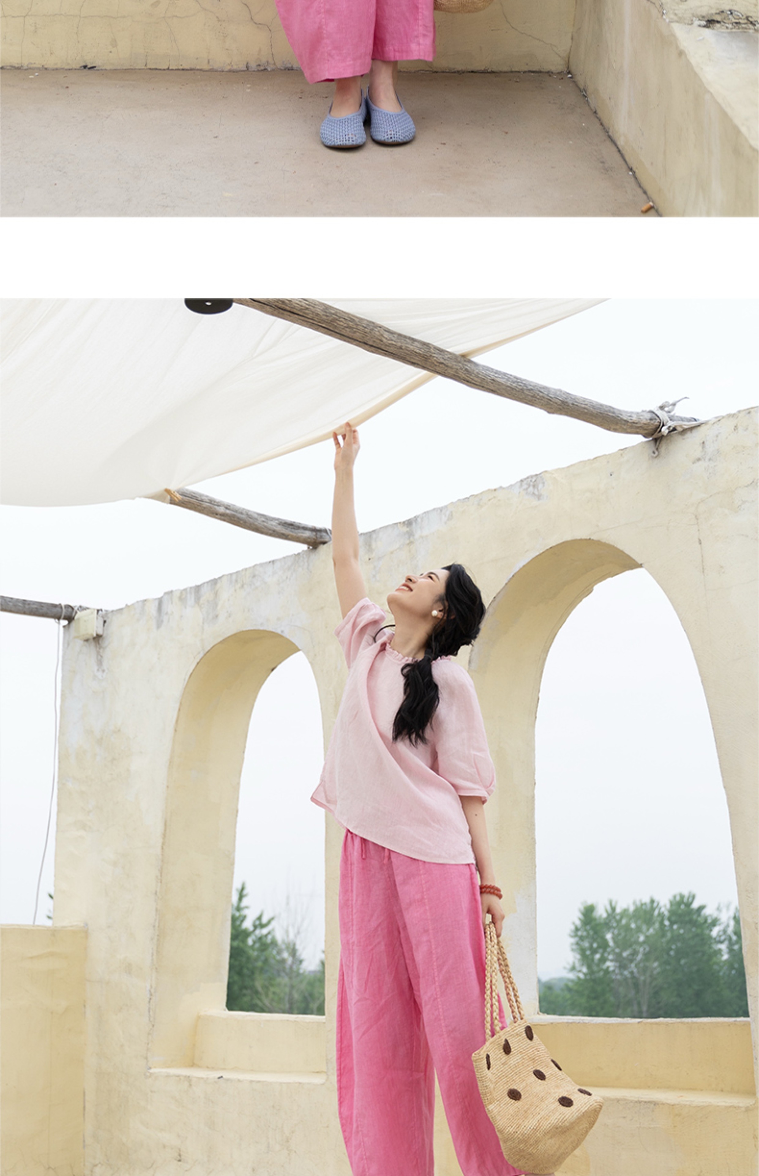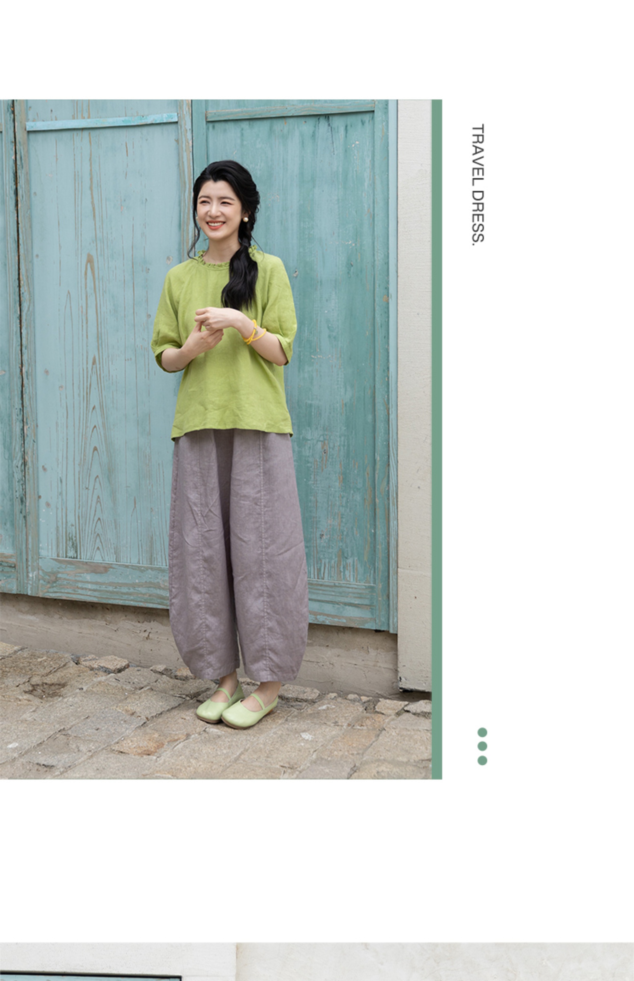以天然亚麻为载体,融合热烈色彩与自在剪裁为身在城市、心怀远方的女性提供兼具美学与舒适的旅行着装