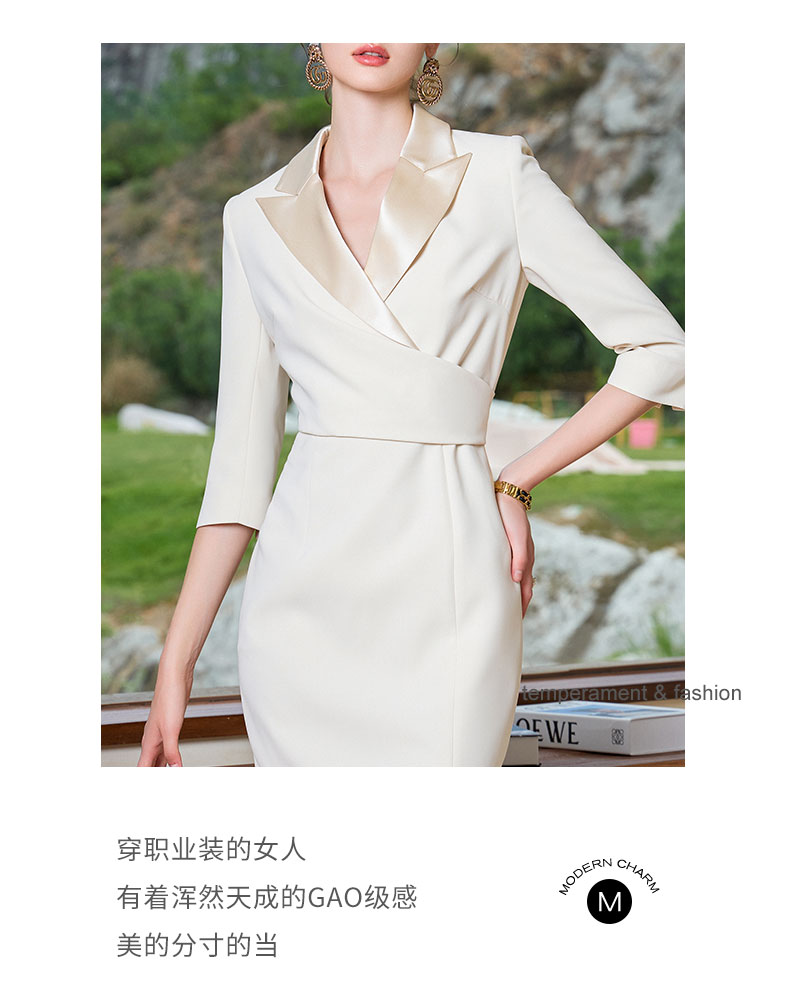AD正式场合连衣裙高端奢华大牌西装裙子收腰显瘦气质女神范开叉裙