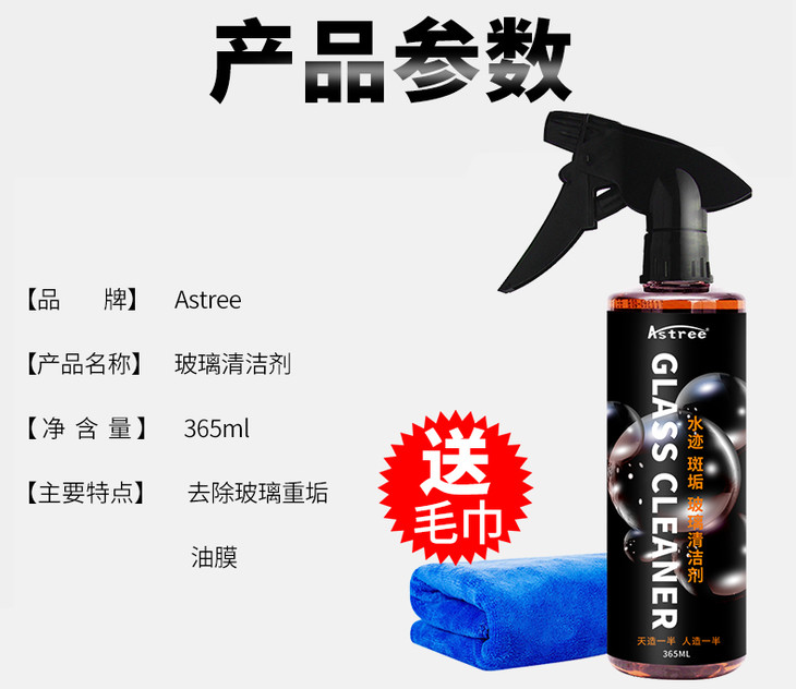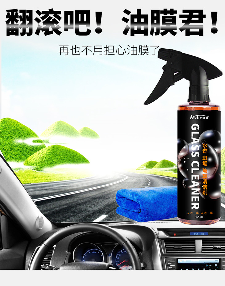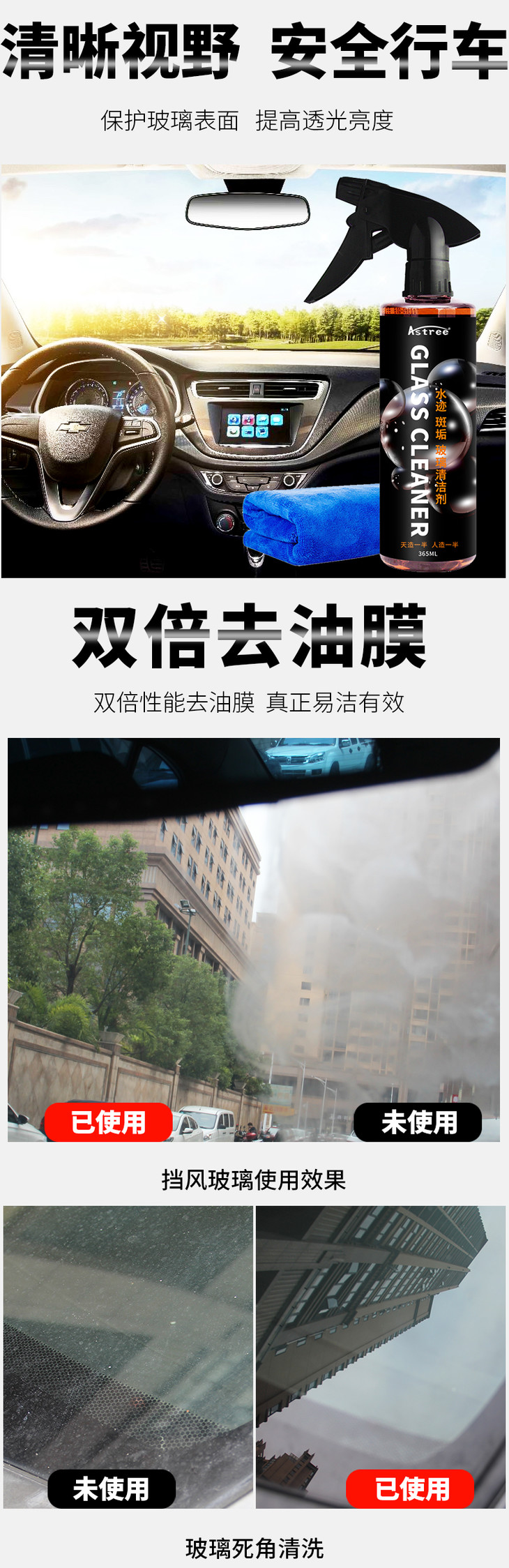 Astree玻璃清洗剂 365ml大容量装油膜去除车家两用