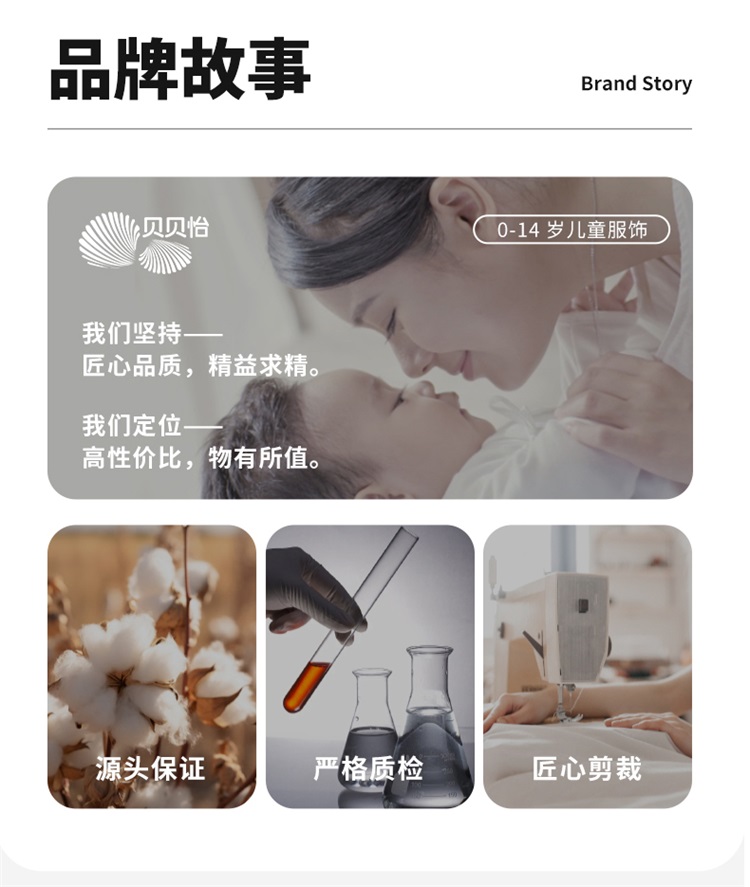 - 贝贝怡专注0-6岁婴幼儿服饰,坚持安全、柔软、舒适的产品理念,为千万中国家庭提供超高品质、安全可靠的婴幼儿服饰产品,妈妈放心,宝宝开心!