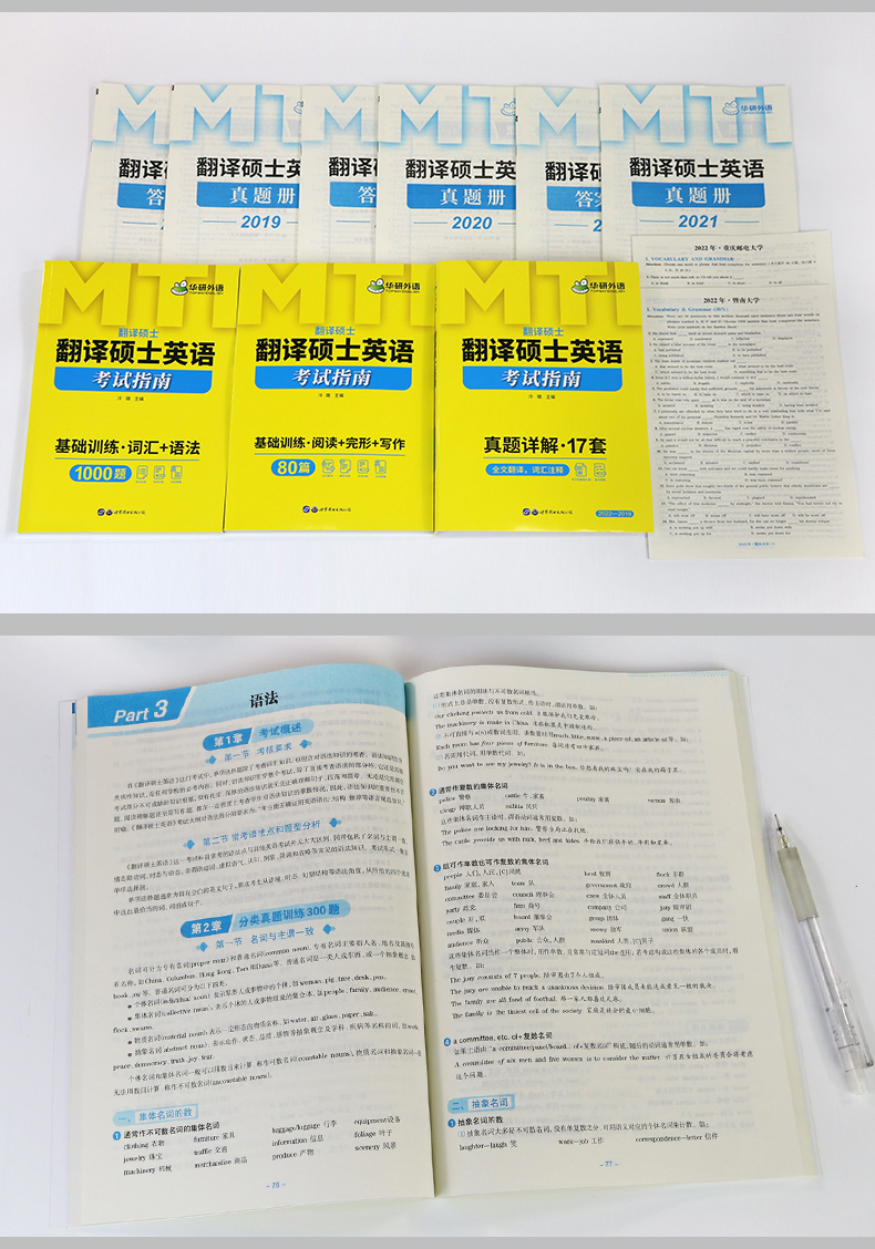 1.《翻译硕士英语》真题17套(2019—2022年),双语对照,解析详细,含难词注释、亮点词汇及句型;