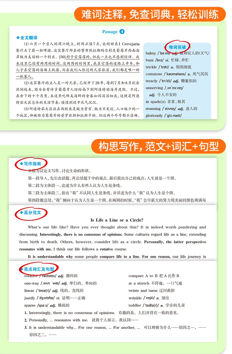6.作文提供写作指南、高分范文、亮点词汇及句型,学习谋篇布局,积累好词好句;