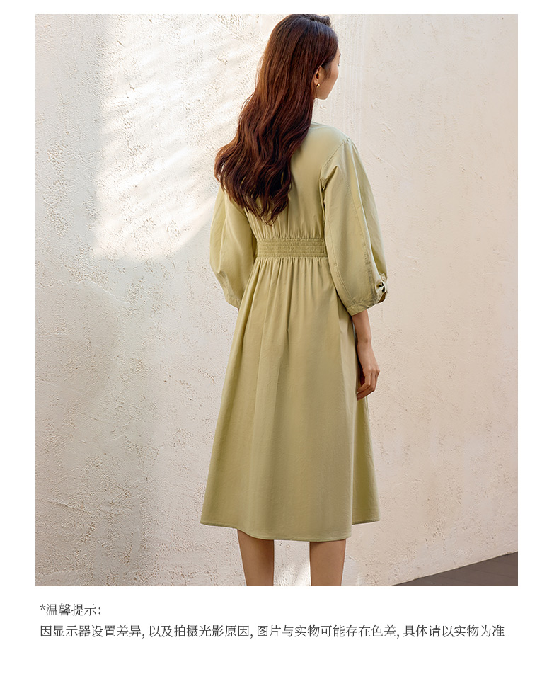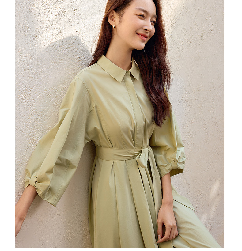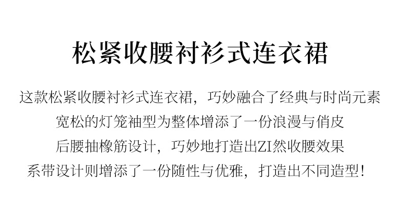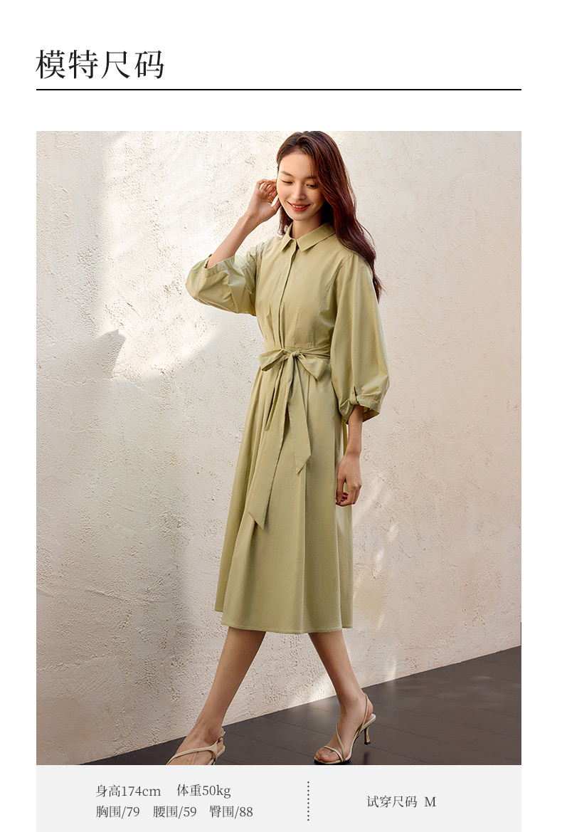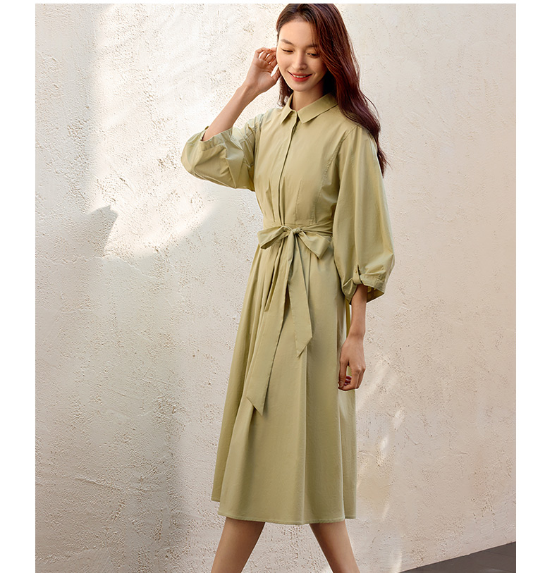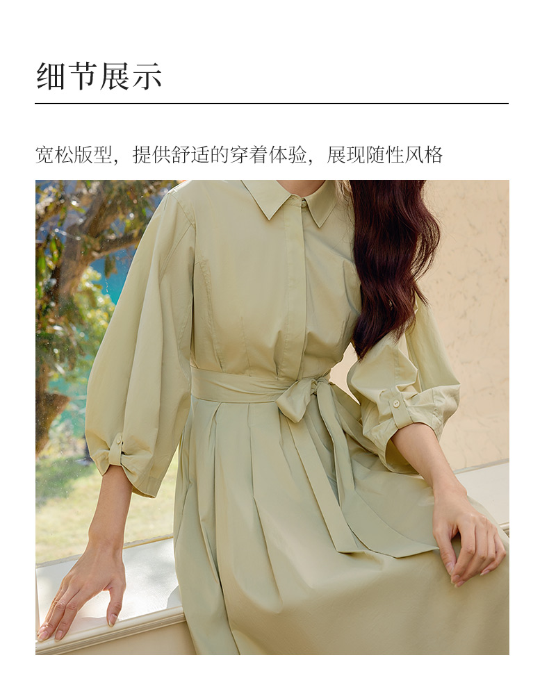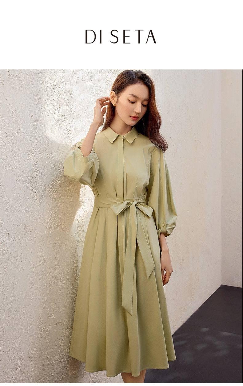玳莎系带收腰衬衫式连衣裙2025春季新款通勤显瘦高级中长款裙子 FA35301