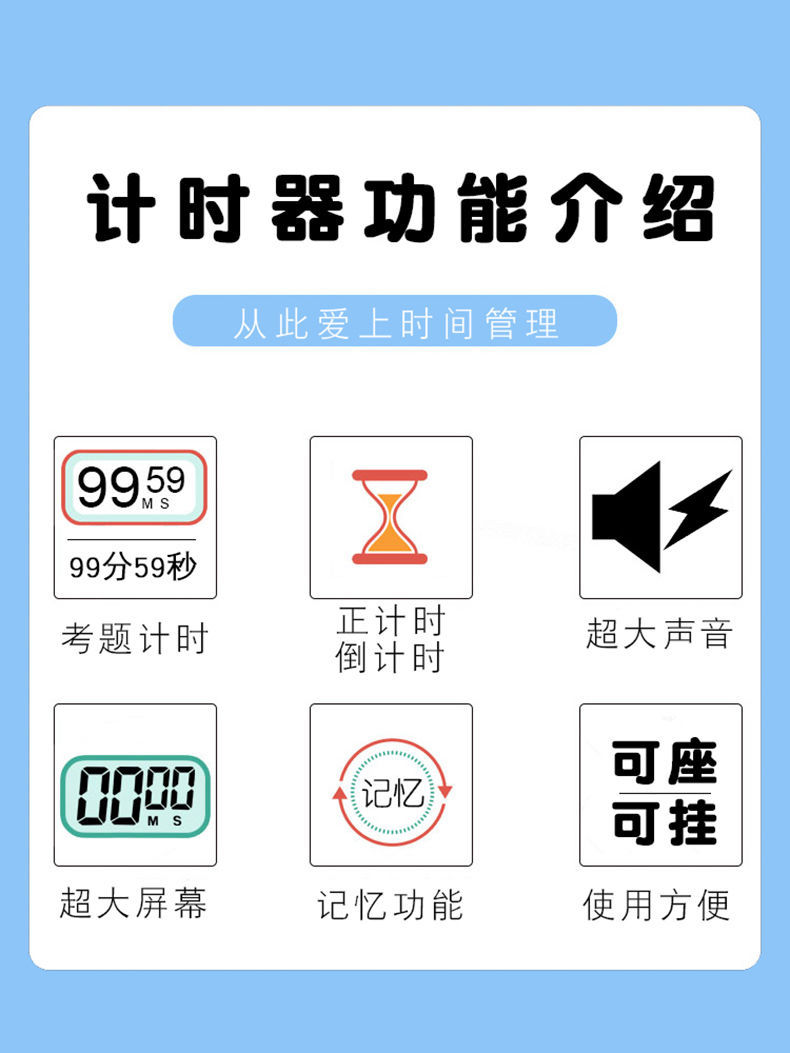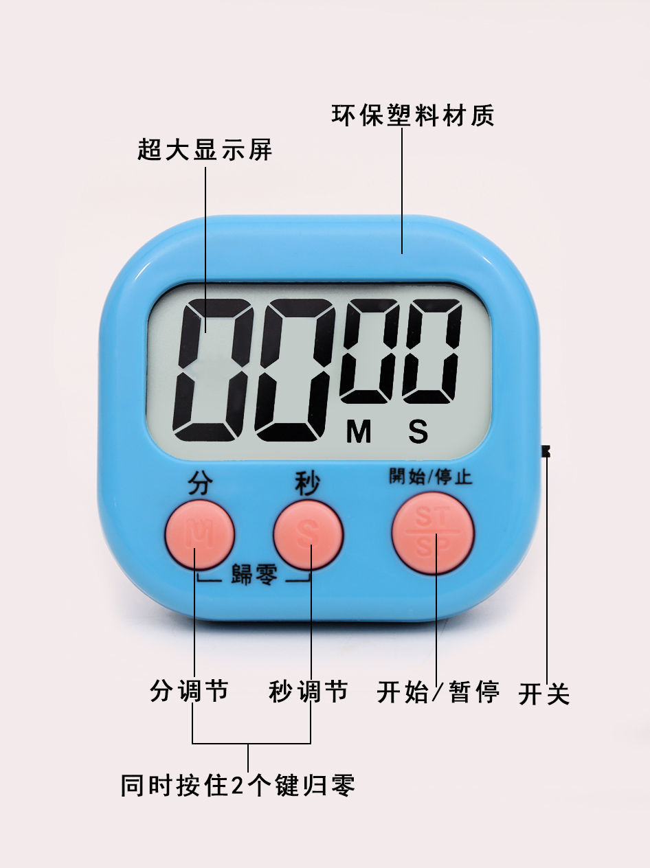 厨房定时计时器提醒考研做题学生学习时间管理电子多功能闹钟表
