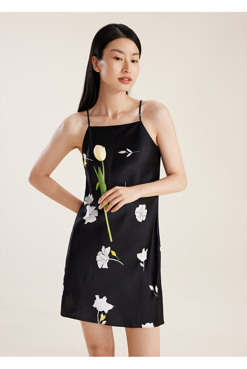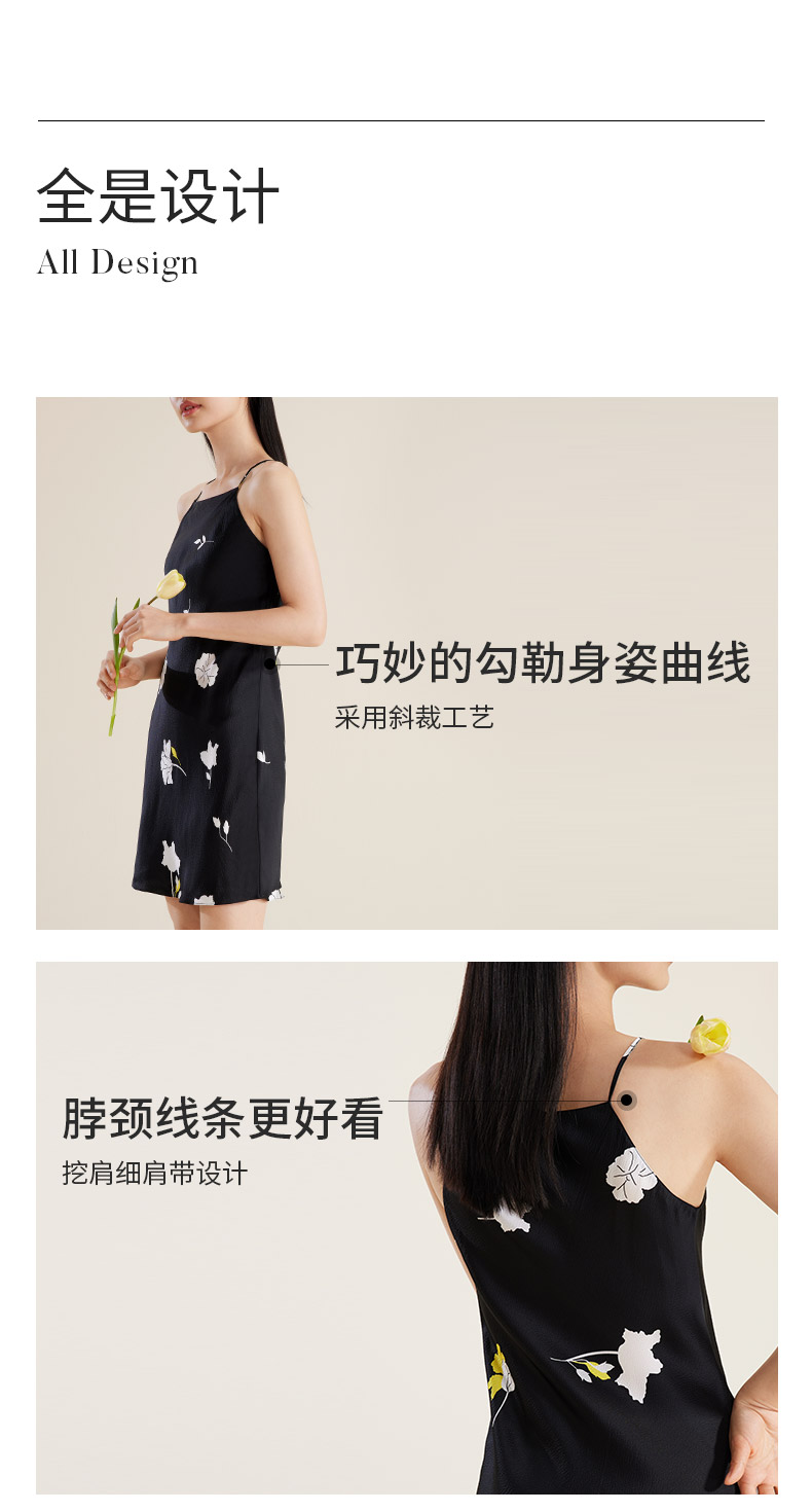 【真丝珍珠缎】100%桑蚕丝时尚不易皱吊带裙连衣裙春夏睡裙女金三塔 YSFDB304