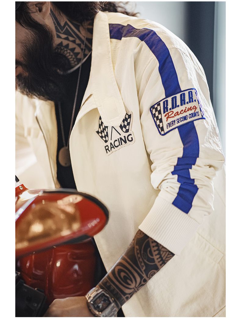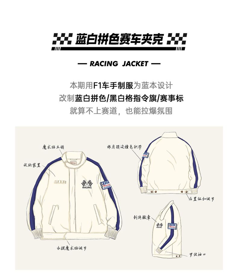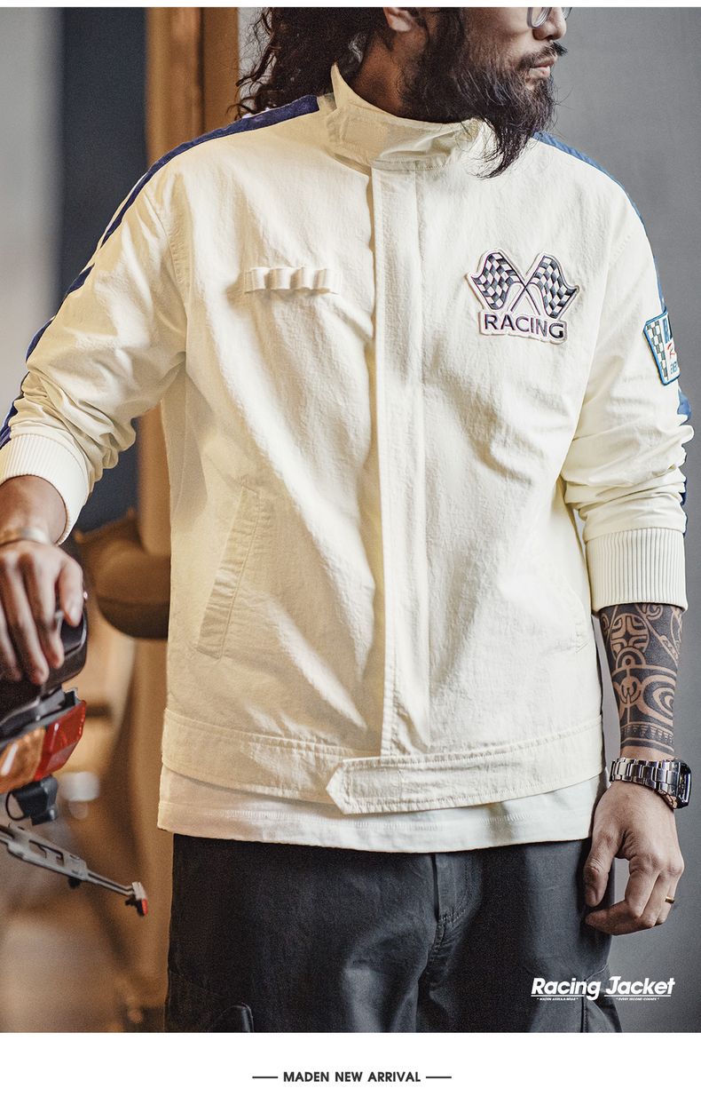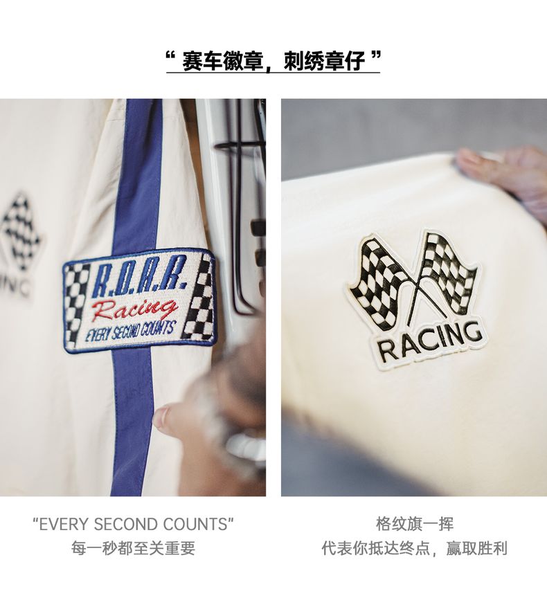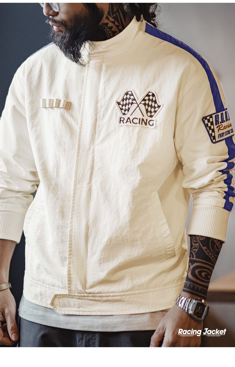 工装优选 美式复古拼色刺绣赛车夹克F1车手服休闲棒球领外套男春