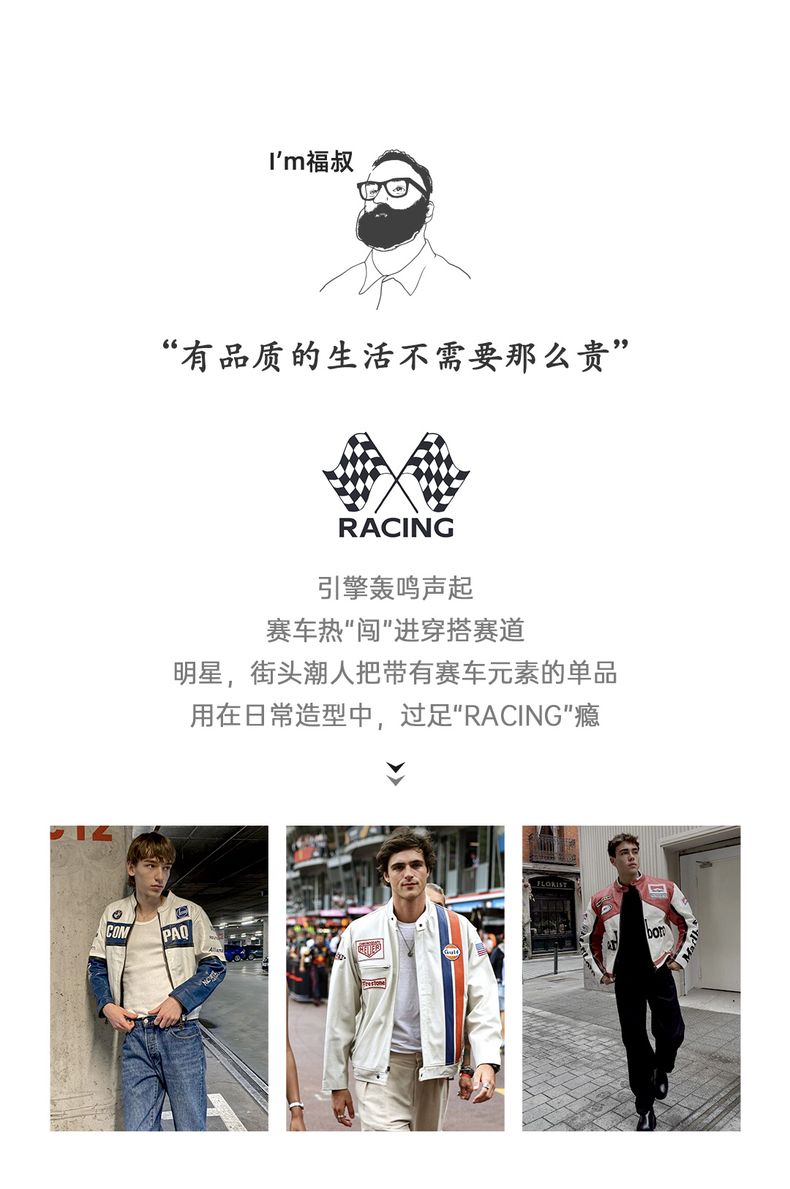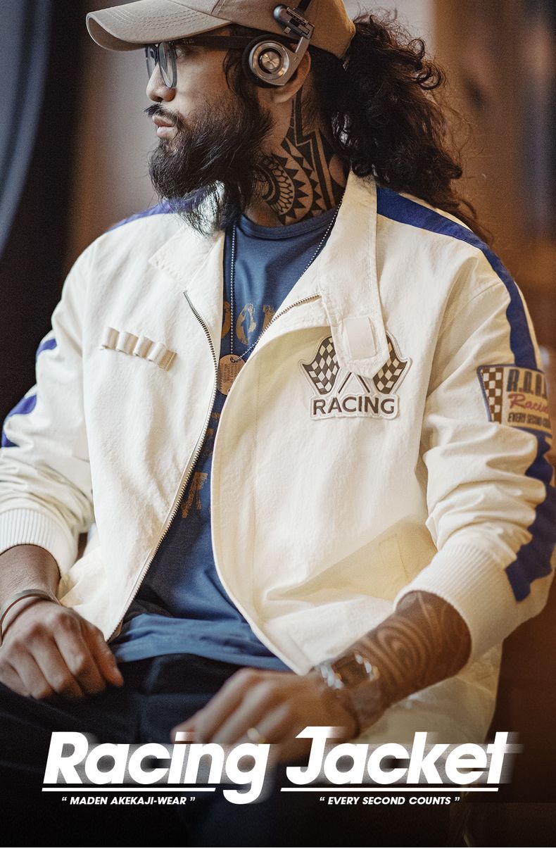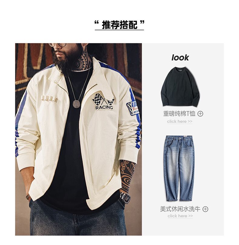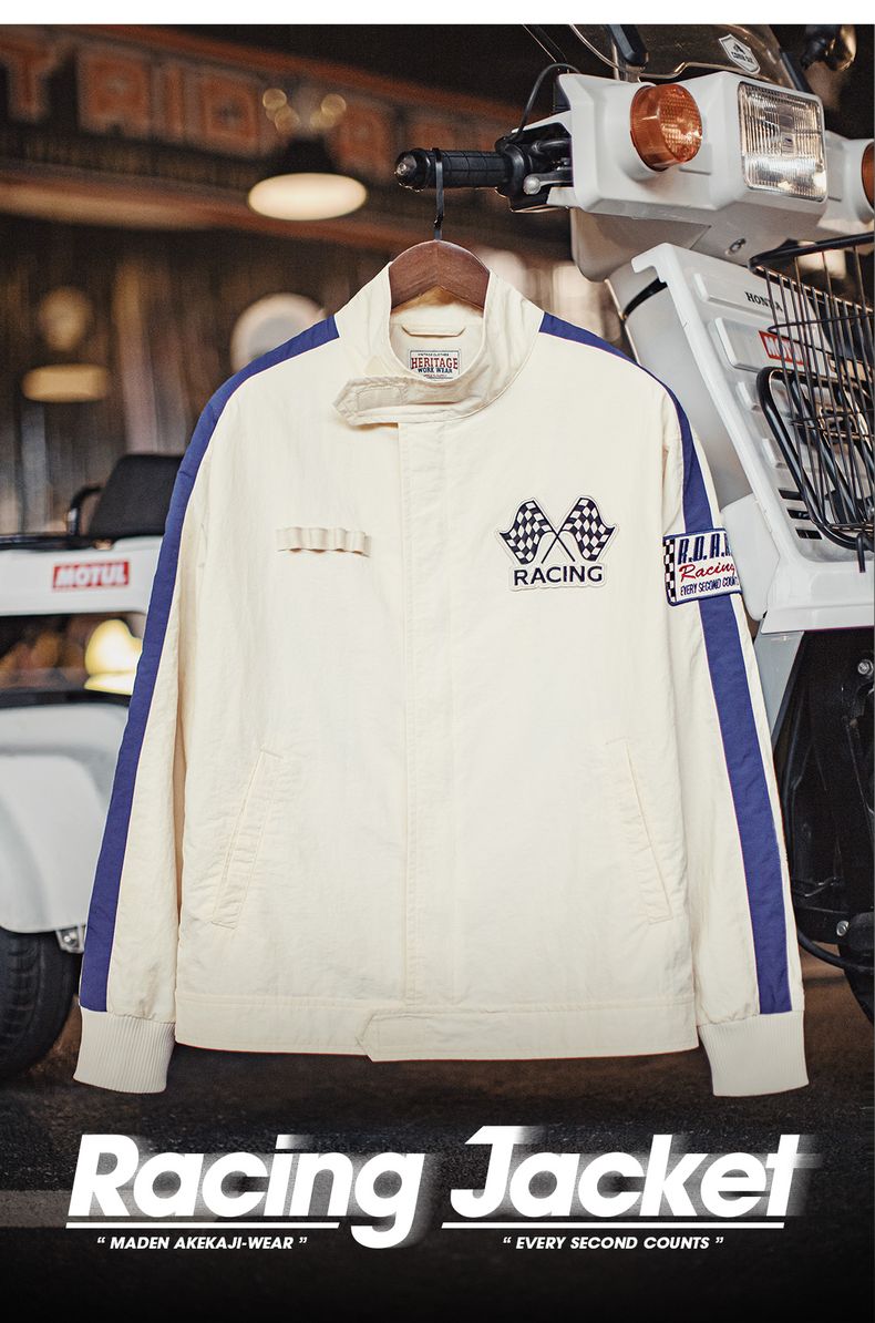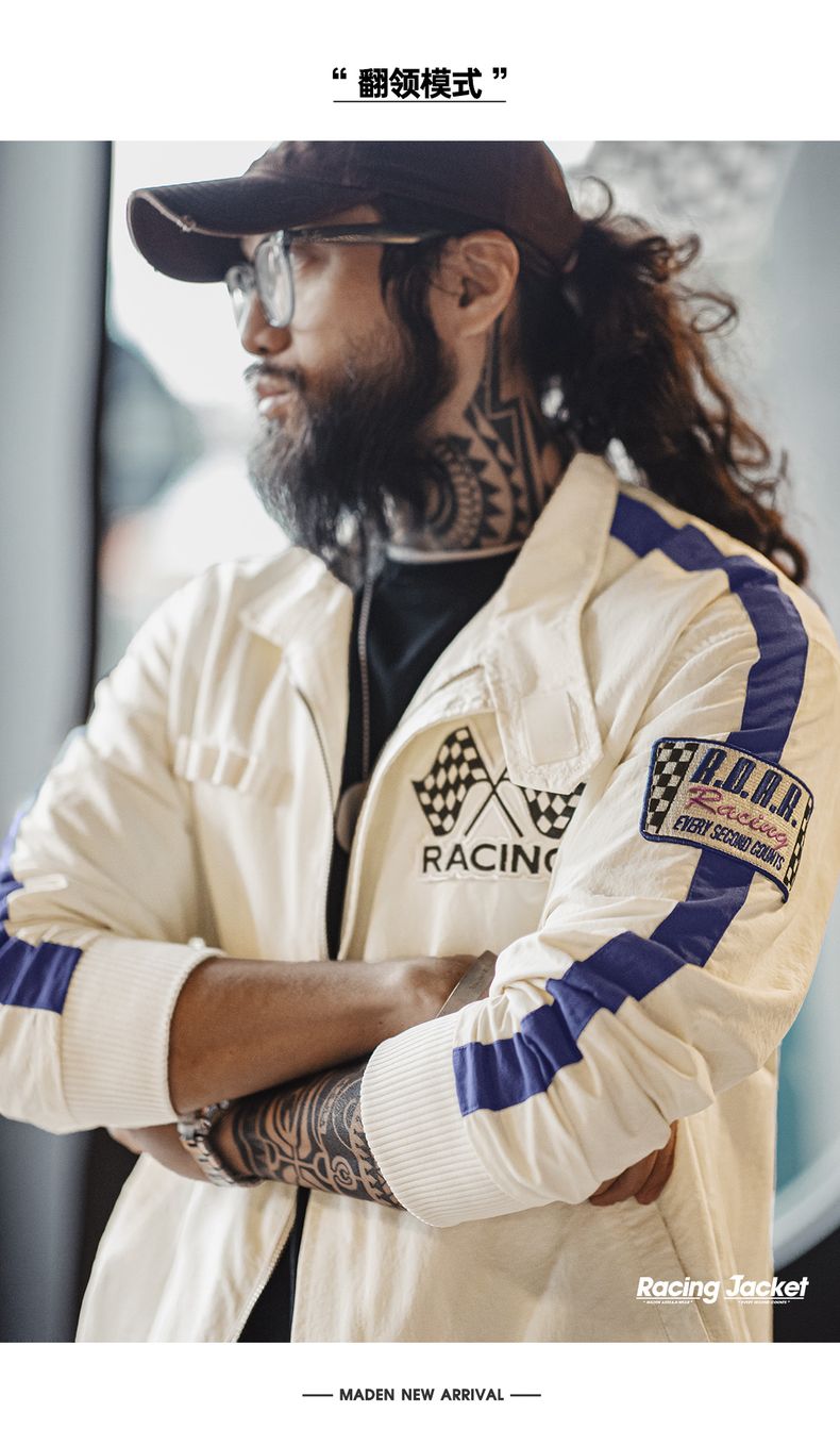 工装优选 美式复古拼色刺绣赛车夹克F1车手服休闲棒球领外套男春