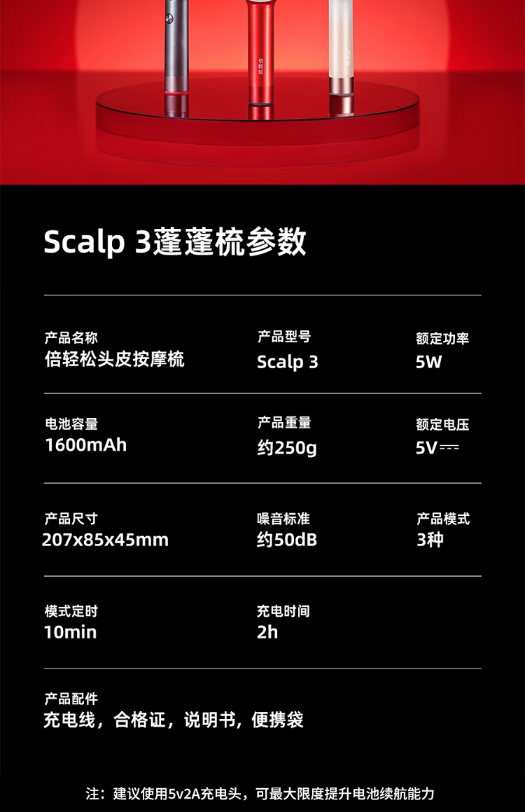 倍轻松按摩梳Scalp 3黑
