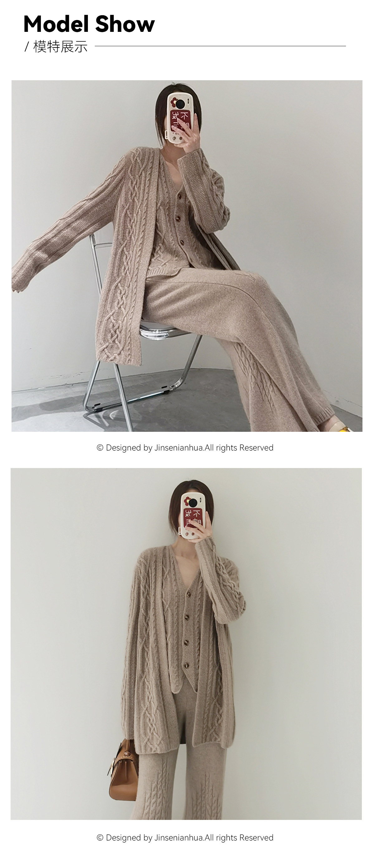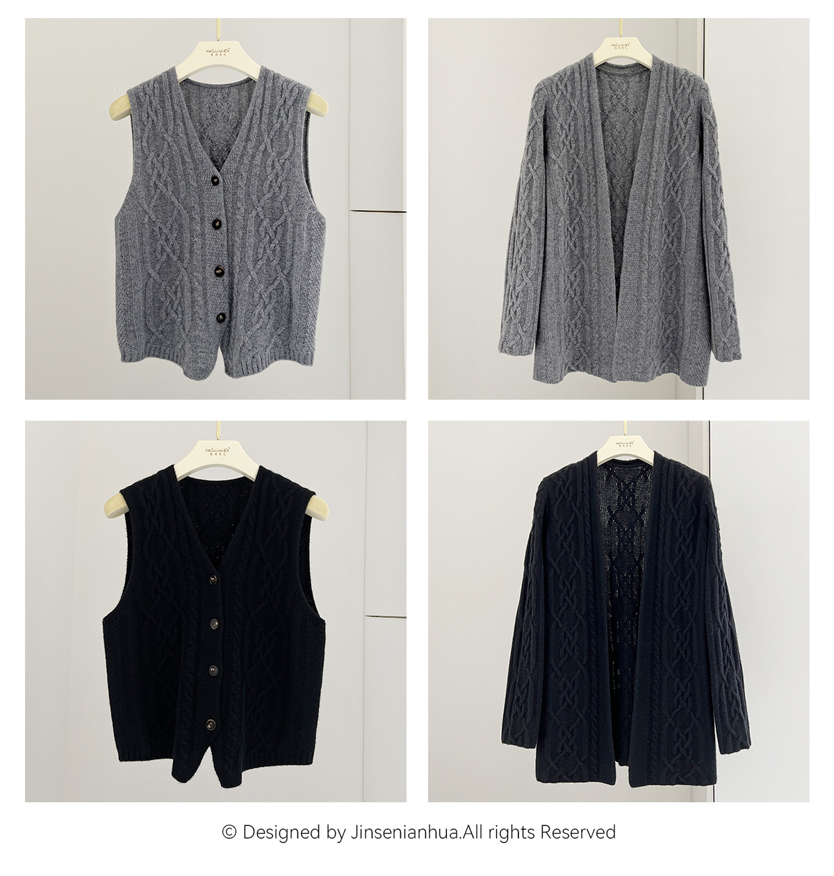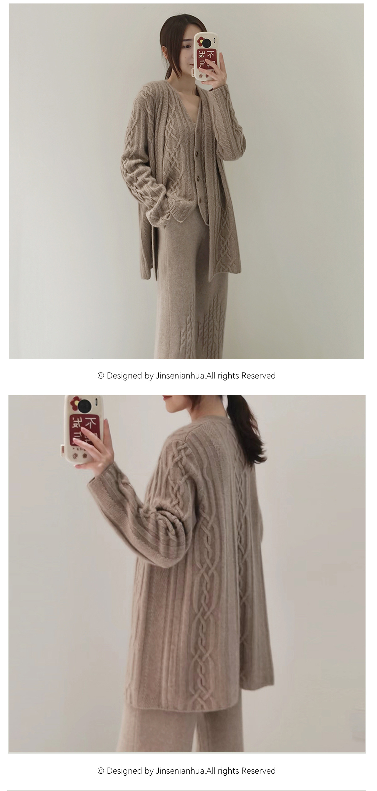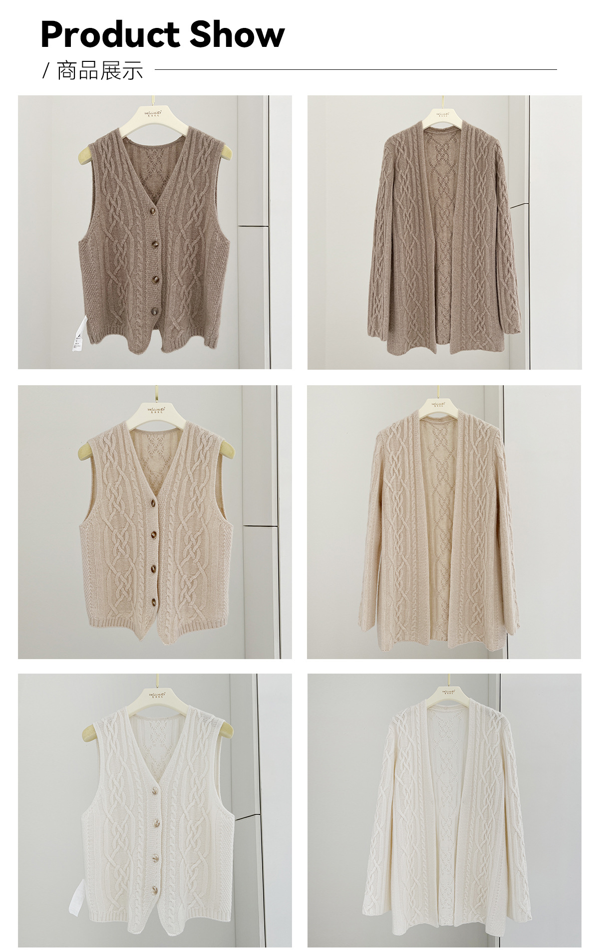 粗针重磅纯山羊绒毛衣!2025新款绞花女针织开衫外套厚毛衣马甲两件套装!