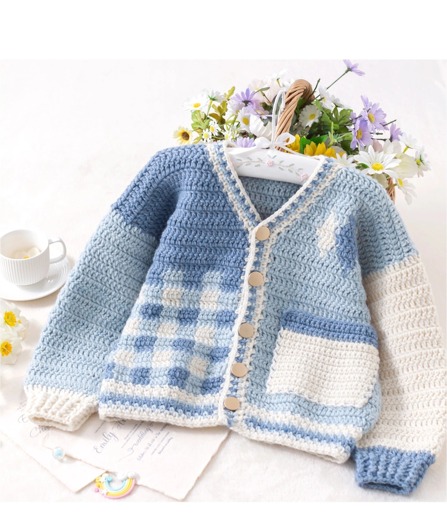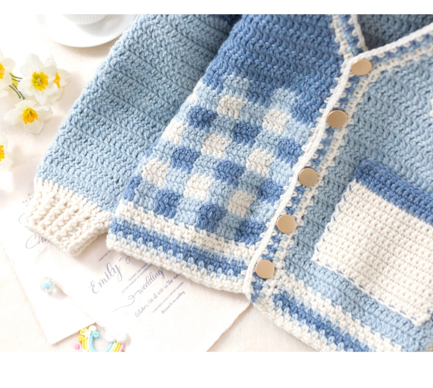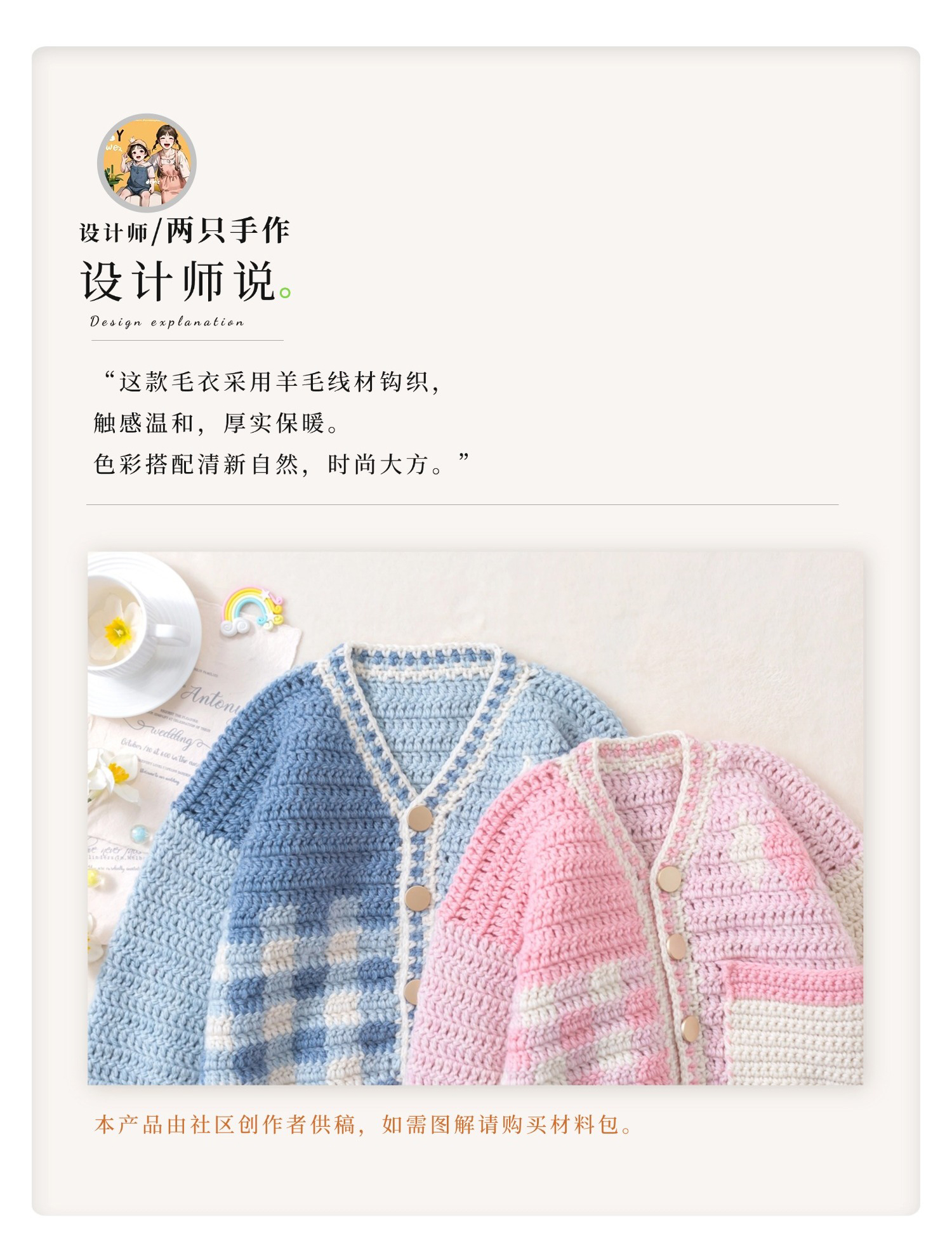 苏苏姐家格纹开衫手工diy编织钩针毛线团自制上衣材料包冬