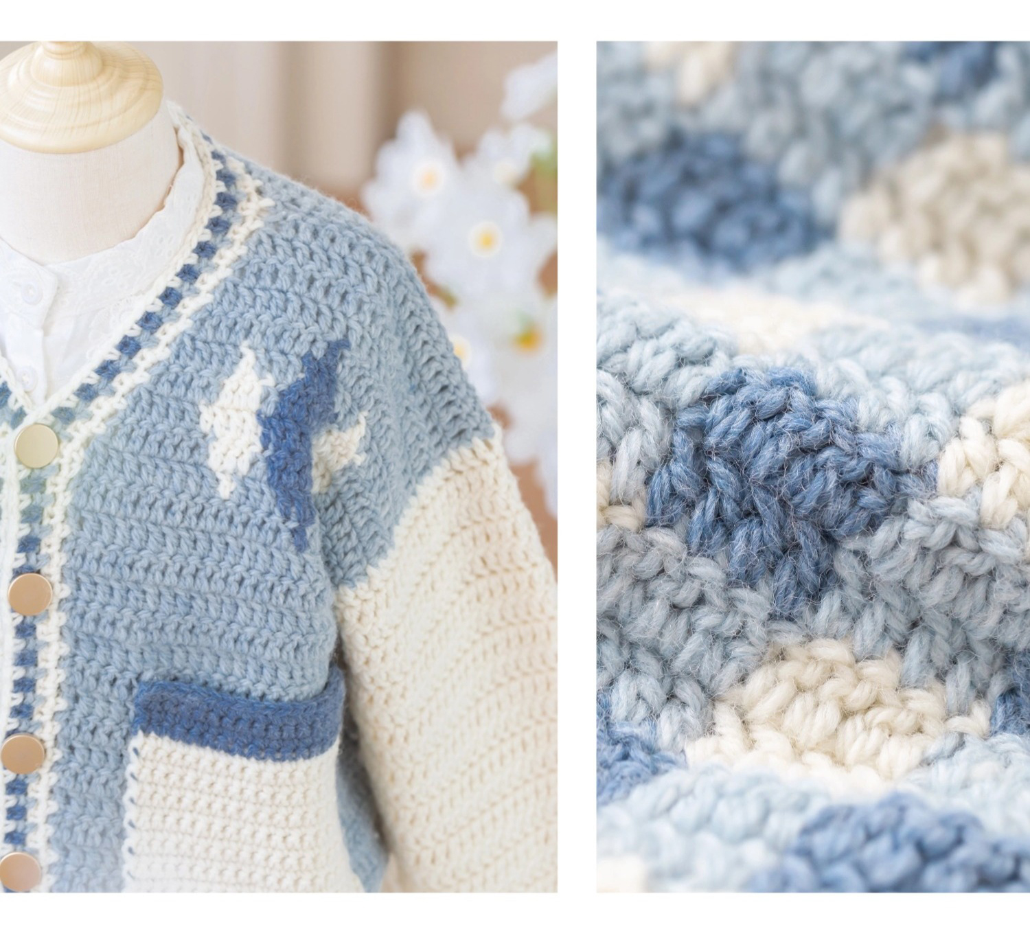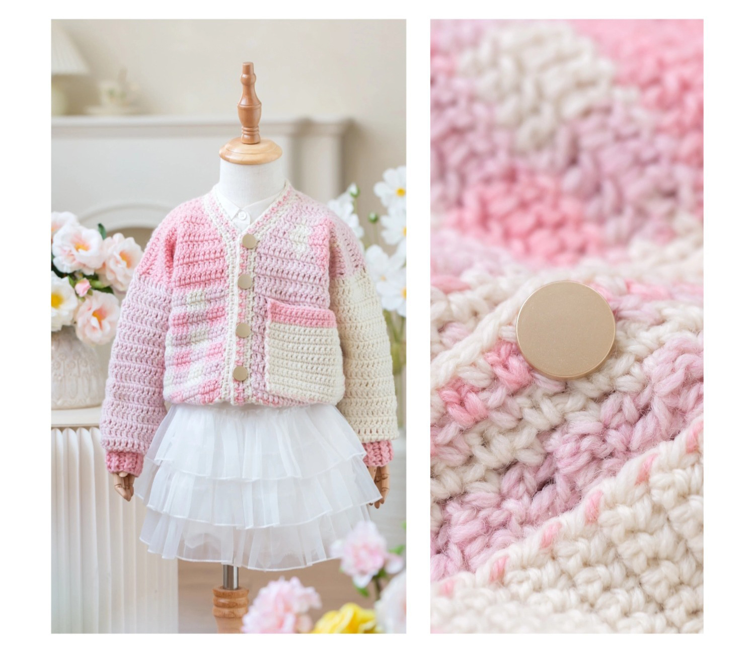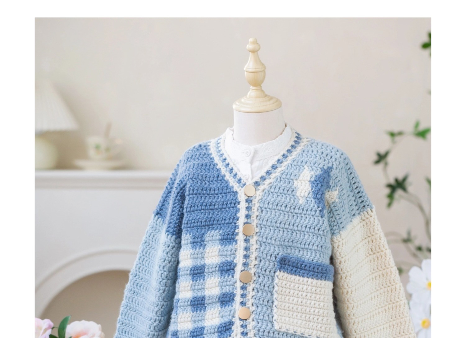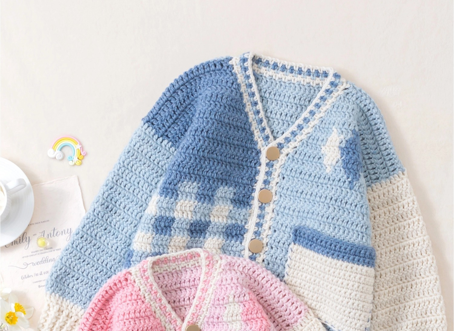苏苏姐家格纹开衫手工diy编织钩针毛线团自制上衣材料包冬