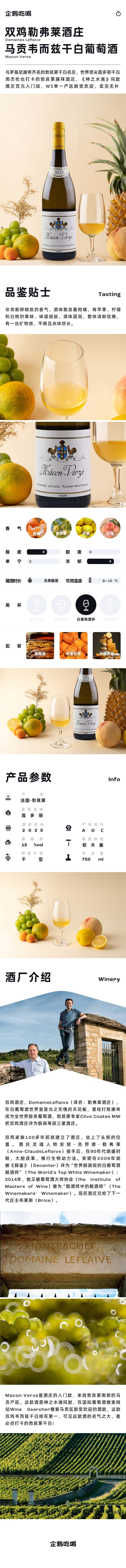 企鹅市集|勃艮第干白巅峰 双鸡酒庄Domaine Leflaive勒弗莱酒庄马贡韦而兹干白葡萄酒2023 霞多丽干白