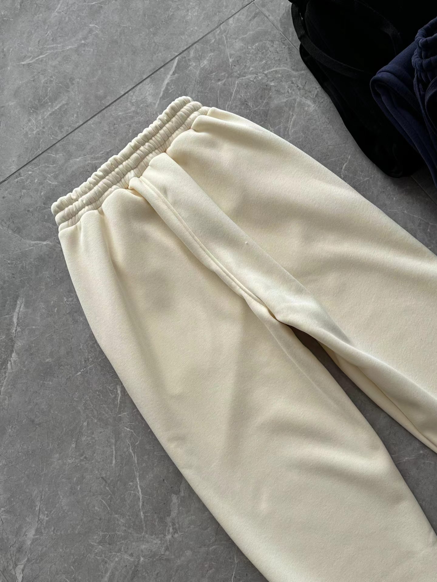原厂纱线!必须定织定染 内里是客供的超密度摇粒绒又密又软 全部进行过复合处理 御寒效果更好!手感更蓬松 有肉感 贴肤非常舒适 真的强烈推荐!全家人手一条 北方过冬没问题!超厚实 ,版型设计,有品位 又有一份独有的慵懒随性版型很好 即便是加绒上身也不会显得臃肿 裤管的裁剪恰到好处 有余量!特别修饰腿型 日常百搭 不管休闲还是运动 穿它!一条就够