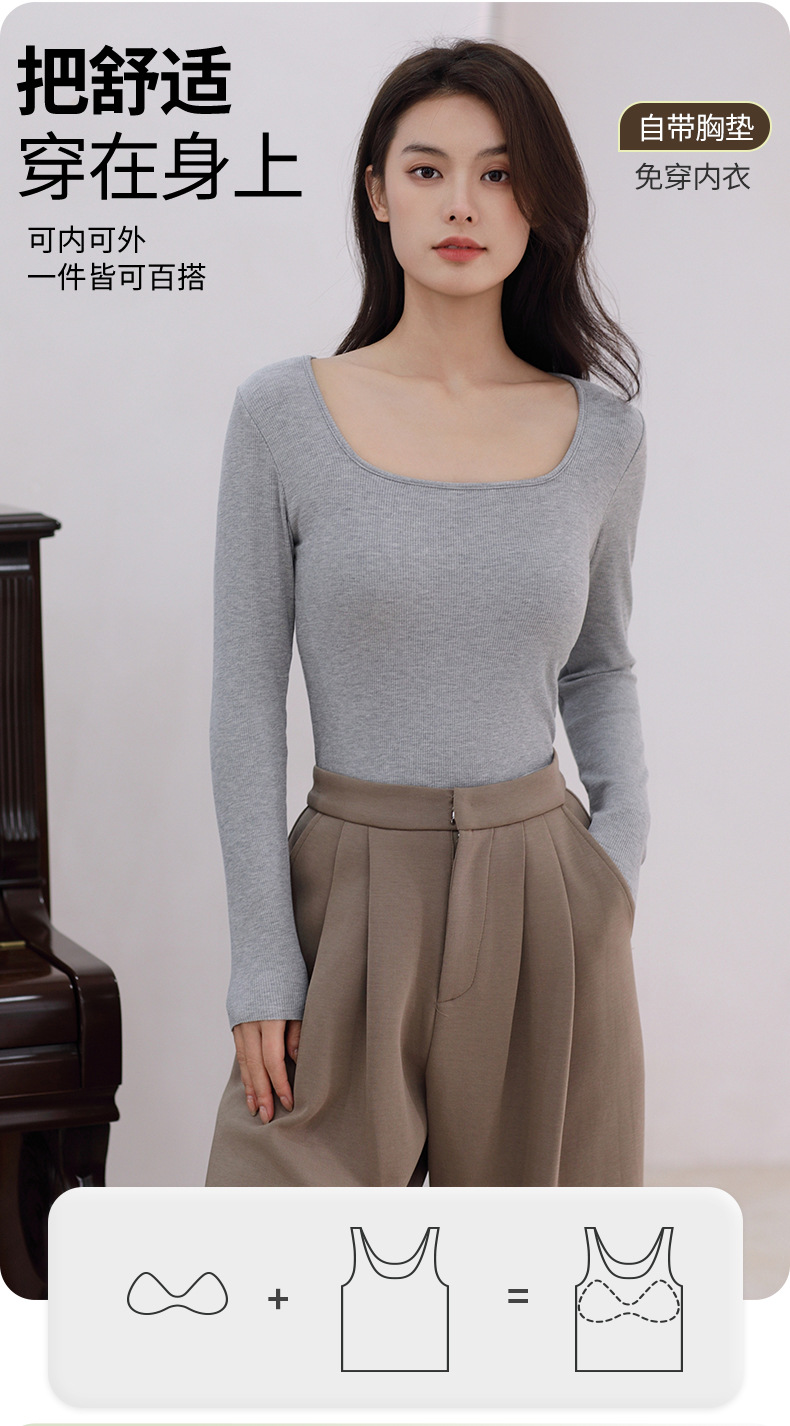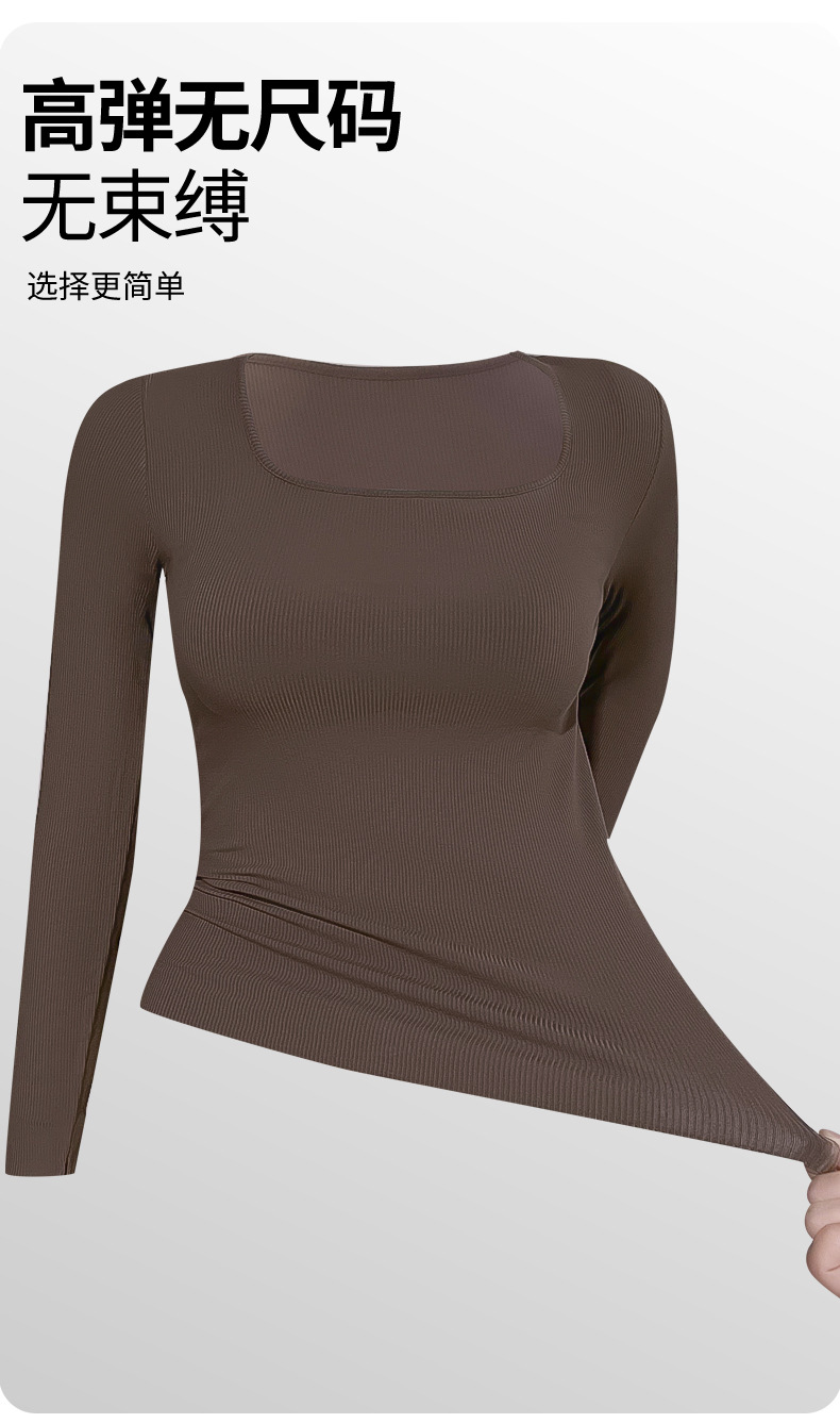 【免穿内衣❗️纯欲显瘦正肩长袖】低领设计,保暖修身,方领保暖上衣女内搭打底衫秋衣女保暖衣服