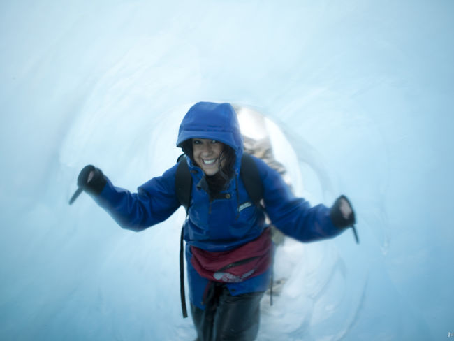 搭乘直升飞机上指定冰川,由专人向导带领,穿专业装备,进行冰川徒步(包括钻冰洞等项目),结束后搭乘直升机回,全程4小时左右。